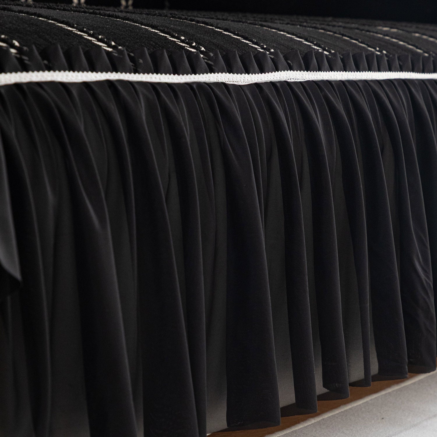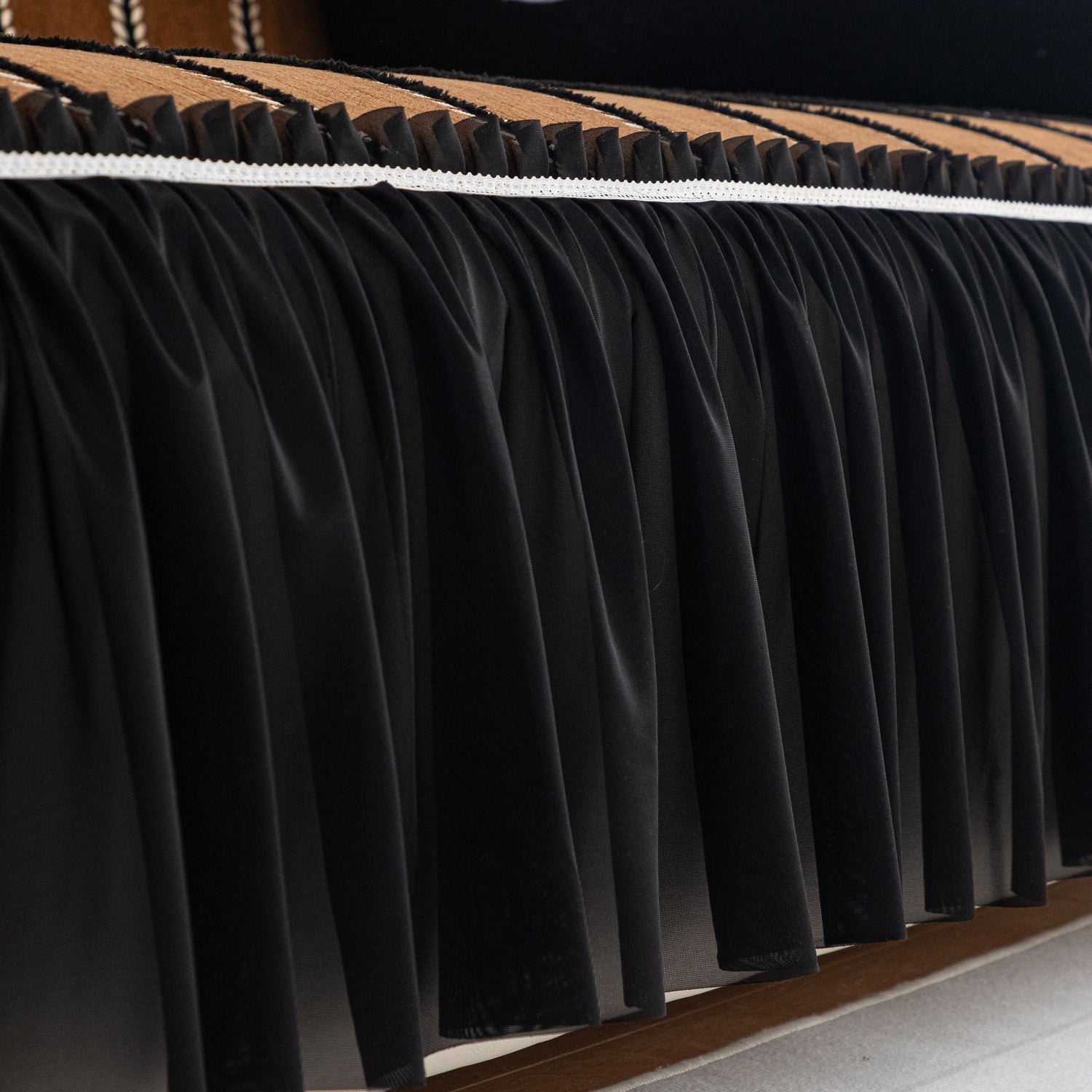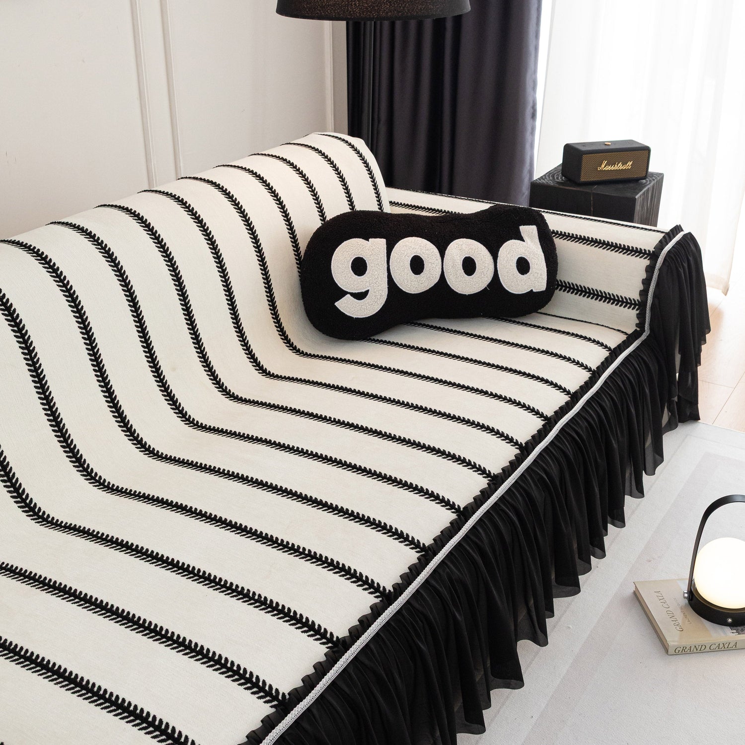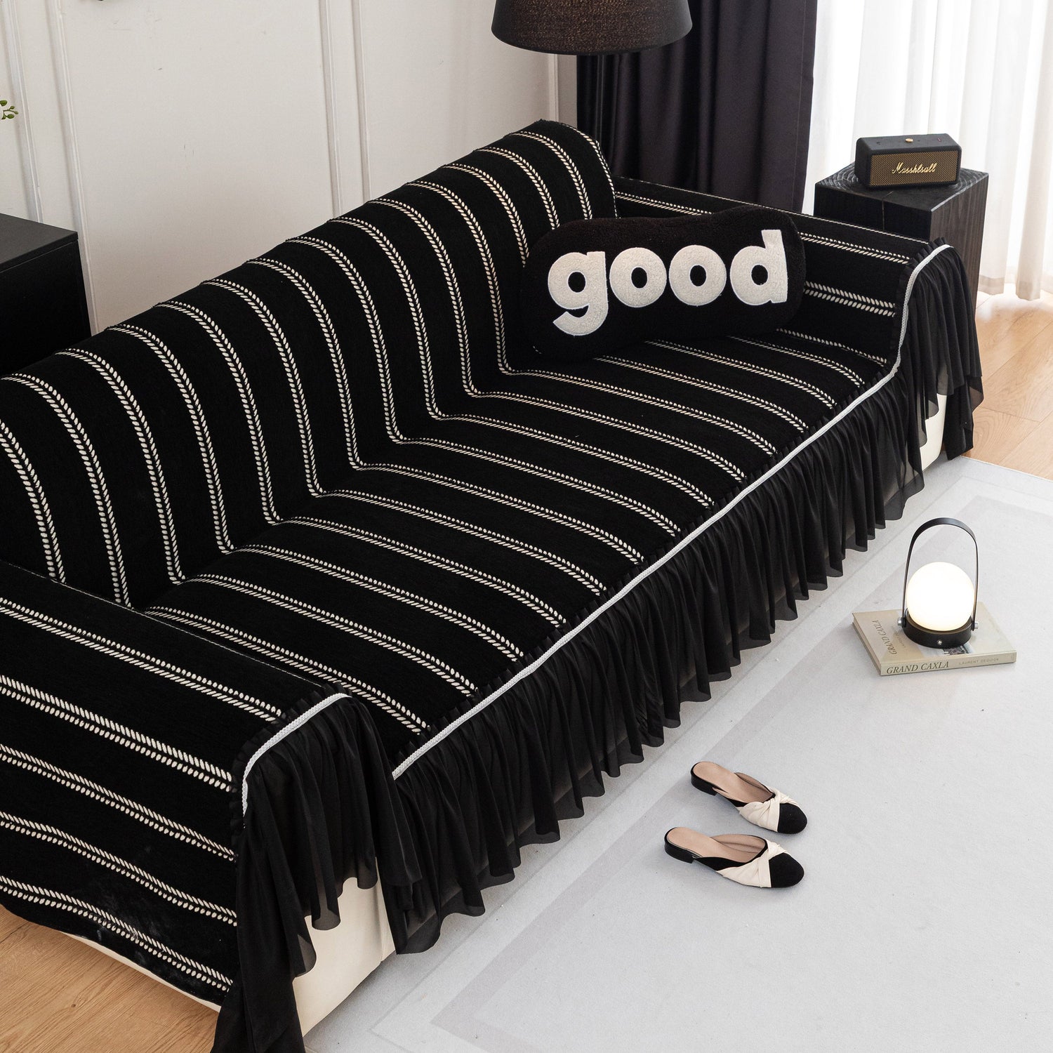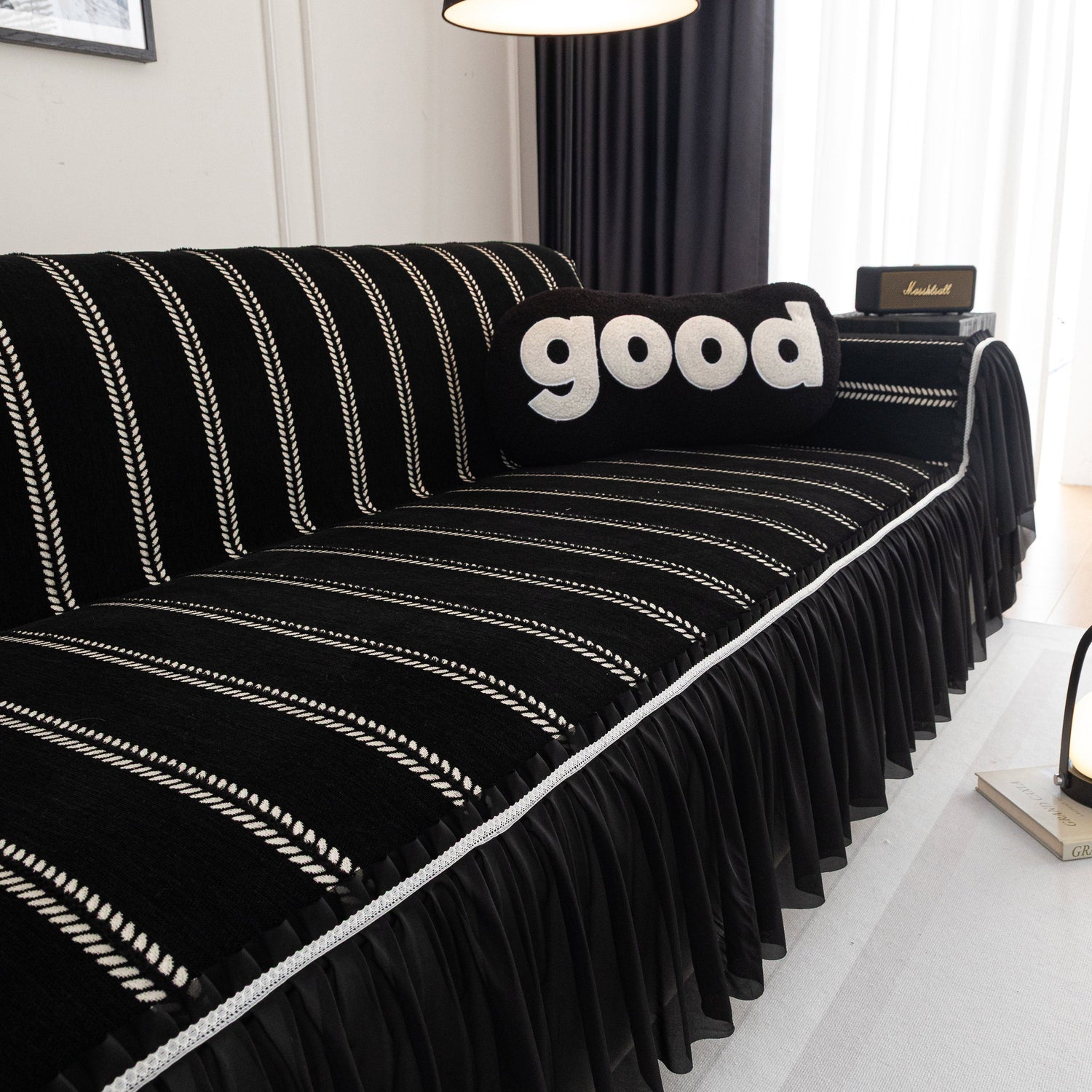 This all-season chenille sofa throw cover features elegant willow-leaf stripes and a flowing black chiffon skirt, bringing both decorative charm and practical protection. Ideal for covering seats, backs, and armrests, it guards against pets, dust, and daily wear. With multiple color options and a soft yet structured texture, it fits seamlessly into minimalist, Nordic, Japanese, or modern luxury interiors.