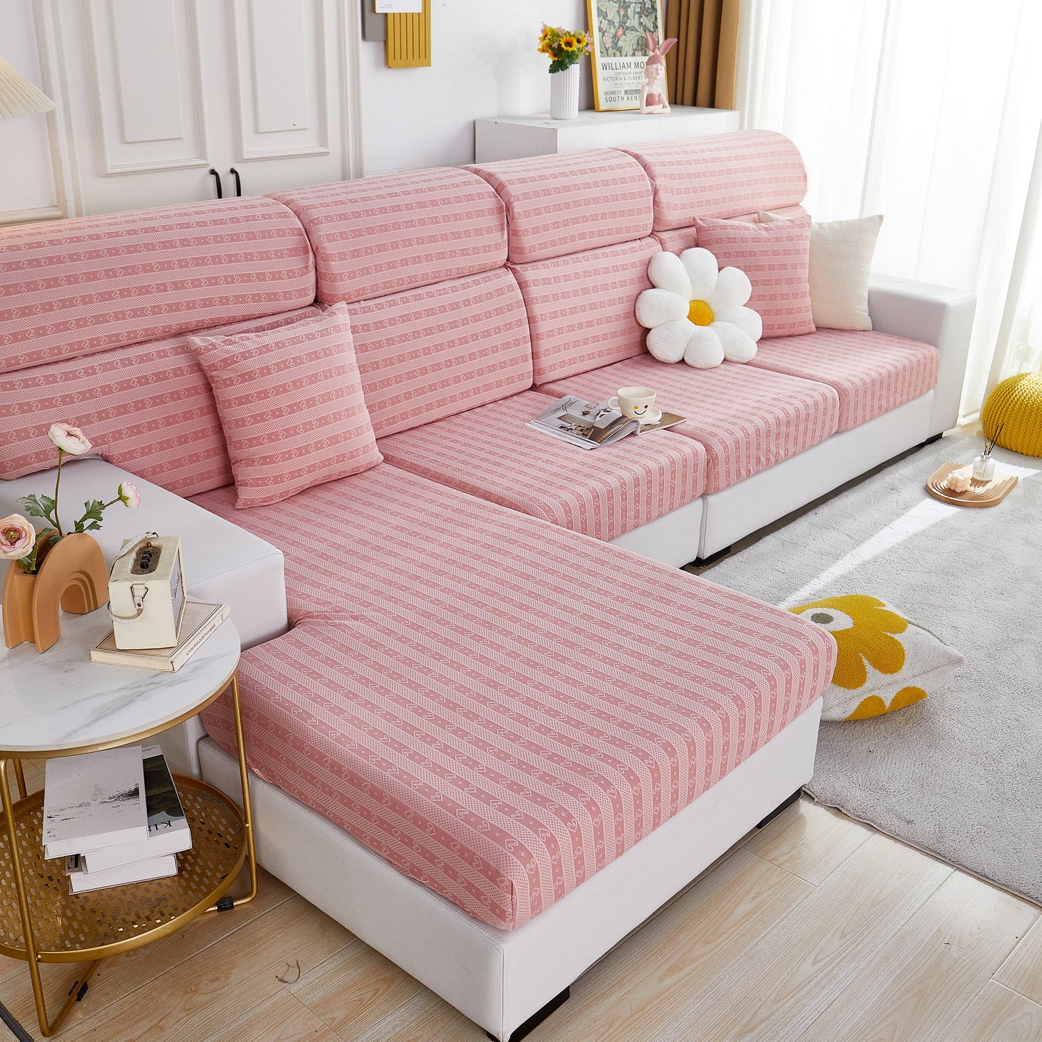 Love Stripe Jacquard Fleece Fabric Stretch Cushion Cover, Non-Slip Furniture Protector for Kids, Couch Cushion Covers - Pink / 1-Seater XL is backordered and will ship as soon as it is back in stock.