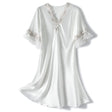 Lus Chic Womens Satin Nightgown Summer Luxury Soft Lace Short Sleeve V Neck Sleep Shirt Sleepwear White XL