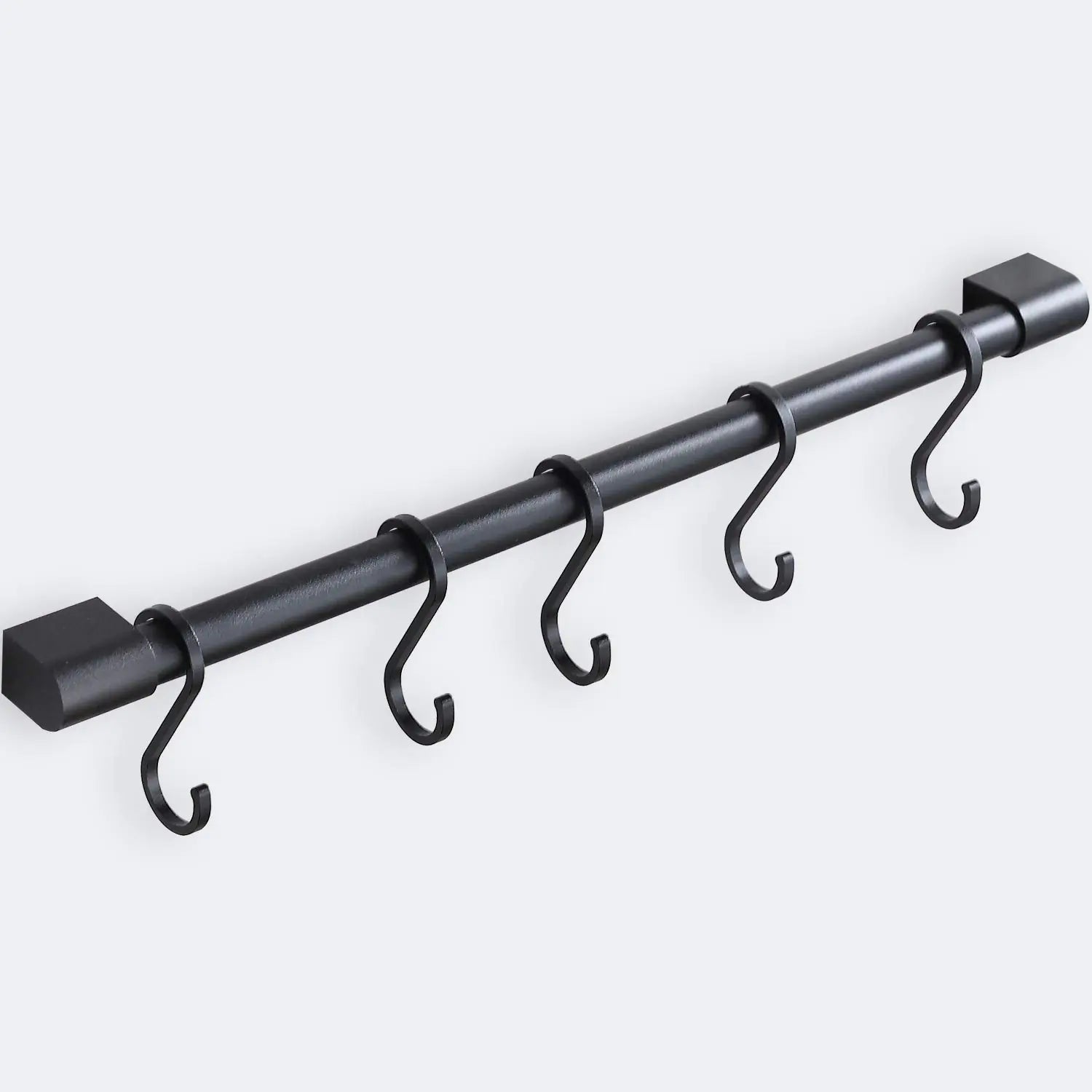 MIAOHUI Kitchen Rail with Hooks Pan and Pot Hangers for Kitchen Wall Mount Kitchen Utensil Rack with Removable S Hook Aluminum (17.3inch_Black_5Hooks) - Black is backordered and will ship as soon as it is back in stock.