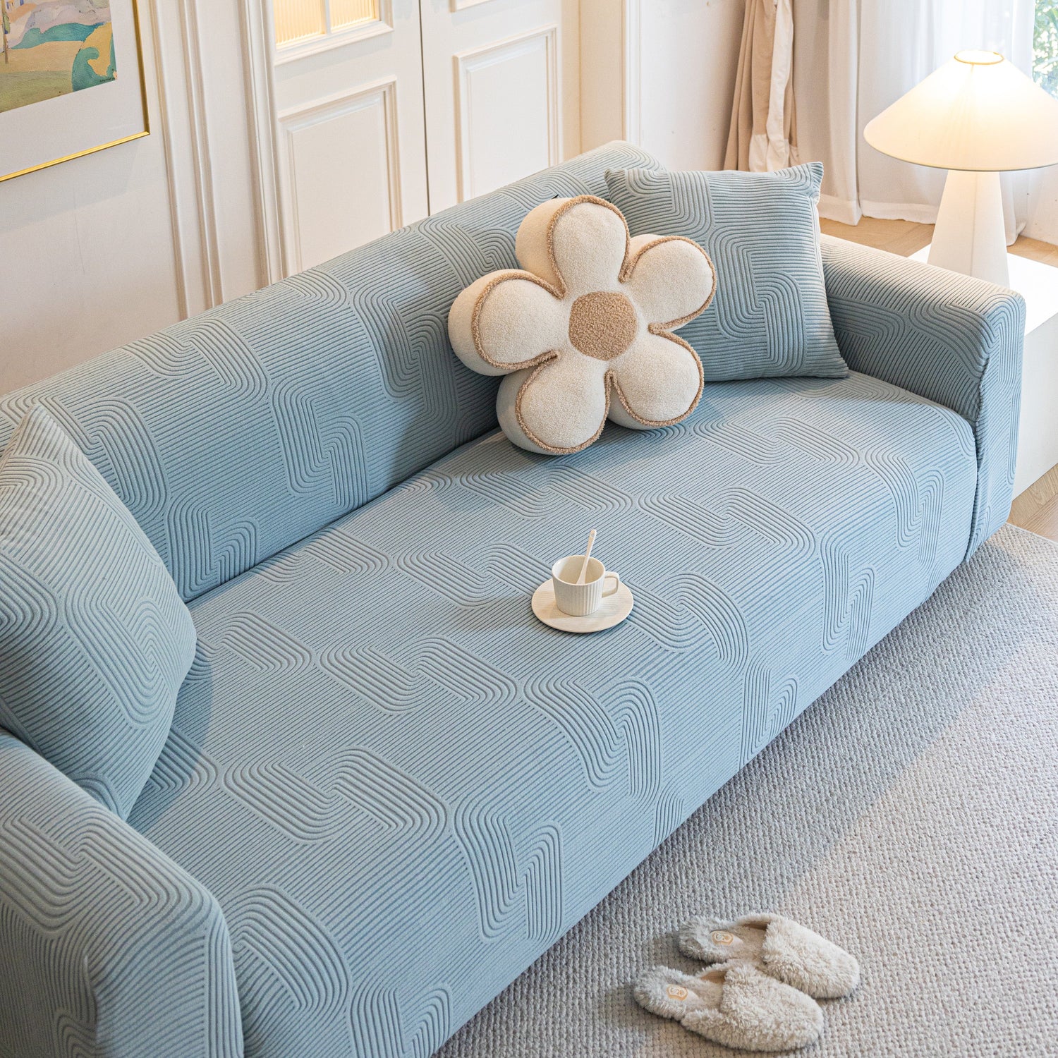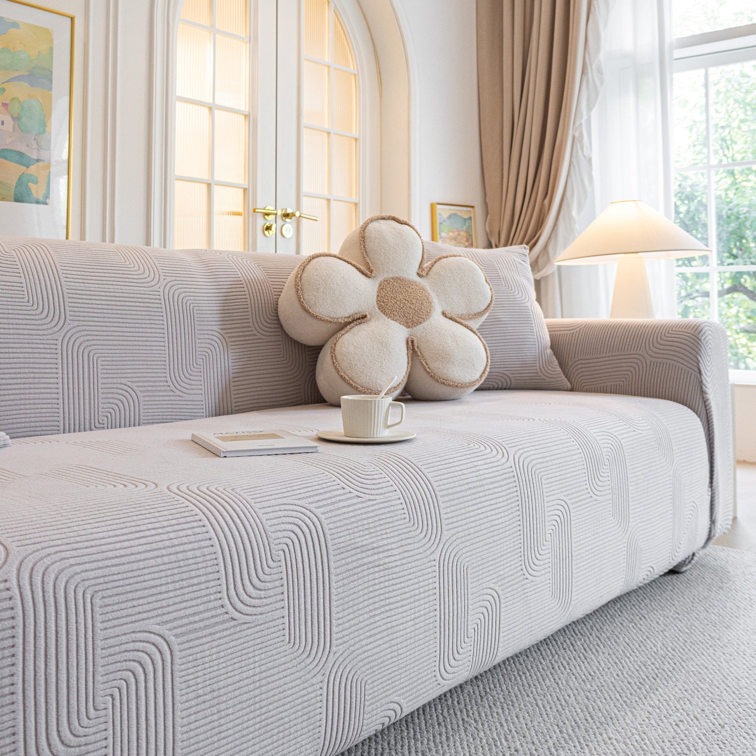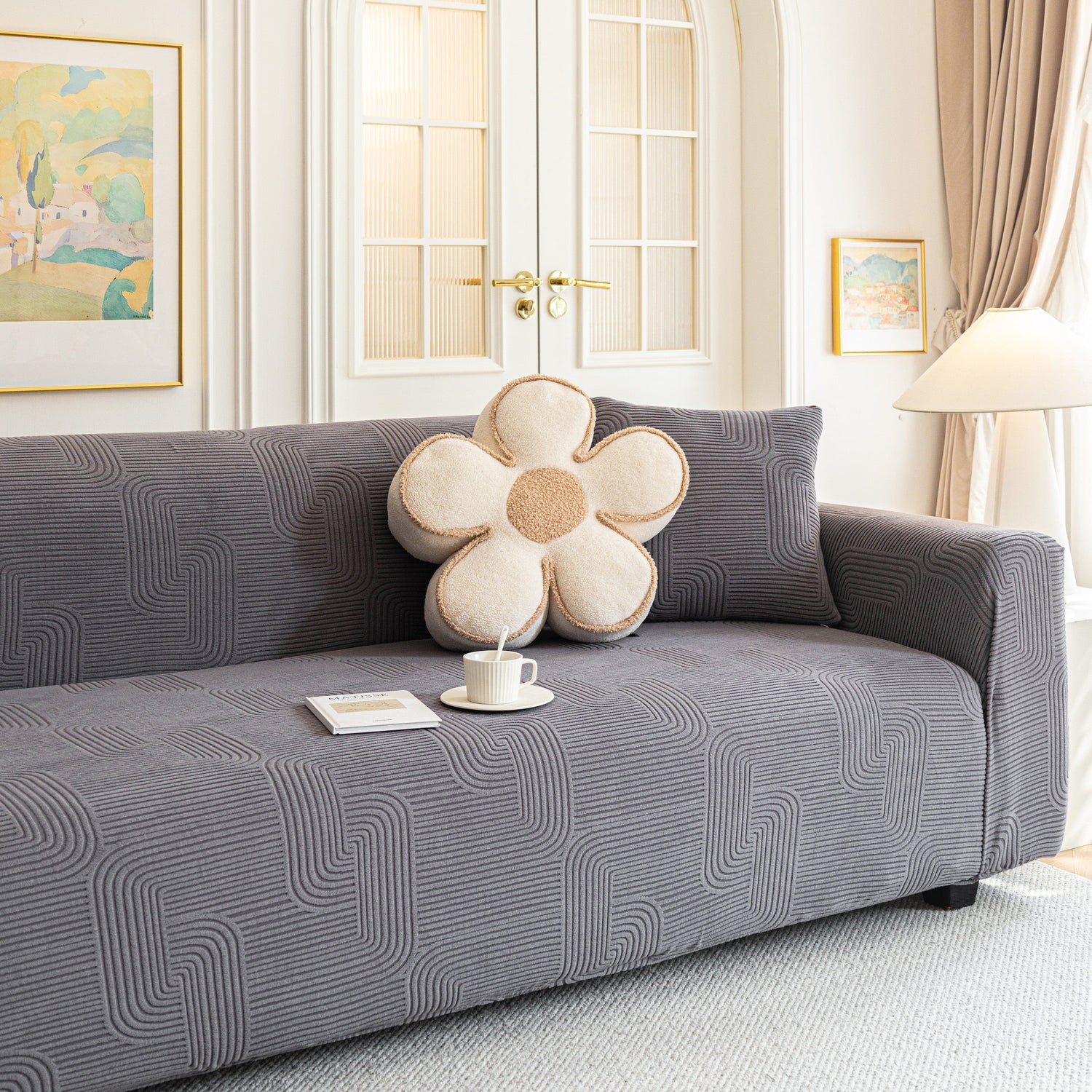 Modern Slipcovers Geometric Textured Stretchable Sofa Cover for Couch with Chaise