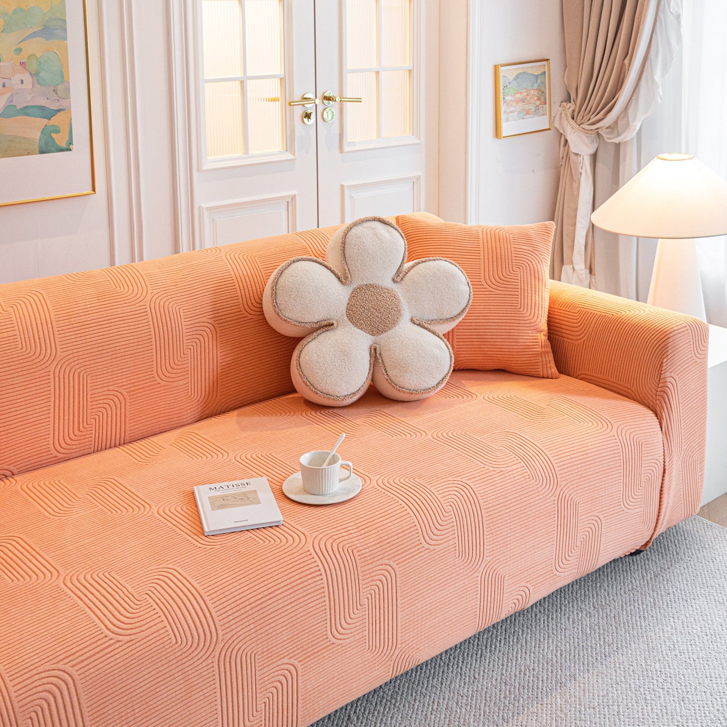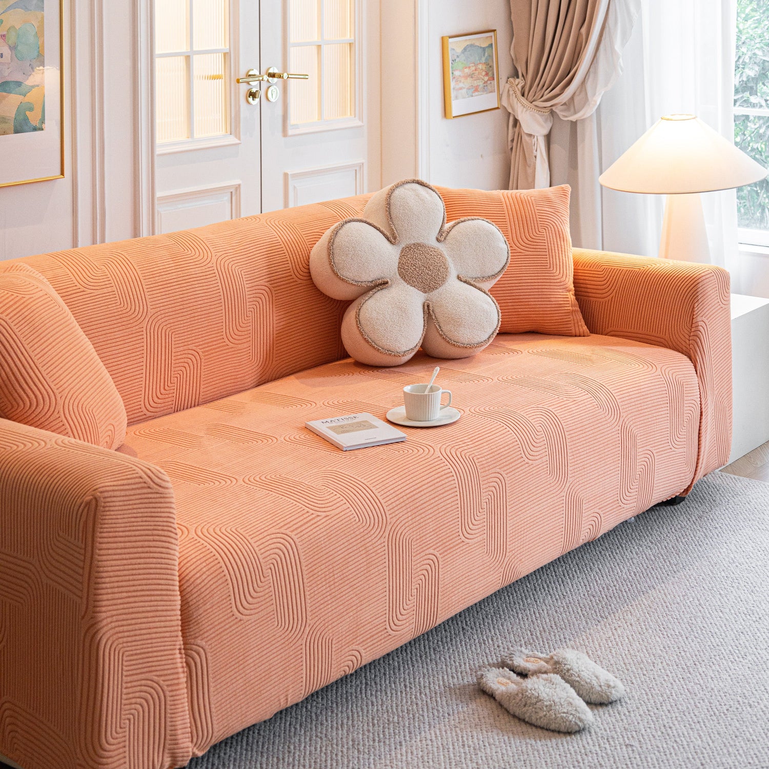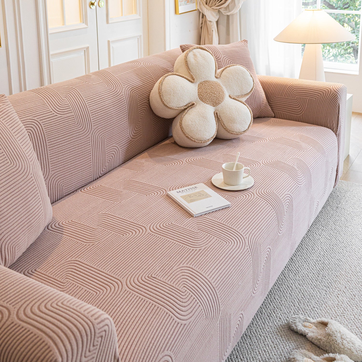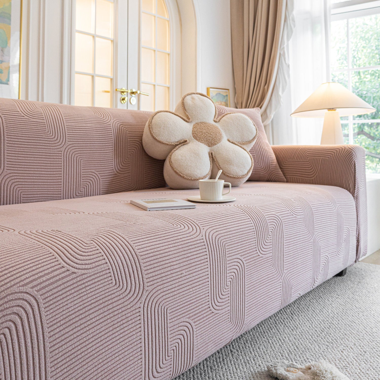 Modern Slipcovers Geometric Textured Stretchable Sofa Cover for Couch with Chaise - Pink / 1-Seater 70-90cm(27" - 36") is backordered and will ship as soon as it is back in stock.