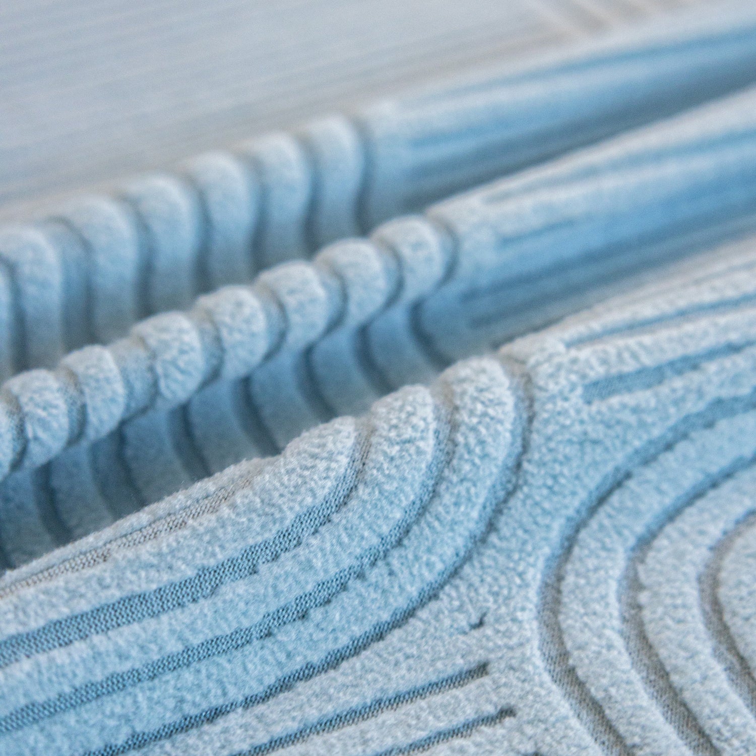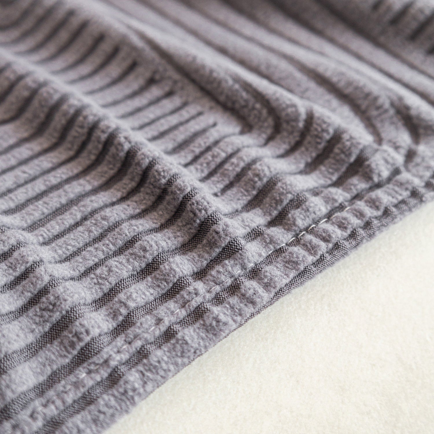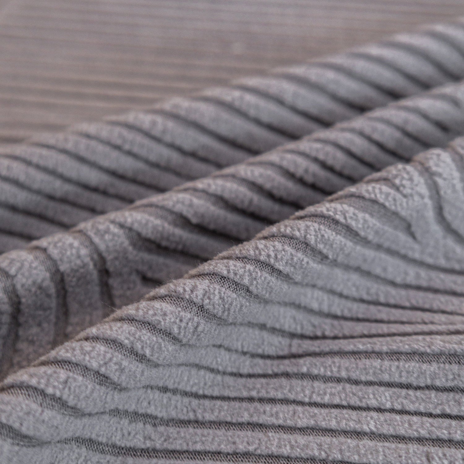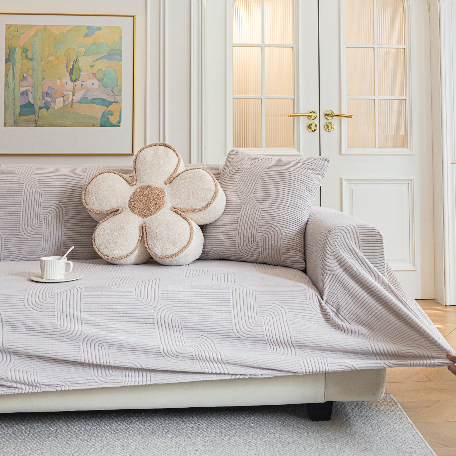 The Geometric Textured Stretchable Sofa Cover is designed for couches with a chaise. It is made from a spandex blend fabric that provides a snug fit. The cover features a modern geometric pattern. It helps protect the sofa from spills, pet hair, and daily wear. The fabric is soft, durable, and machine washable. The cover is easy to install and remove.