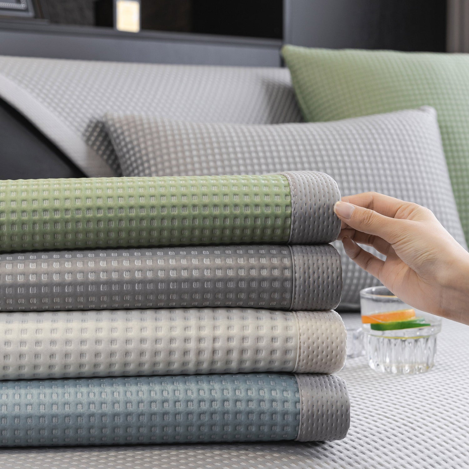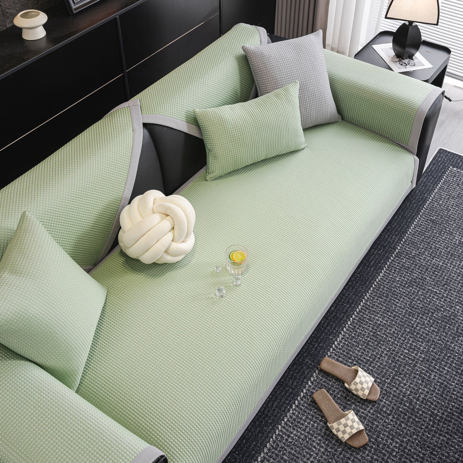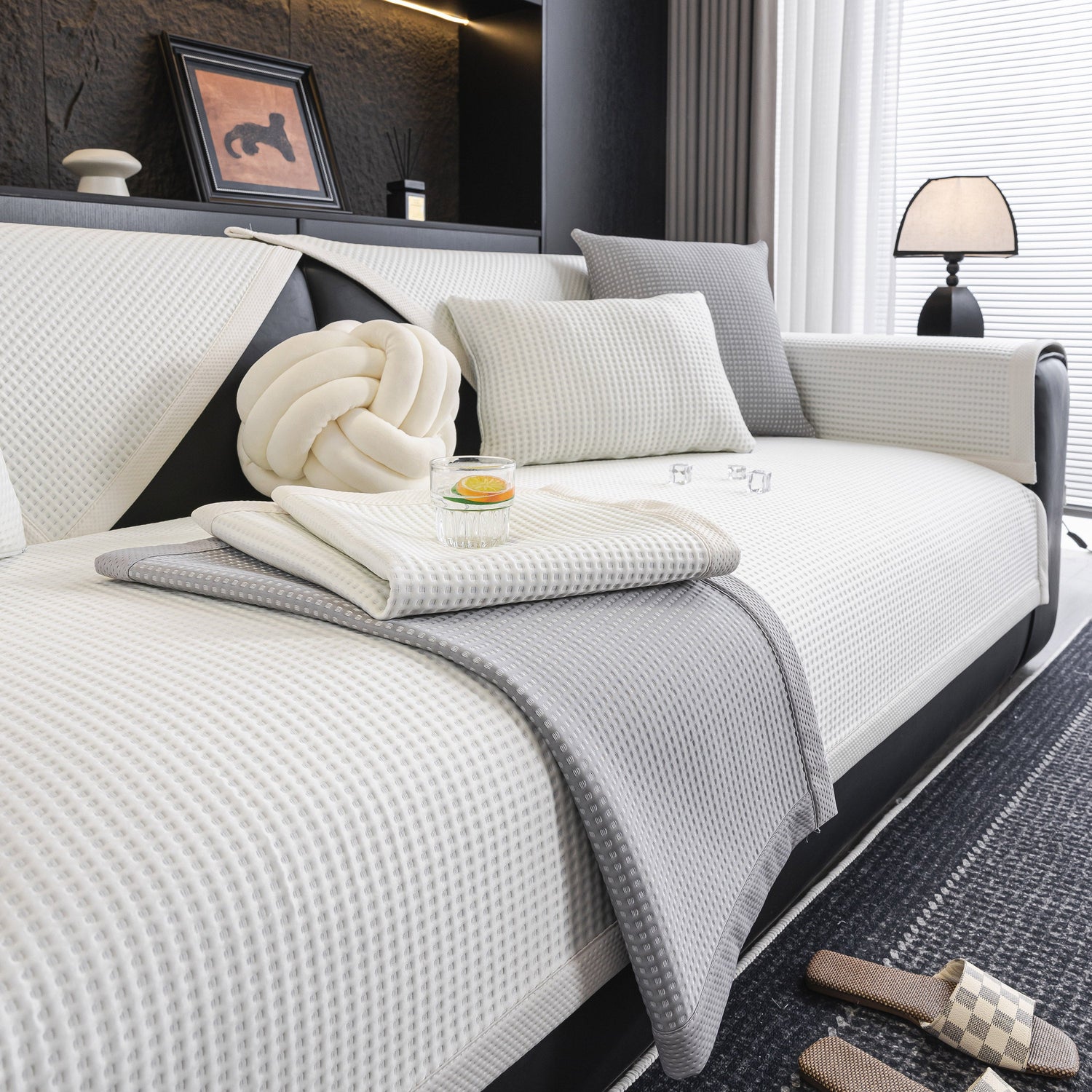 Lightweight and towel-style, the cover is easy to lay on, adjust, and remove—ideal for homes with pets, children, or anyone wanting a quick sofa refresh without the hassle of a full slipcover. Washable and non-slip, it protects your furniture from daily wear while adding a breathable, skin-friendly layer of comfort.