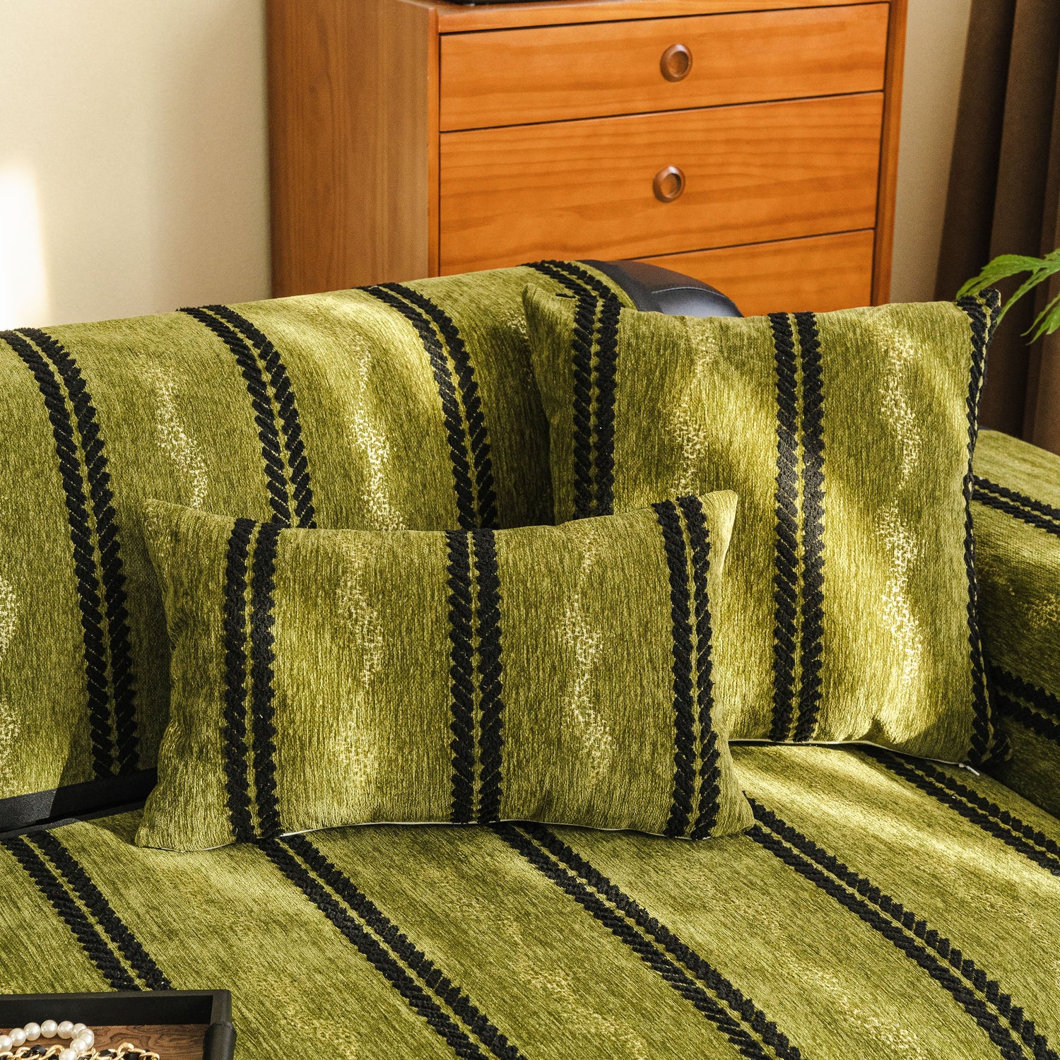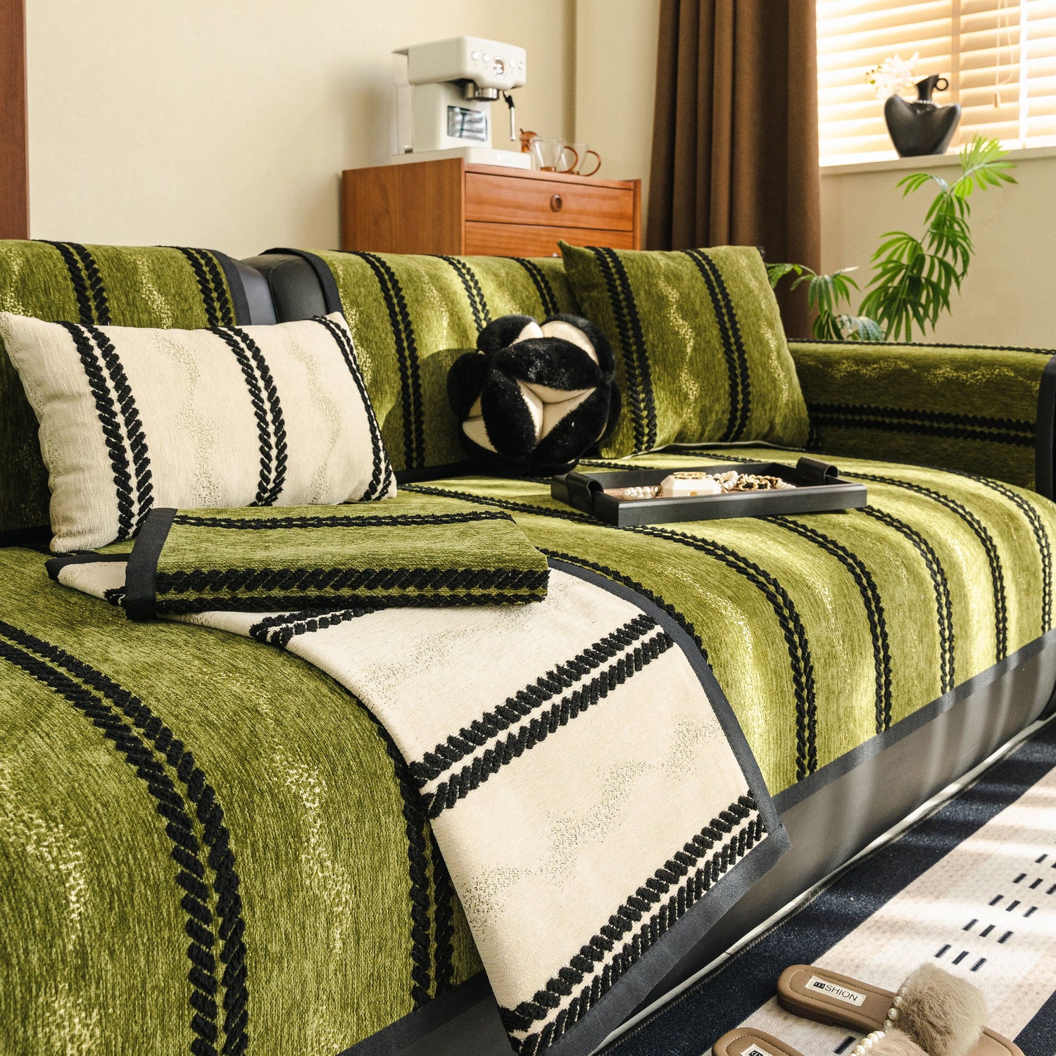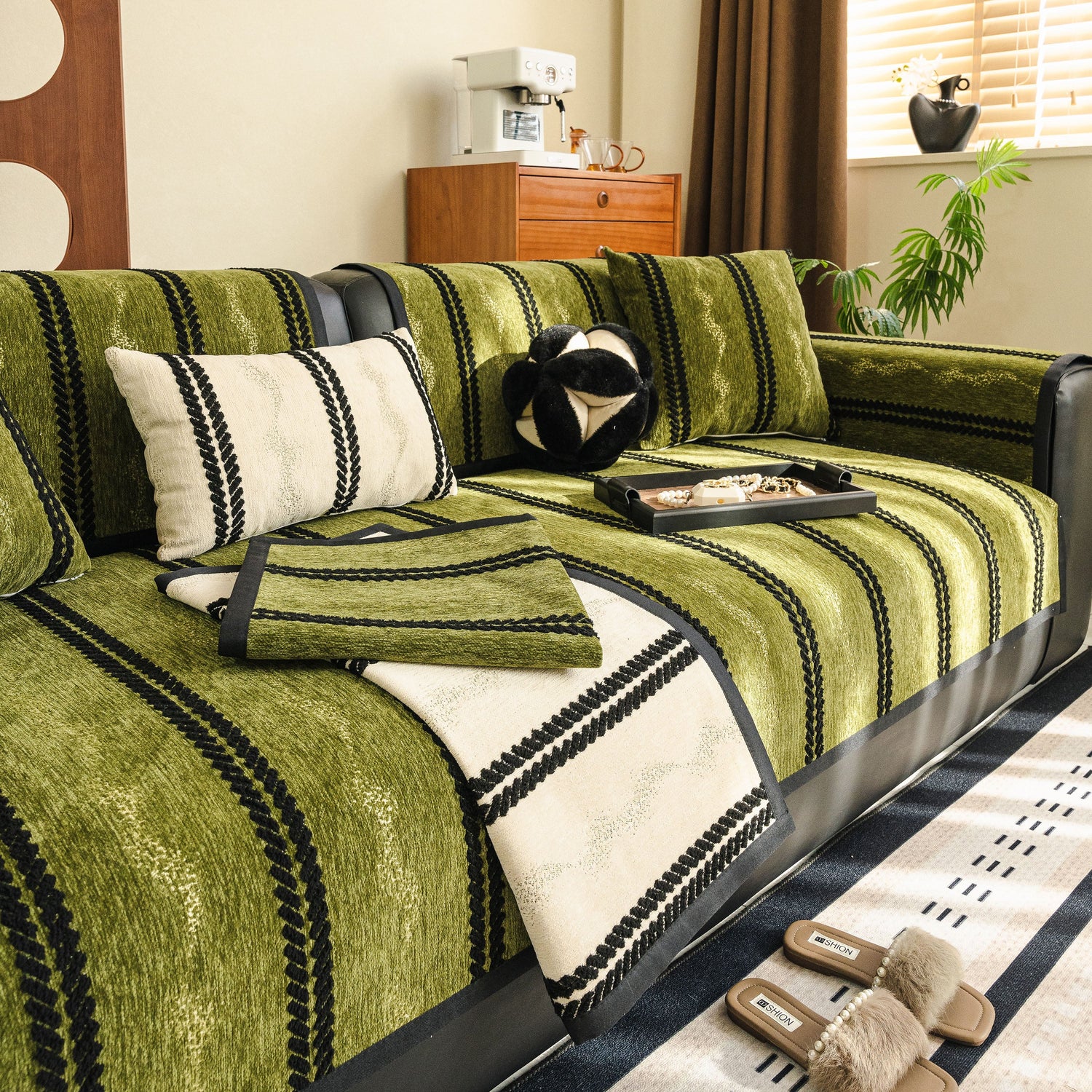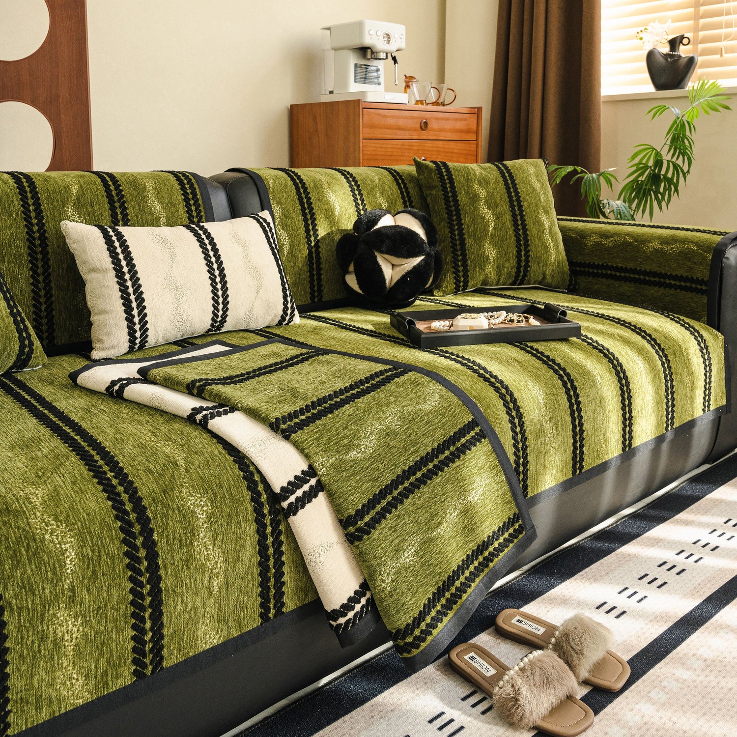 Non-Slip Sofa Cover with Thick Chenille Texture Woven Stripe Couch Protector Throw