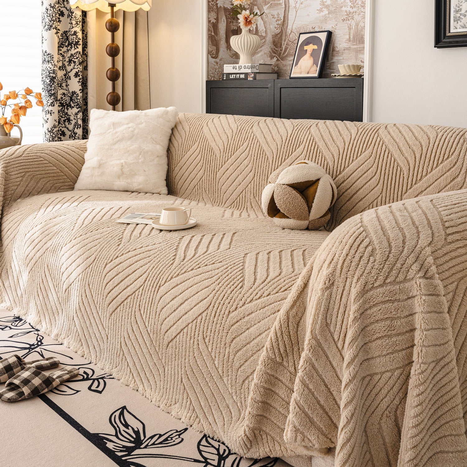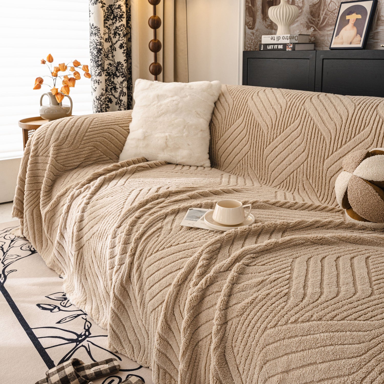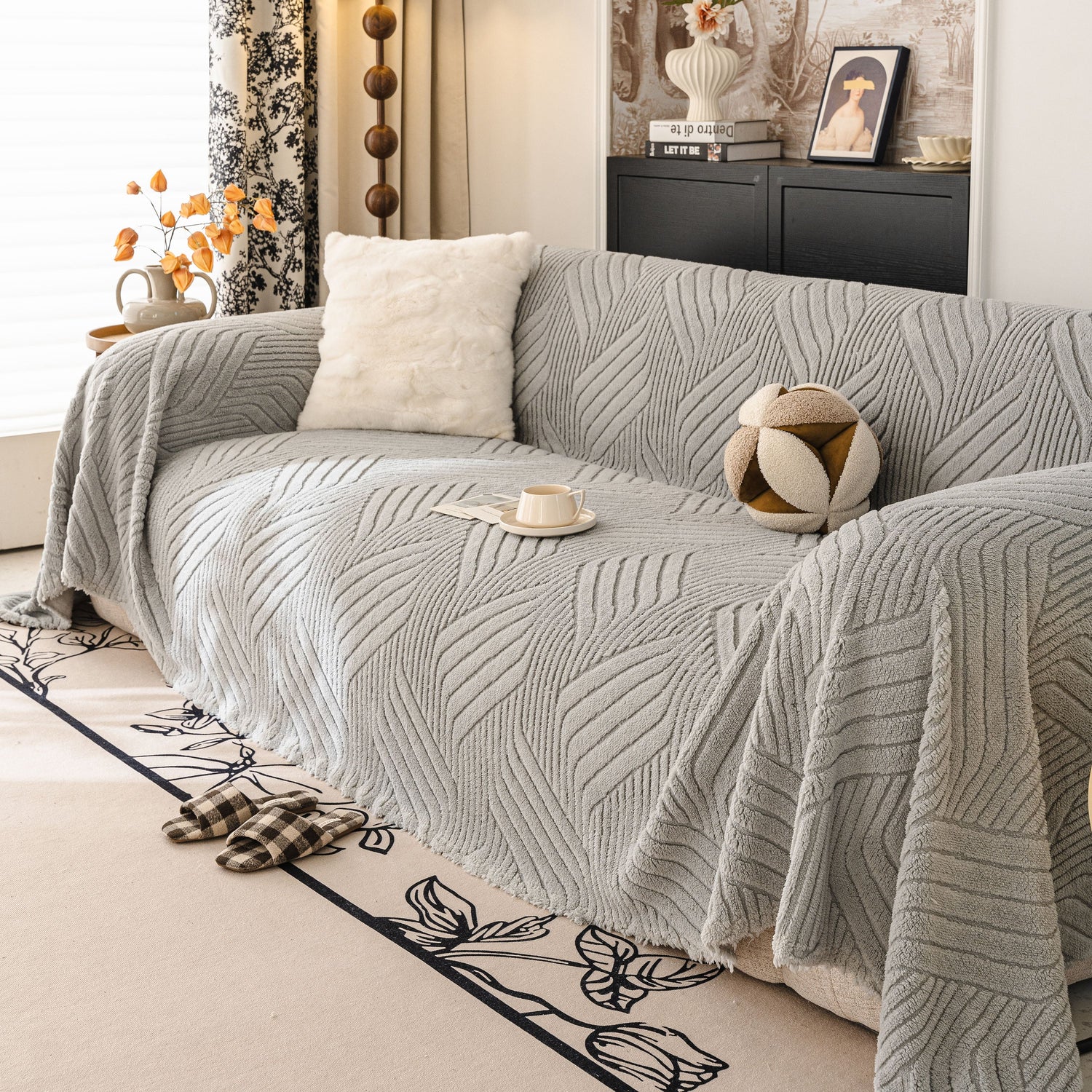 - High-quality Materials: This sofa cover is made from high-quality plush flannel fleece, offering exceptional softness and warmth. The fabric features a unique, deep-embossed geometric texture that provides a modern, stylish look. It is durable, designed to resist pilling and shedding, and retains its rich texture and coziness over time.