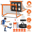 *Complete Soccer Goals Set*:A comprehensive soccer training equipment set comes with 2Pc 6x4FT soccer goals,removable scoring target,inflatable soccer and pump,10Pc marker cones,8Pc ground nails,carry bag and agility ladder. We prepare everything you need for creating an effective and engaging practice session.