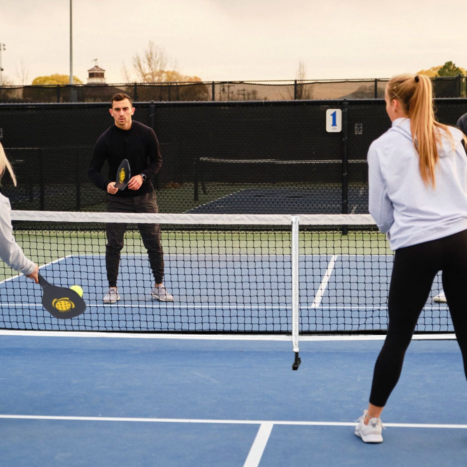 Portable Pickleball Net Set 22ft Regulation Size Net Pickle Ball Net System with 4 Pickleballs 4 Paddles Carrying Bag for Driveway Backyard - PickleBallSet is backordered and will ship as soon as it is back in stock.