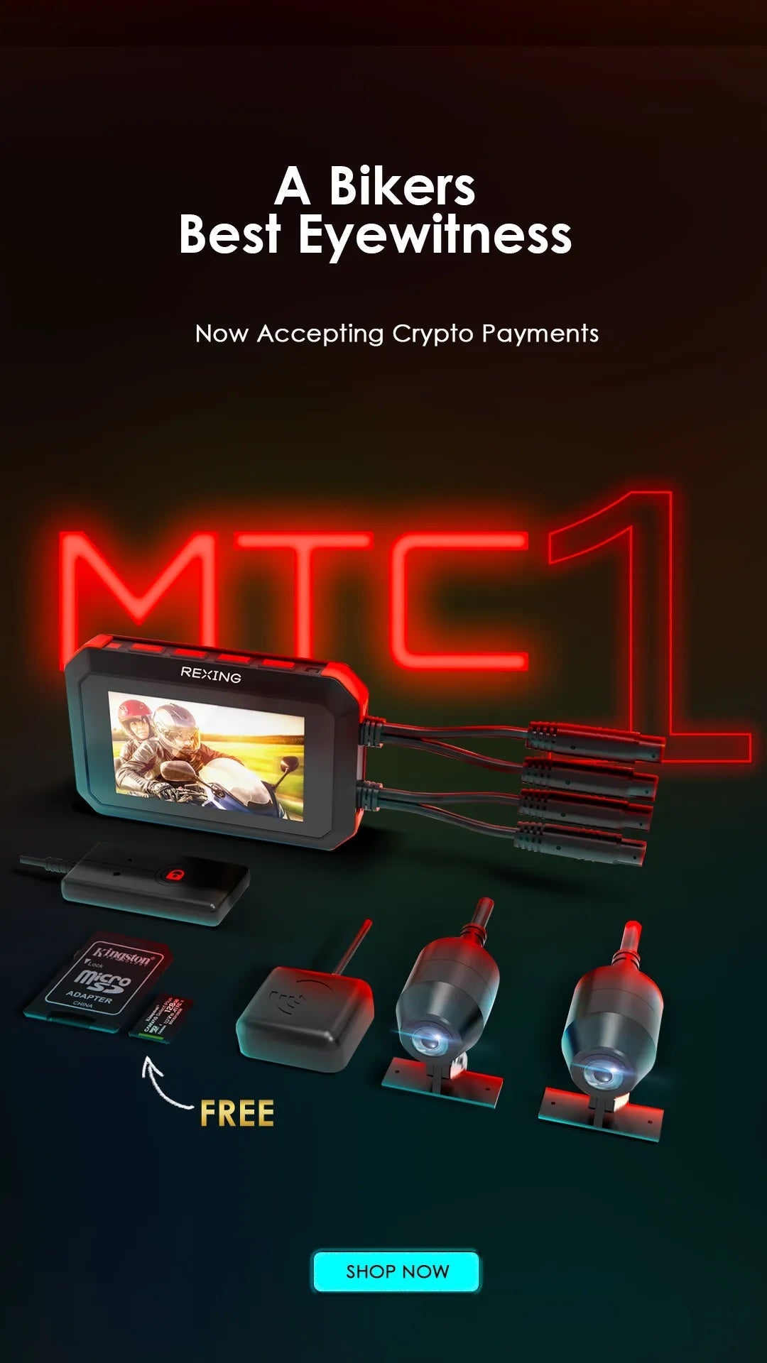 Rexing MTC1 Dual Camera Front and Rear 1080p Motorcycle Dash Cam with WiFi and GPS