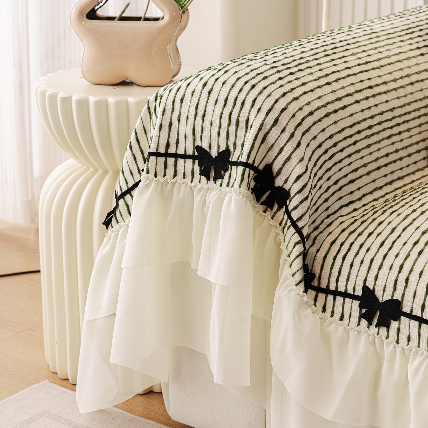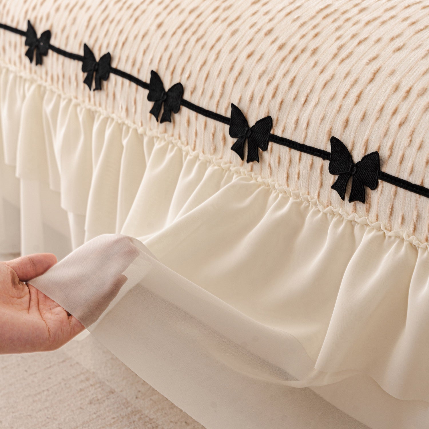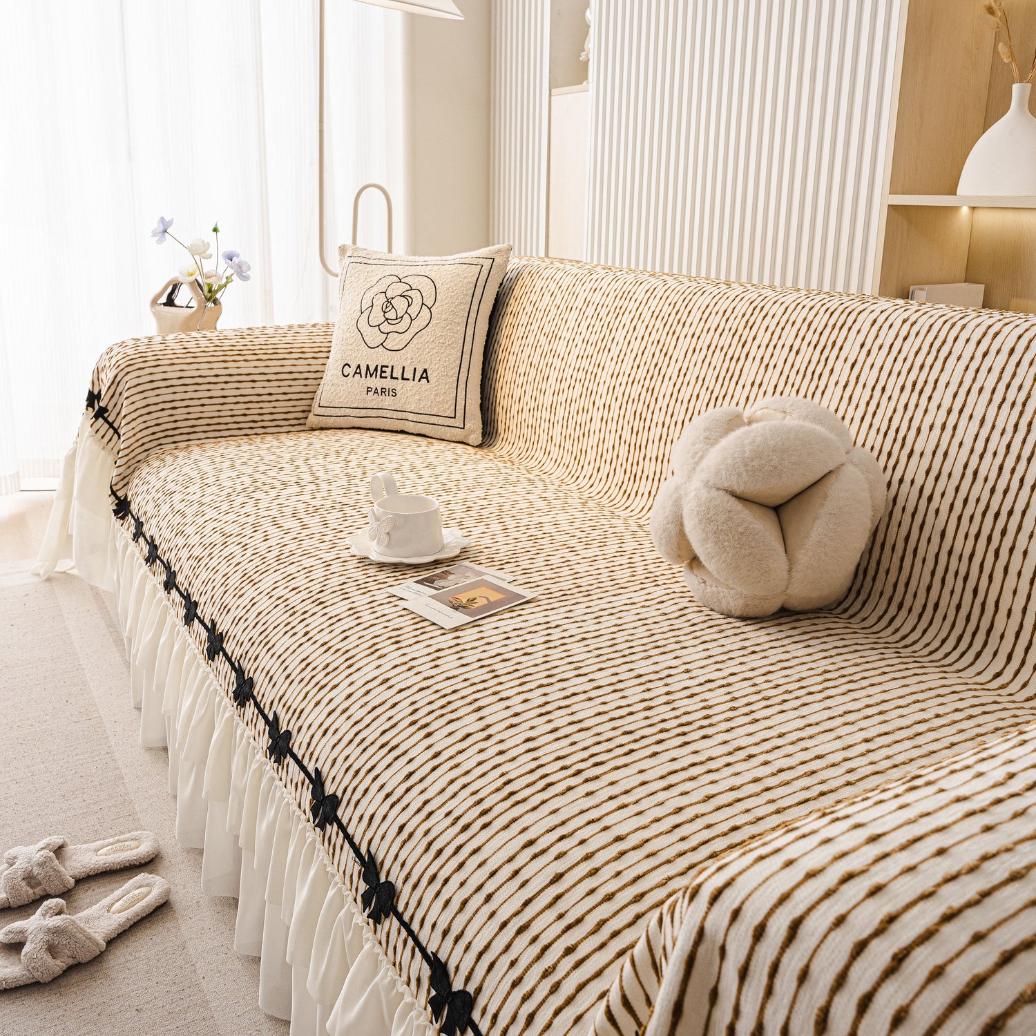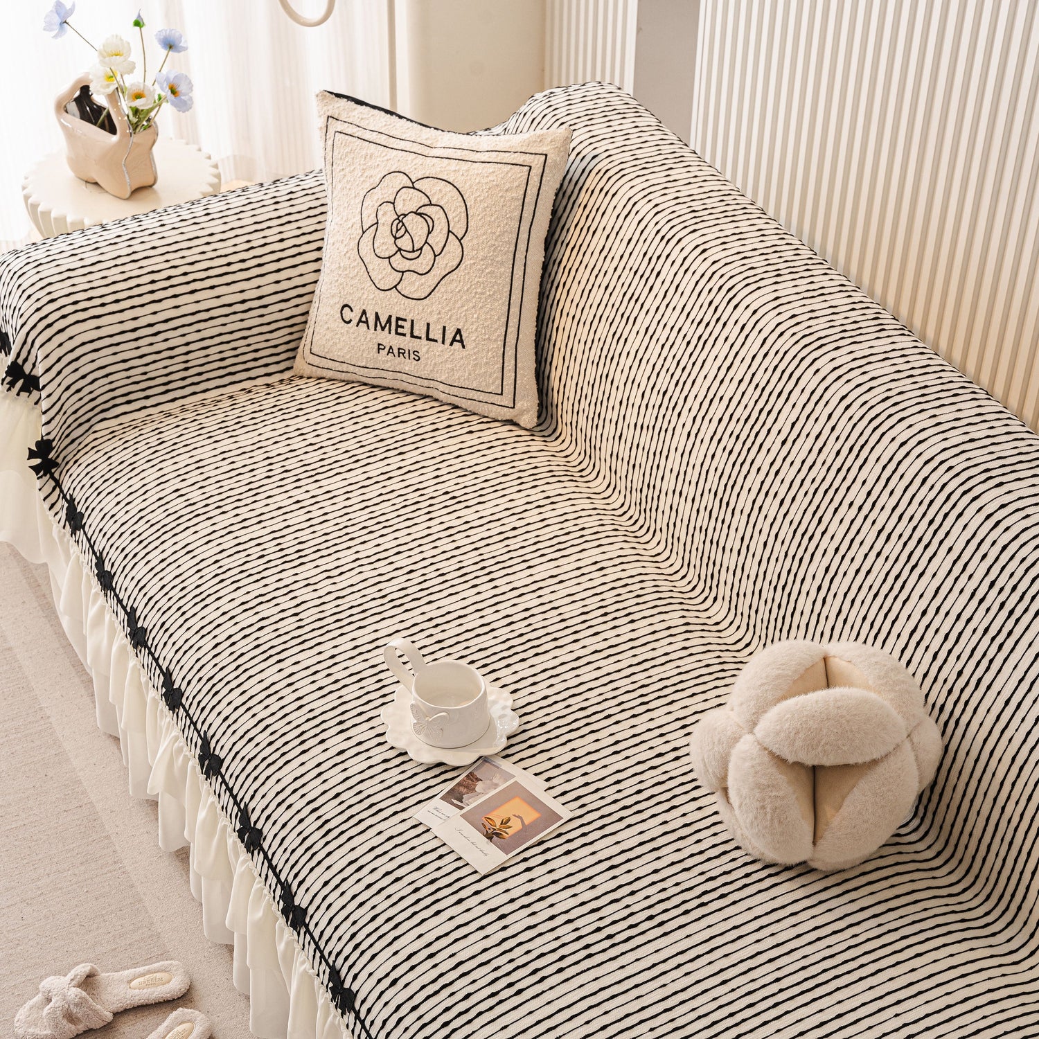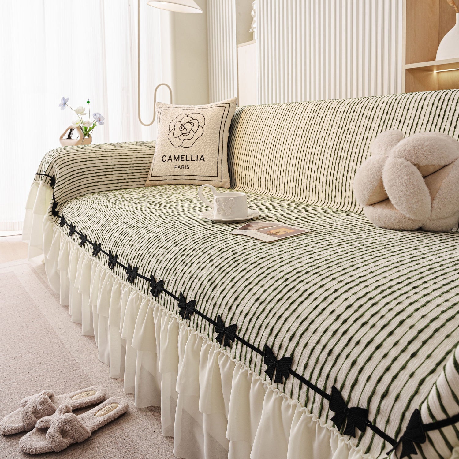 - Chic & Unique Design: Inspired by classic French Country aesthetics, this sofa cover adds a touch of romantic elegance to any room. The charming black bowknots are beautifully complemented by a flowing ruffled skirt, creating a soft and stylish silhouette that's both timeless and unique.