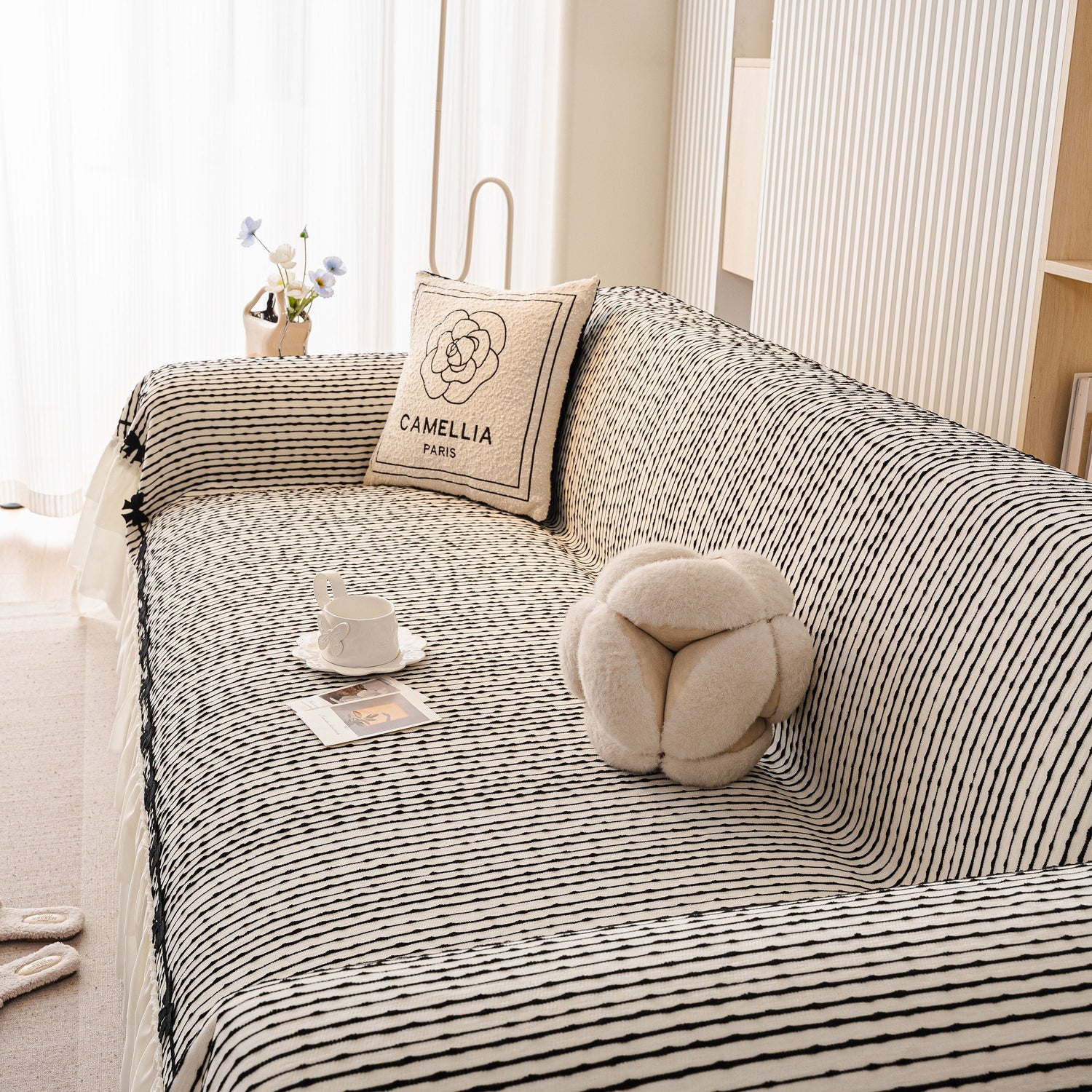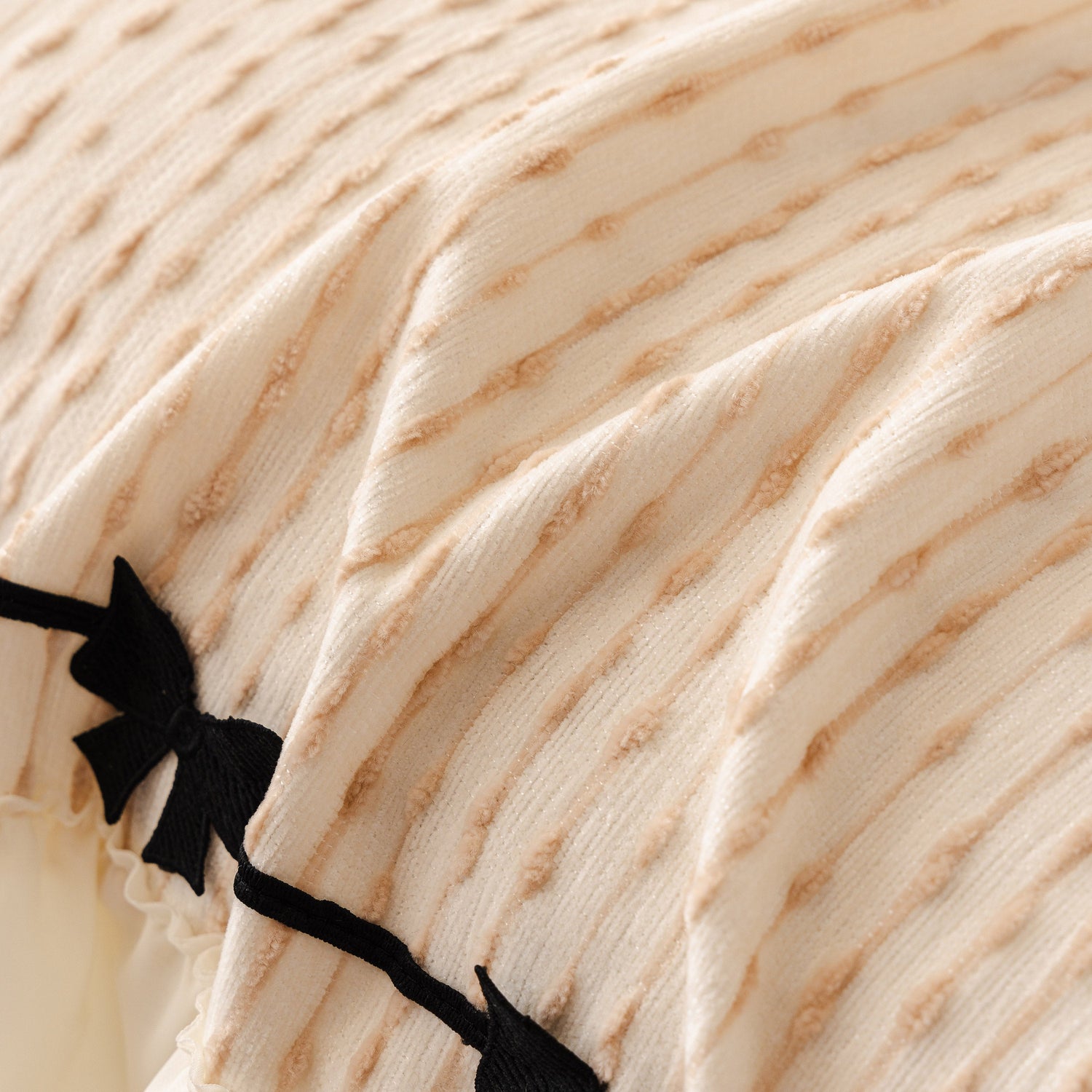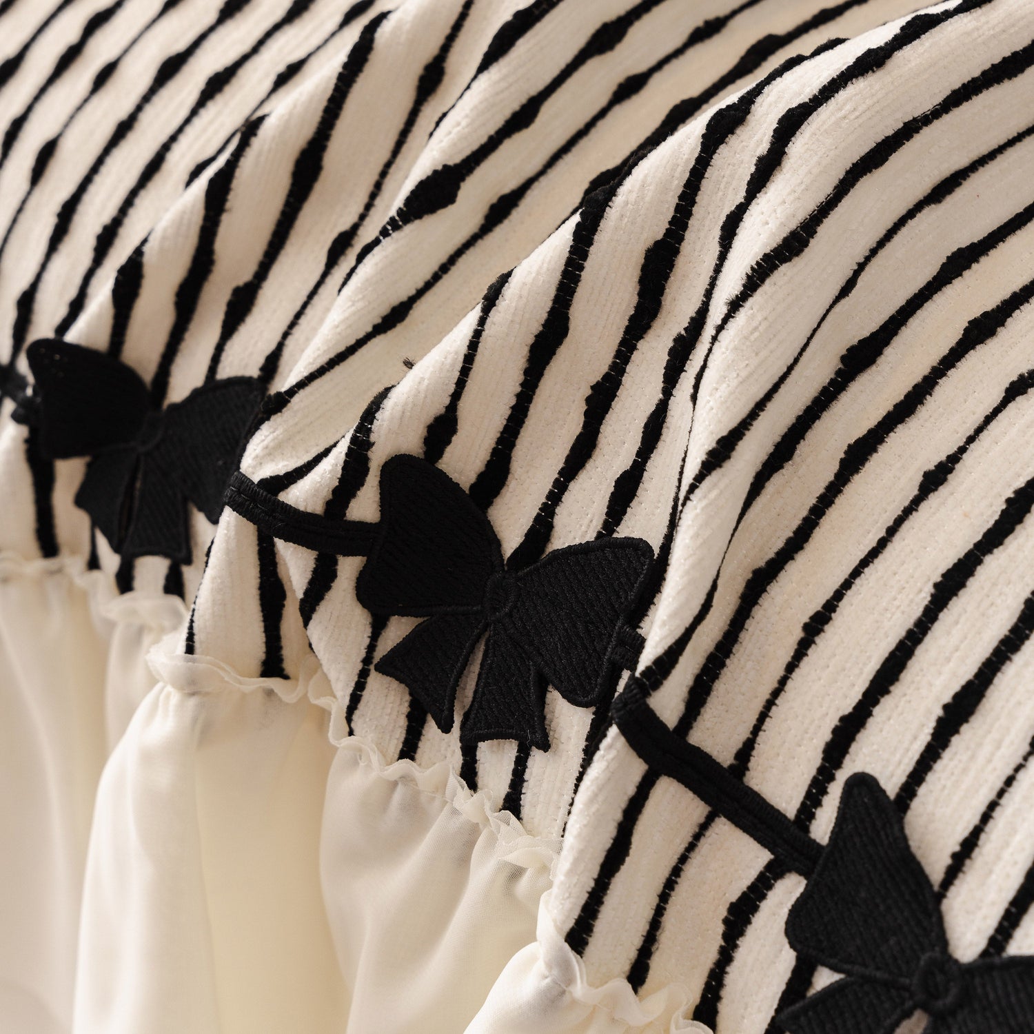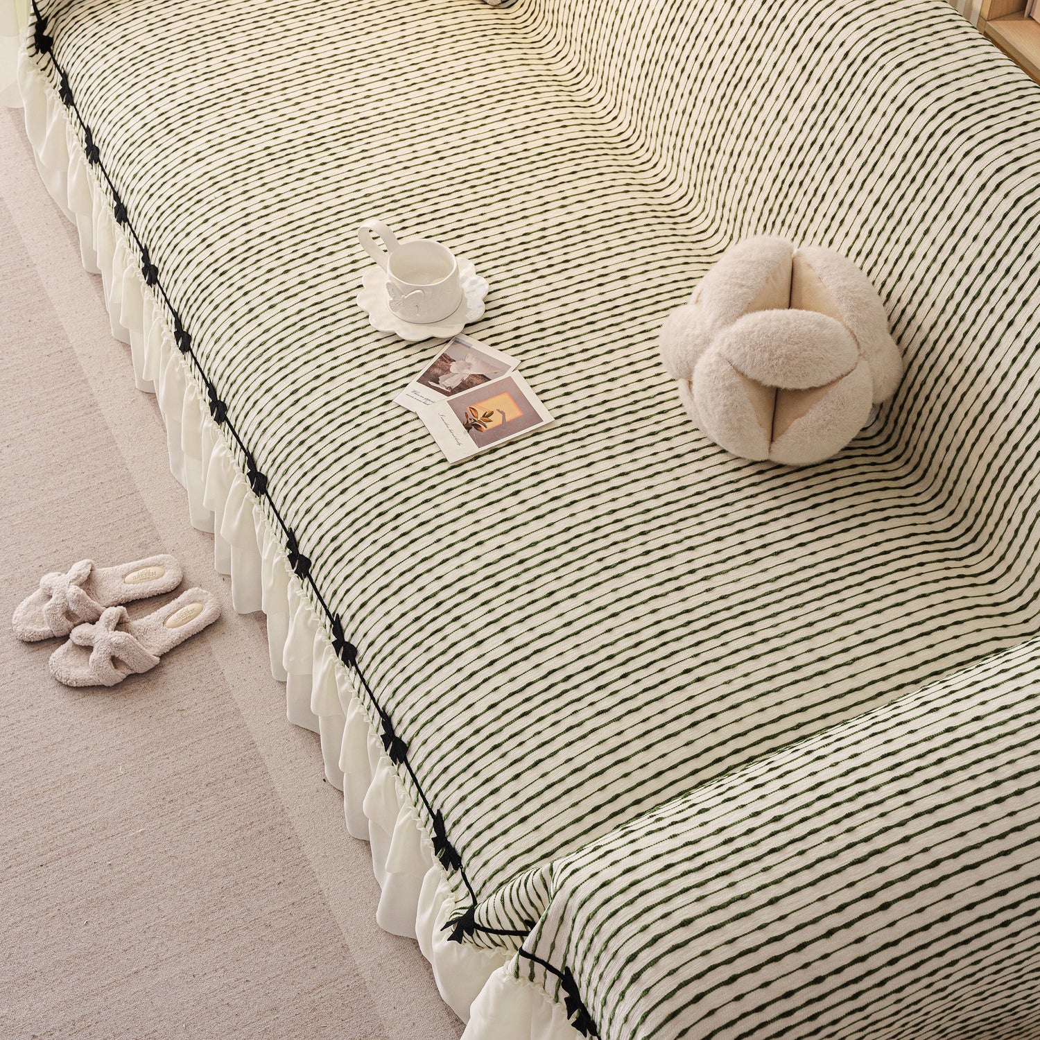 - Chic & Unique Design: Inspired by classic French Country aesthetics, this sofa cover adds a touch of romantic elegance to any room. The charming black bowknots are beautifully complemented by a flowing ruffled skirt, creating a soft and stylish silhouette that's both timeless and unique.