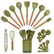 Silicone Kitchen Utensils Set & Holder: Cooking Utensils Set - Kitchen Essentials for New Home & 1st Apartment- Silicone Spatula Set Cooking Spoons for Nonstick Cookware (Acacia Wood Green)