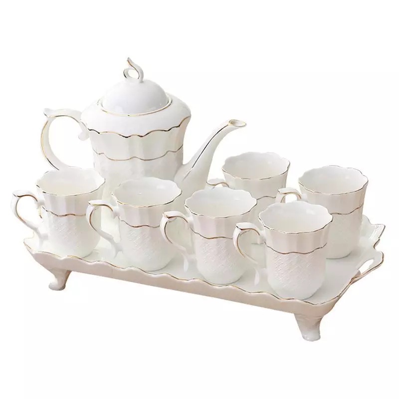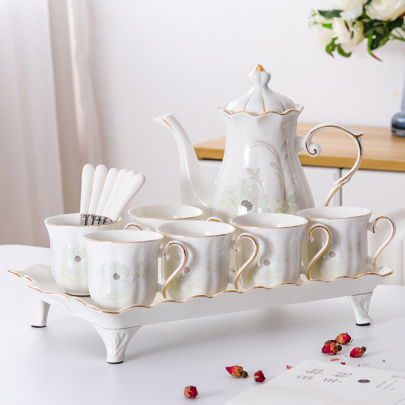 Simple Ceramic Water Set for Living Room Use - Gold and jade brocade with leveling plate and spoon (safe packaging) is backordered and will ship as soon as it is back in stock.