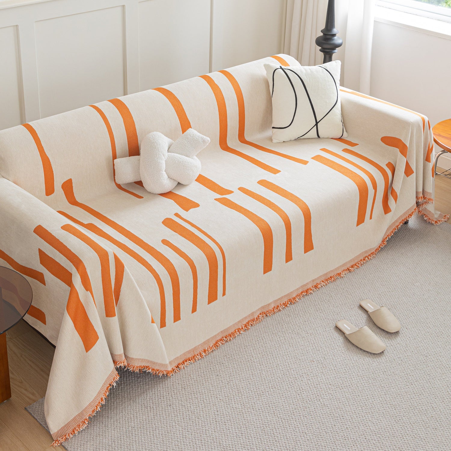 Soft Cozy Chenille Throw Cover for Couch with Tassel Accents, Dustproof Soft Throws for Sofa