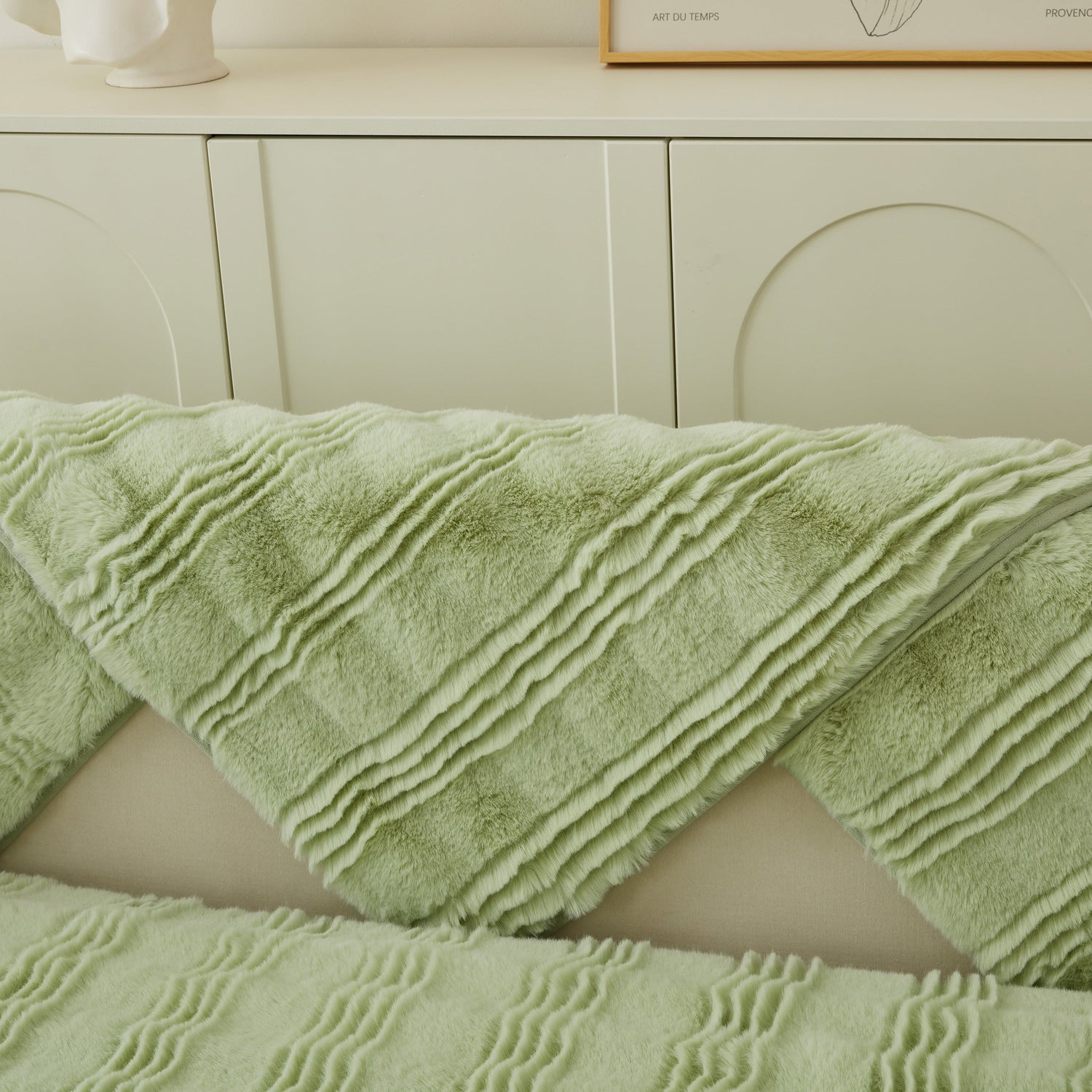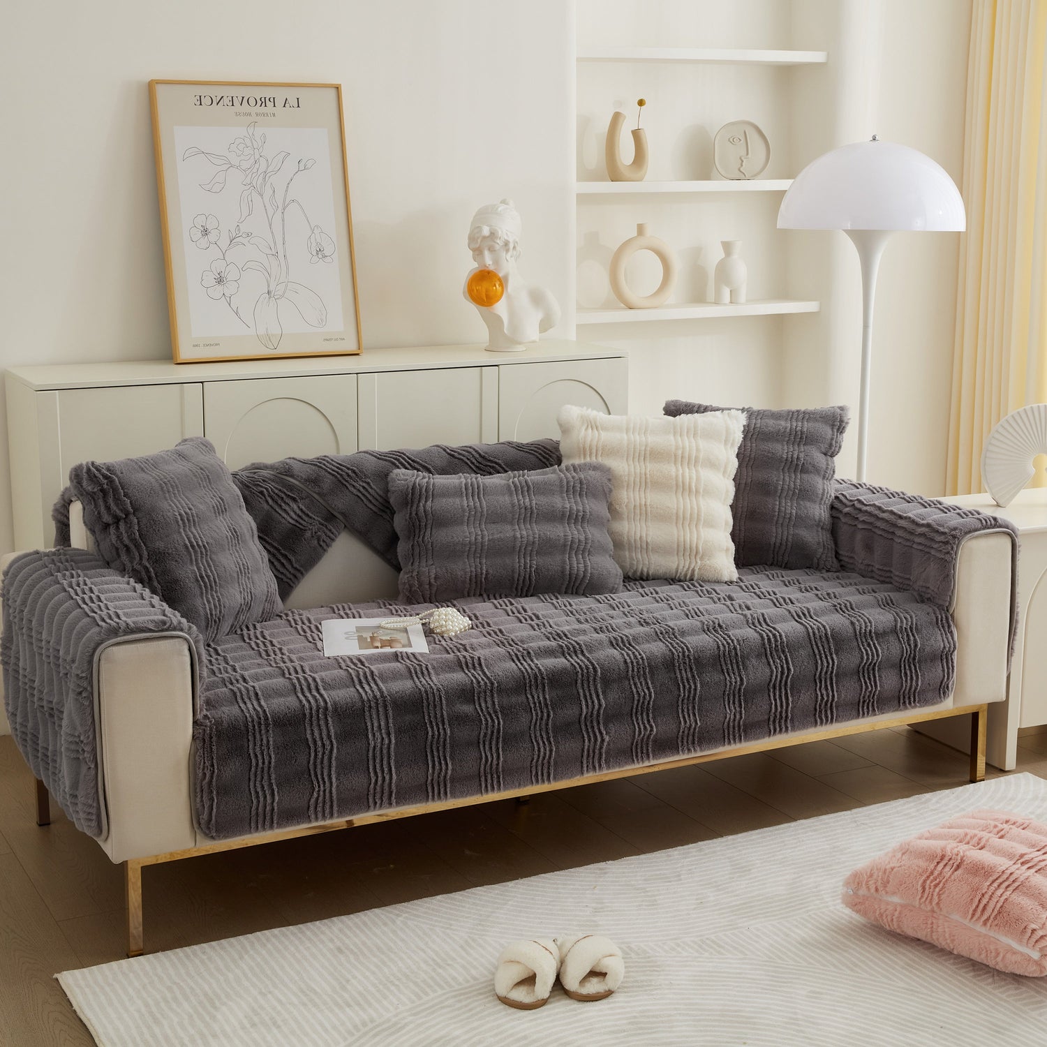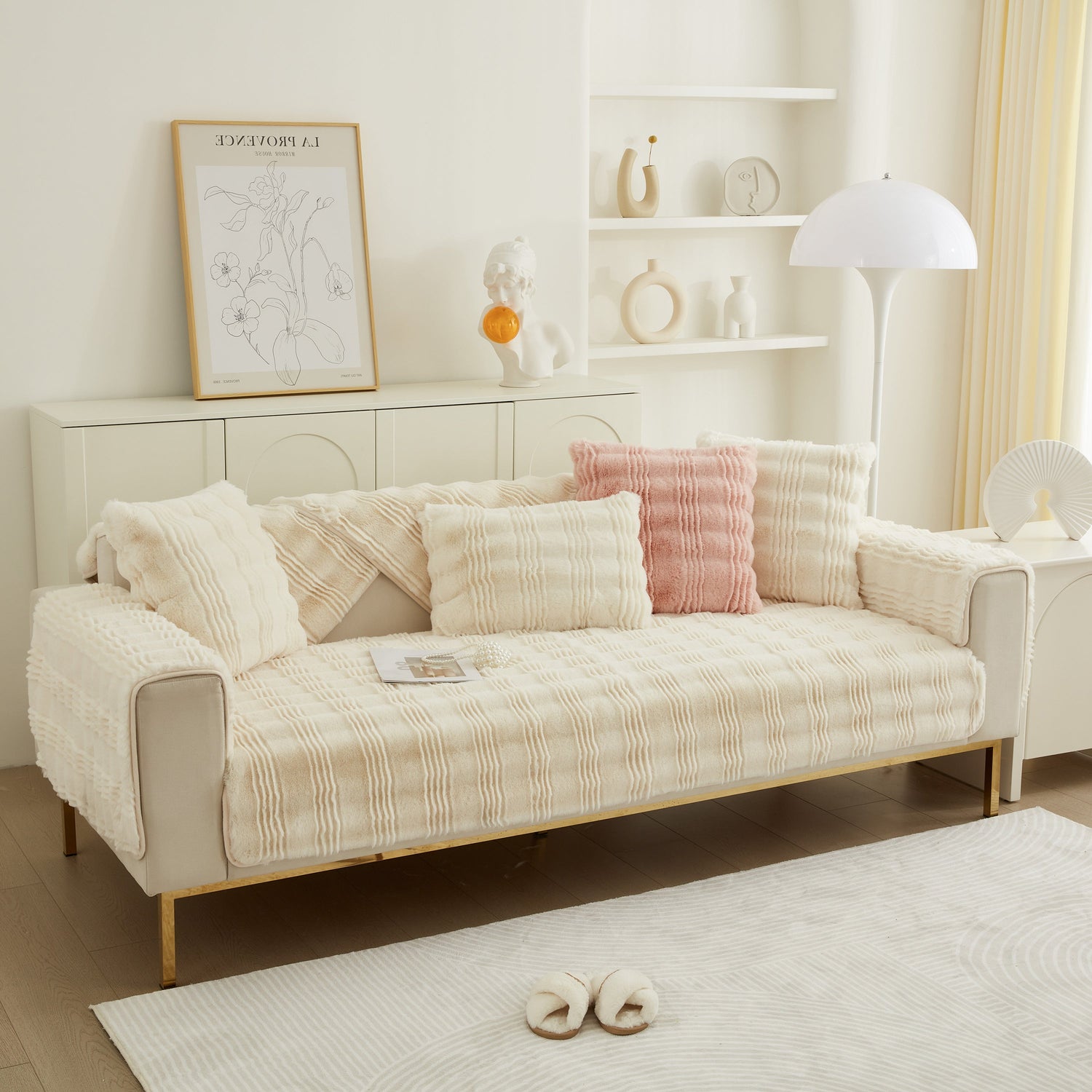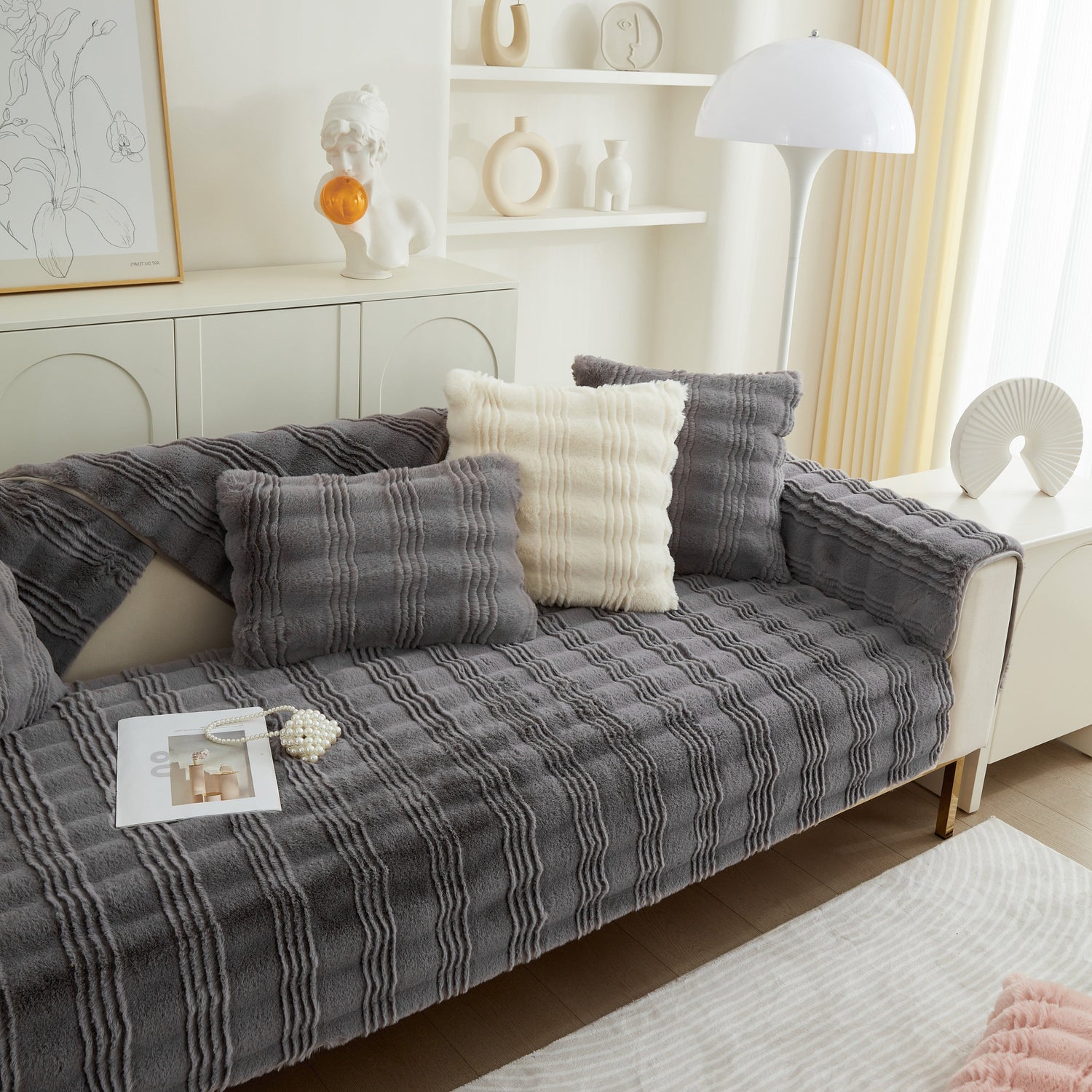 Soft Thick Faux Fur Sofa Cover Stripe Fluffy Fuzzy Non-Slip Washable Couch Covers