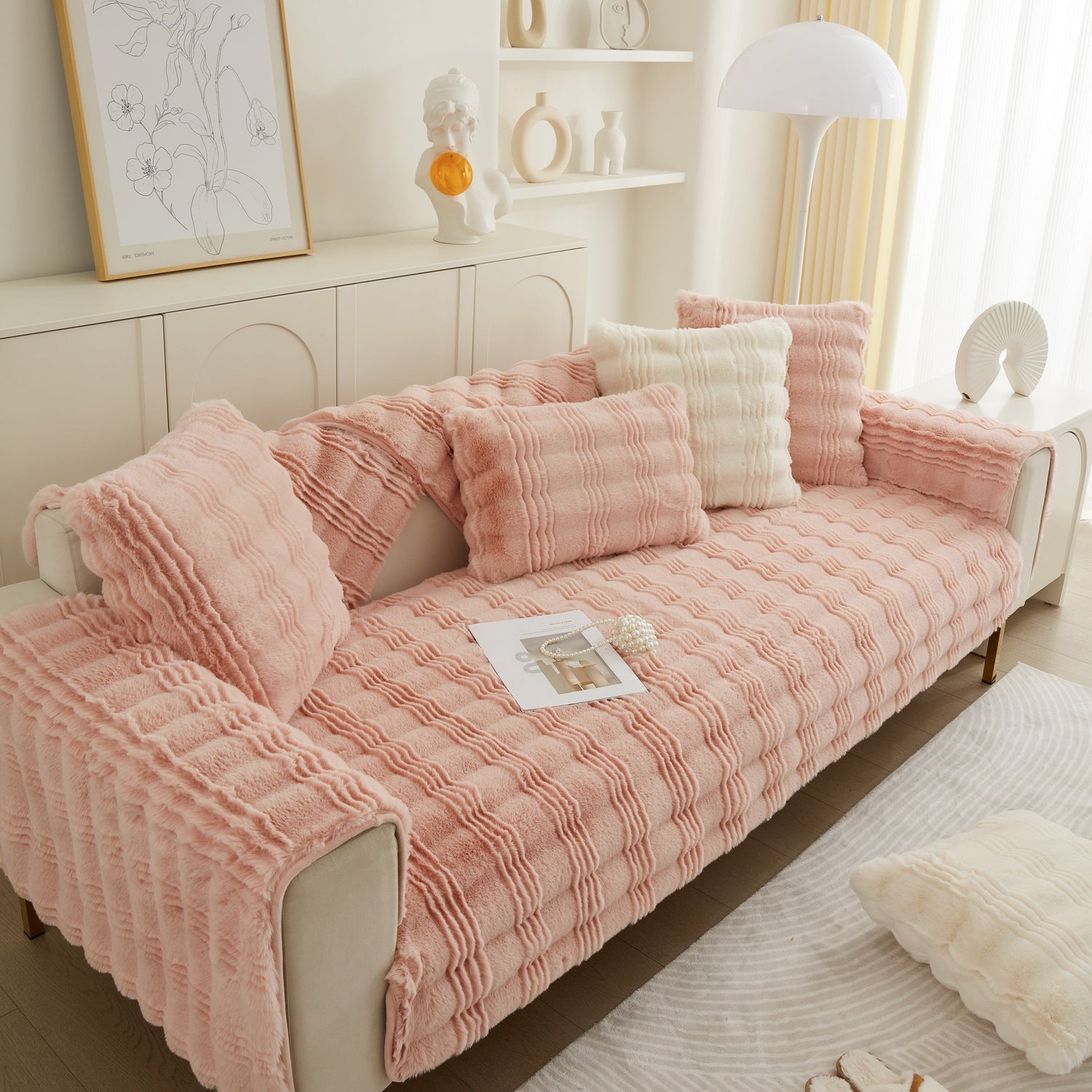 - High-quality materials: This faux rabbit plush sofa cover Made of high-quality rabbit plush (It's faux rabbit fur, not real rabbit fur), the delicate fluff is firm, not easy to depilate, and anti-static. Soft to the touch, every touch is as comfortable as a cloud.