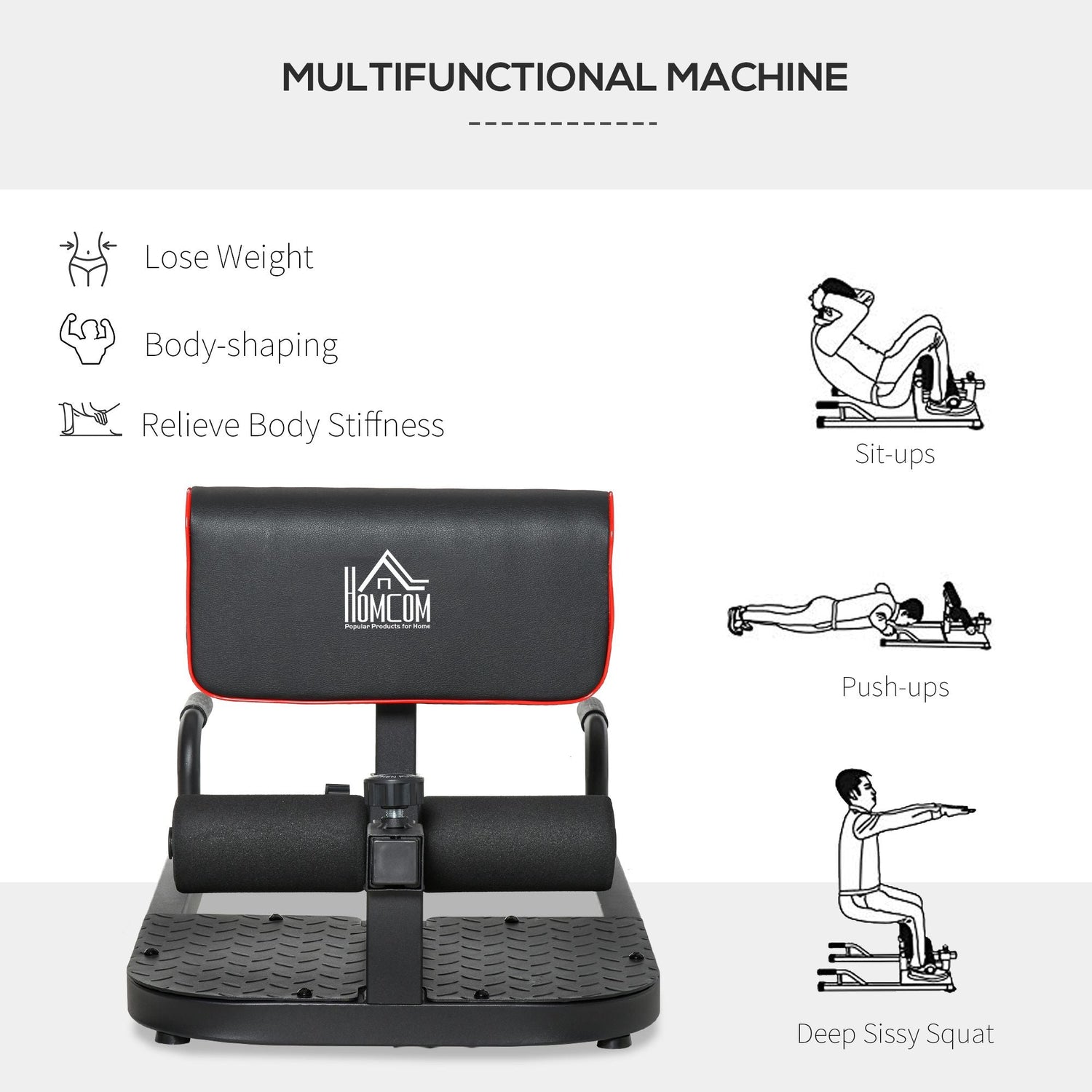 Multiple Uses: This 3-in-1 sissy squat machine is perfect for performing squats, sit-ups, and push-ups, to work your chest, arms, core, quads, glutes, and calves for training and conditioning.