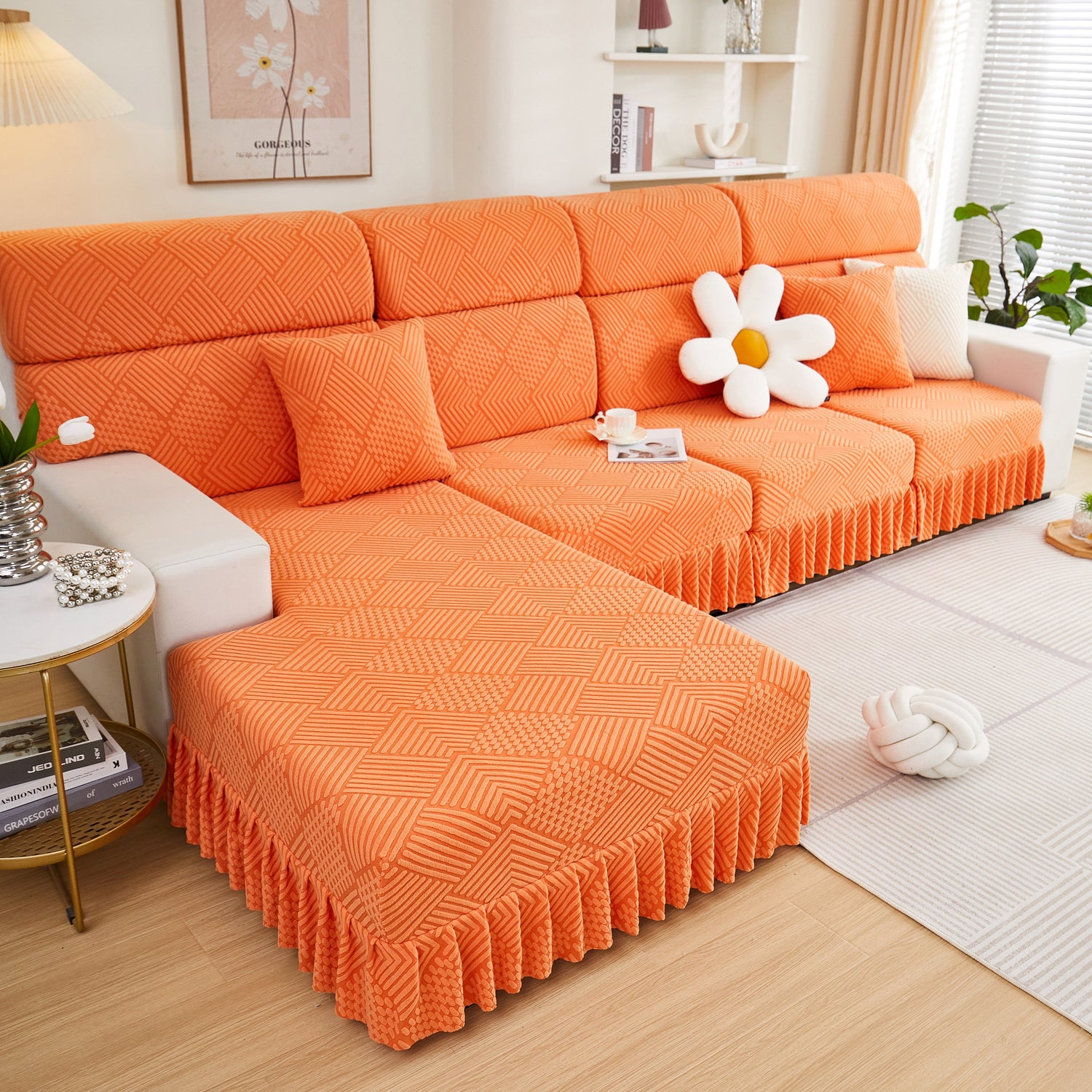 Transform your old sofa into a brand new one with our Stretch Sofa Covers. These covers fit 1/2/3/4/L seater sofas and couches and come with a stylish skirt, adding a touch of elegance to your furniture. Say goodbye to stains, wear and tear, and hello to a refreshed and modern look for your living room.