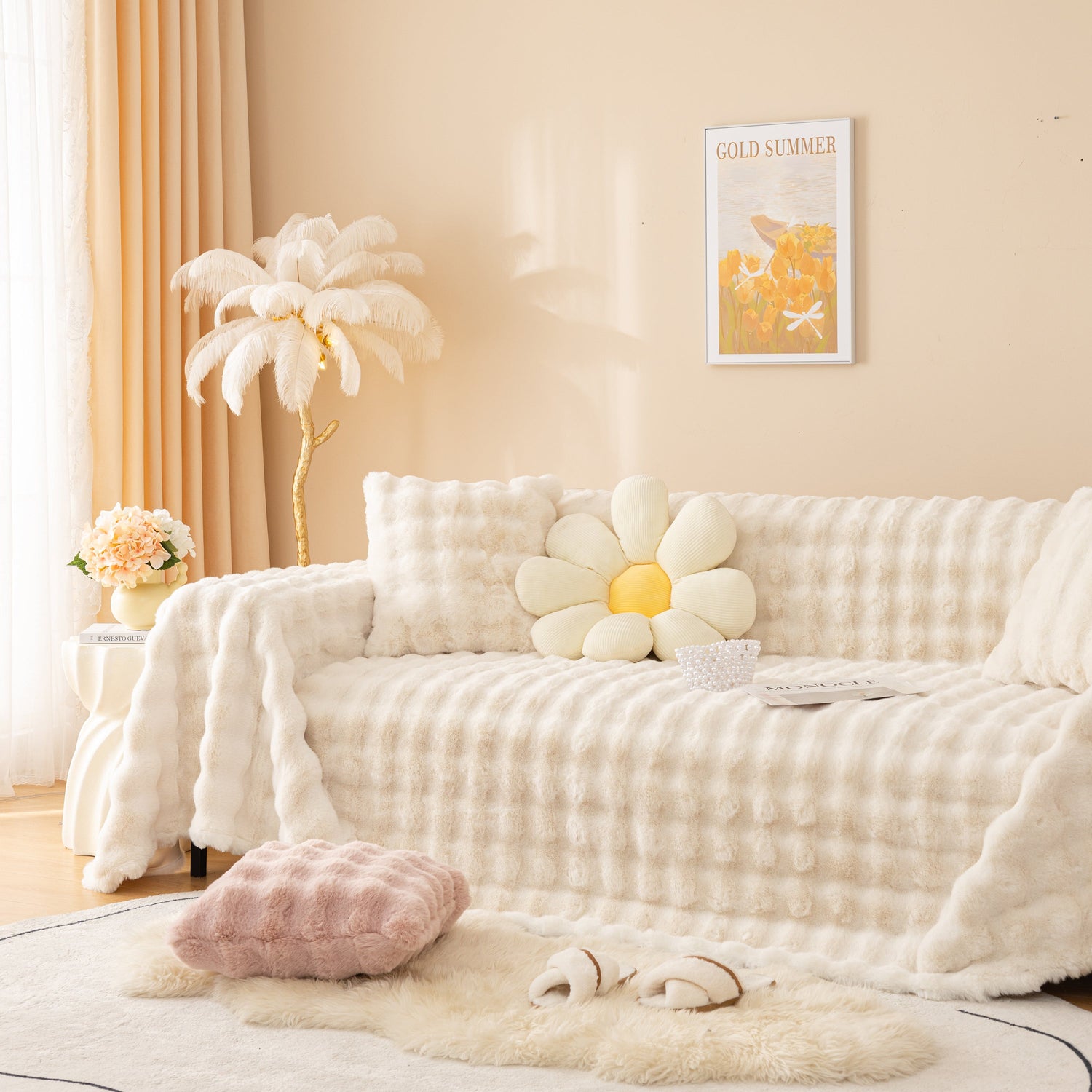 • Quality Material: Made of super soft high quality faux rabbit fur, this sofa throw cover has a fluffy hand feel yet remains highly durable.