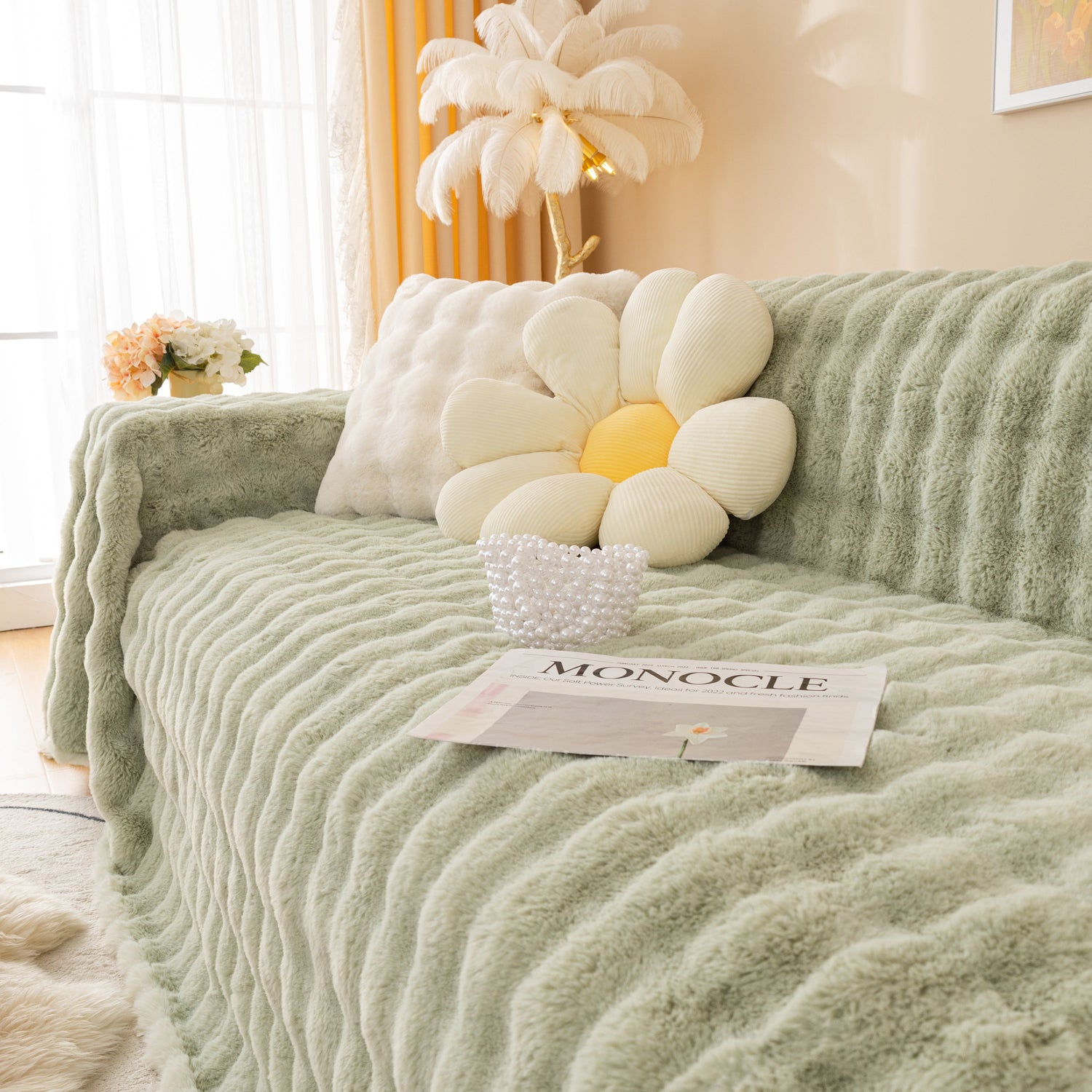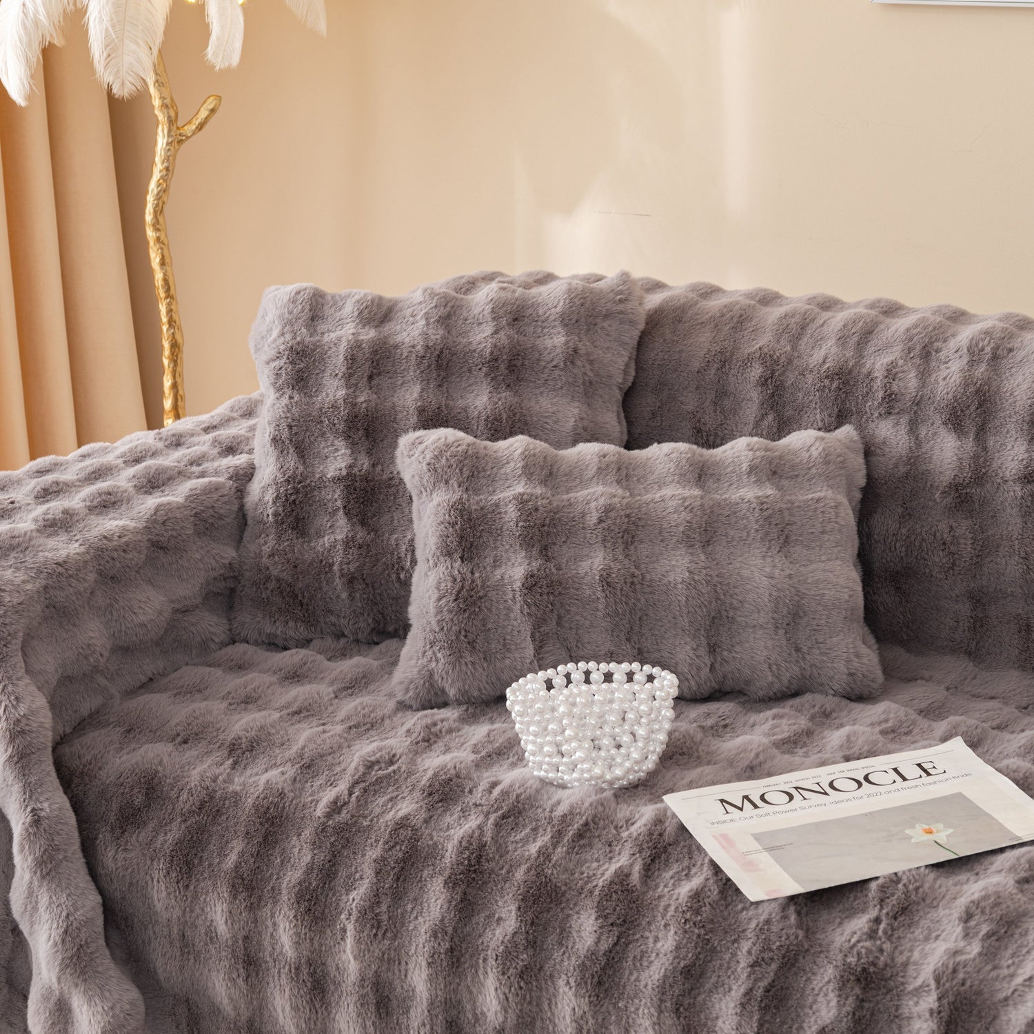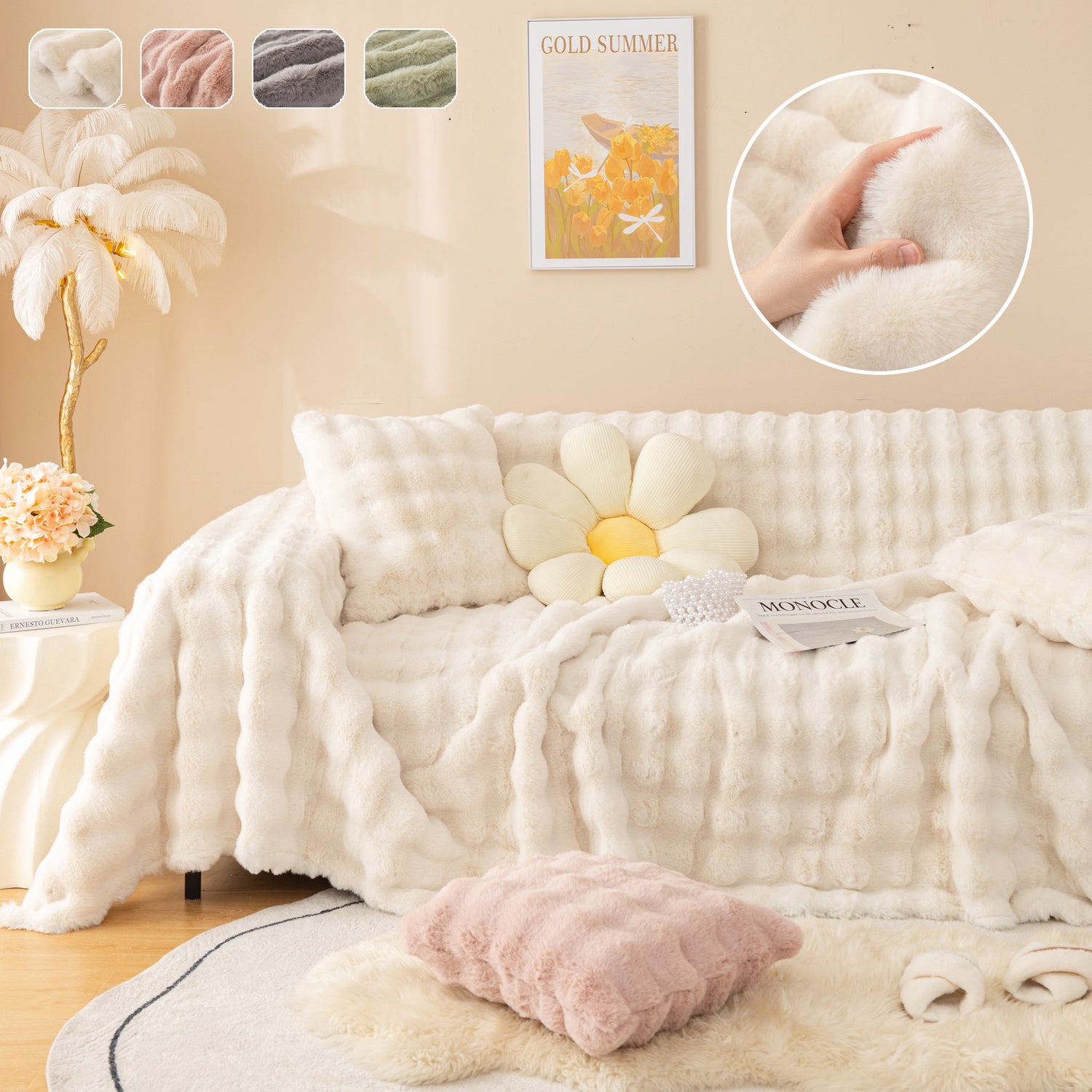 Super Soft Fluffy Faux Rabbit Fur Sofa Throw Blanket, Couch Cover Blanket for Couches Living Room Furniture Throw