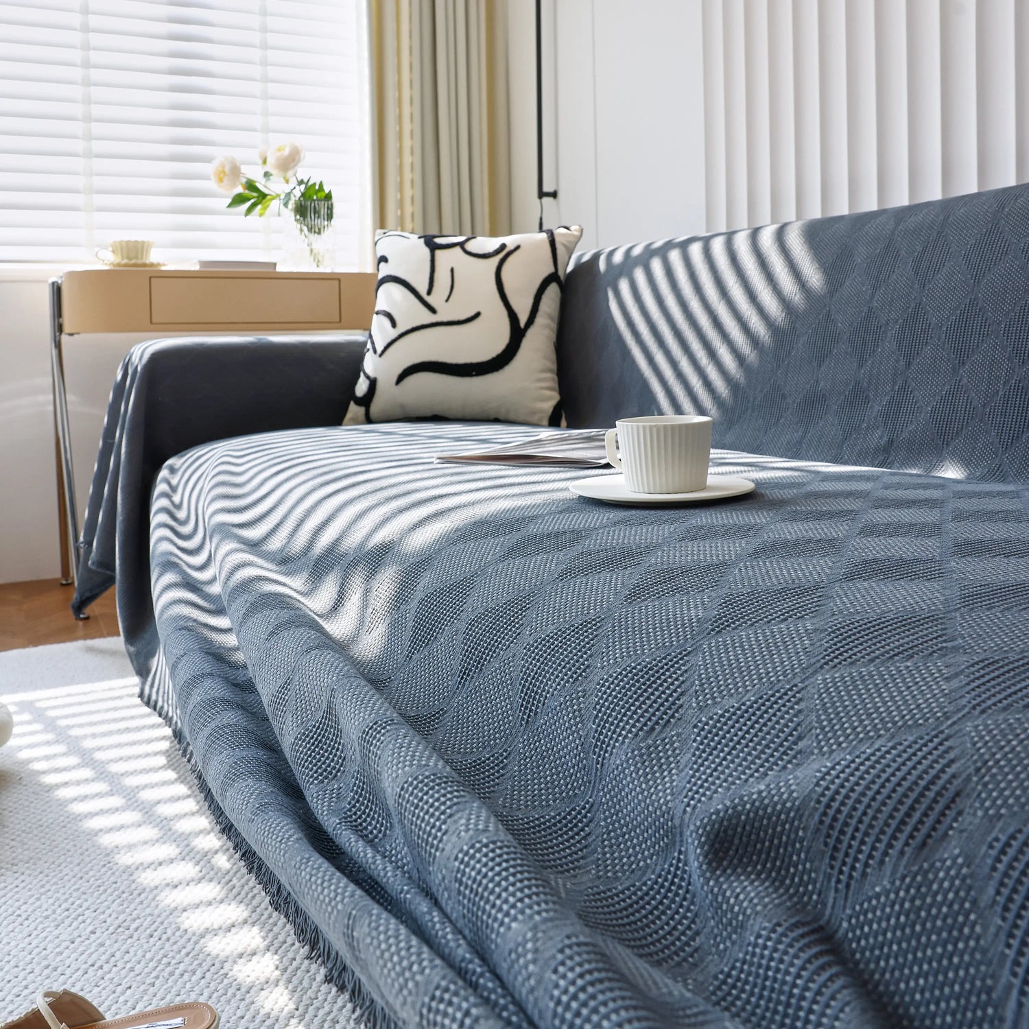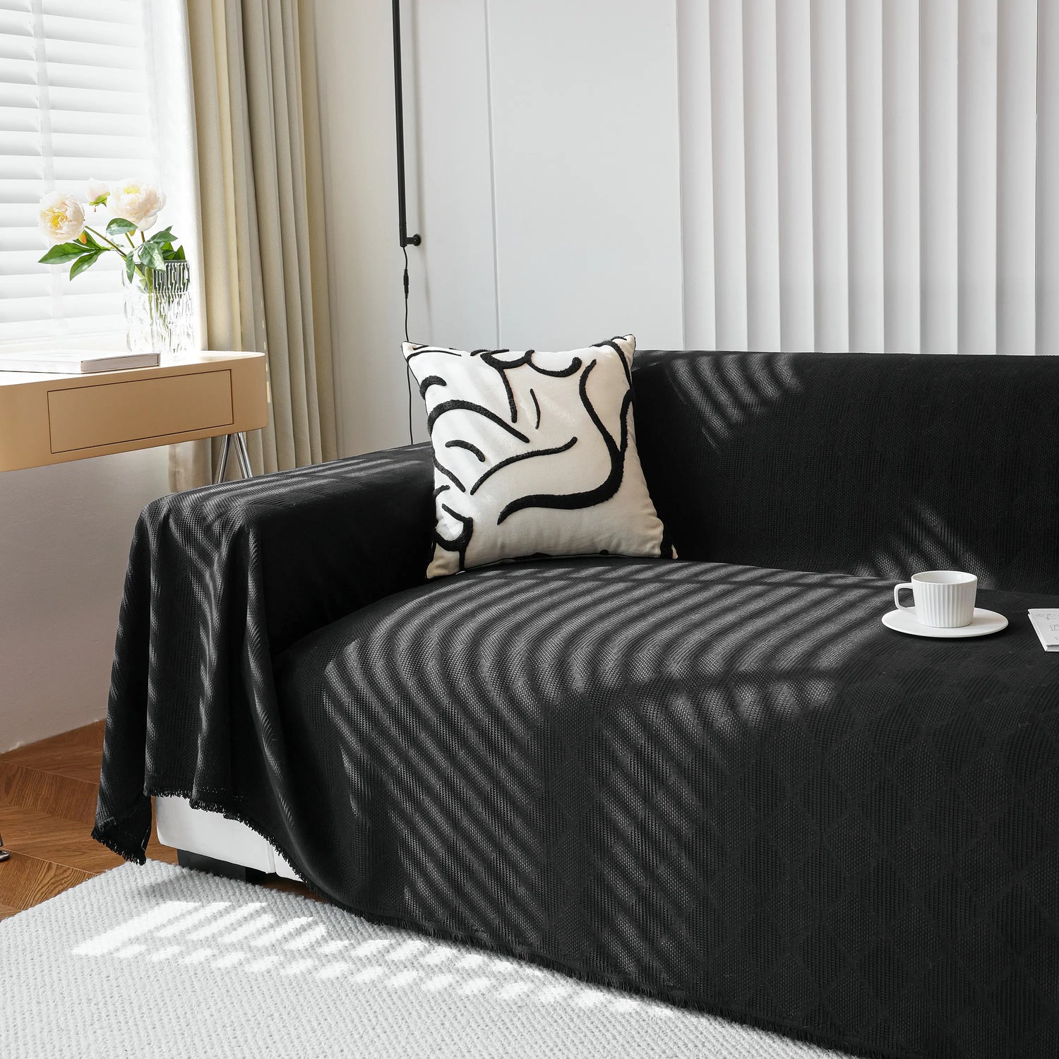 Textured Chenille Sofa Cover Throw, Soft Washable Couch Blanket Protector for Pets