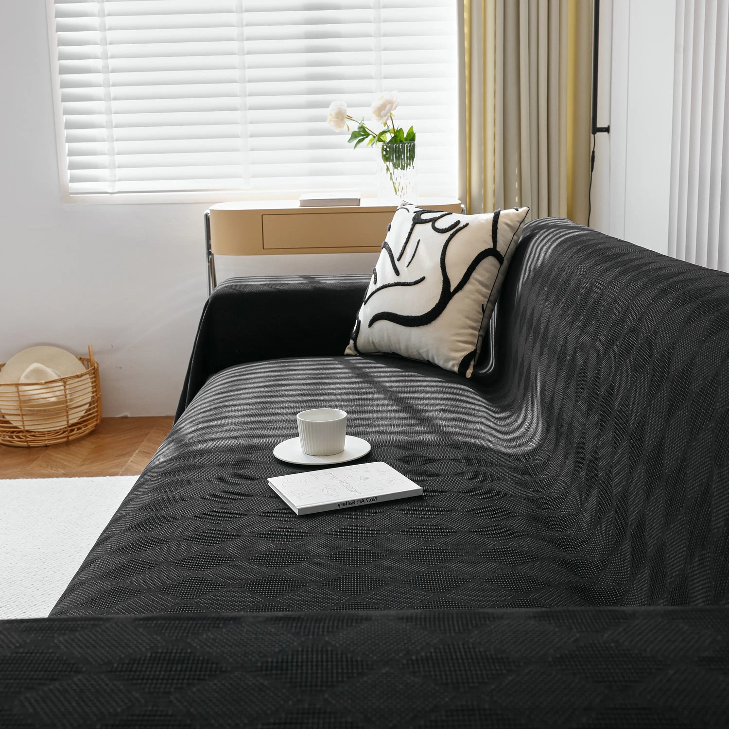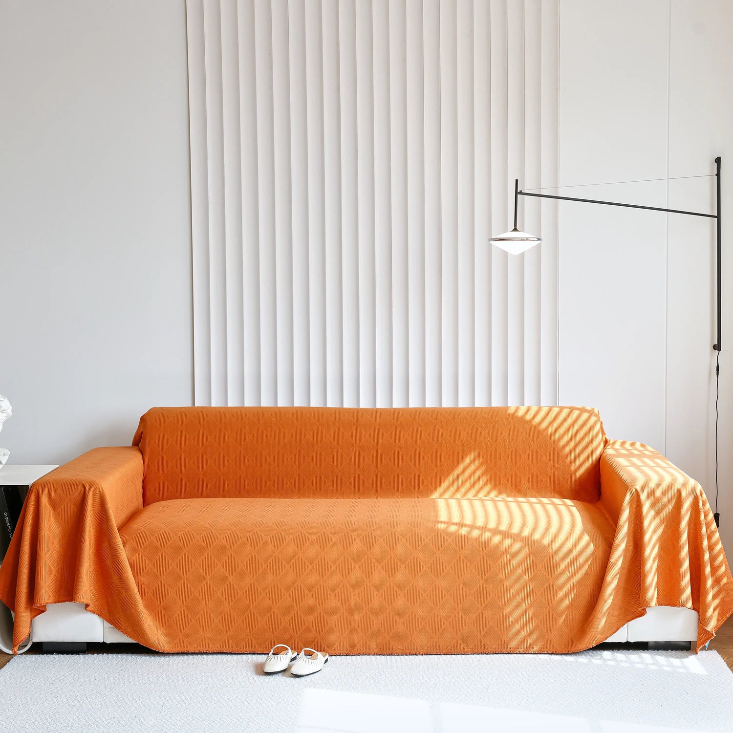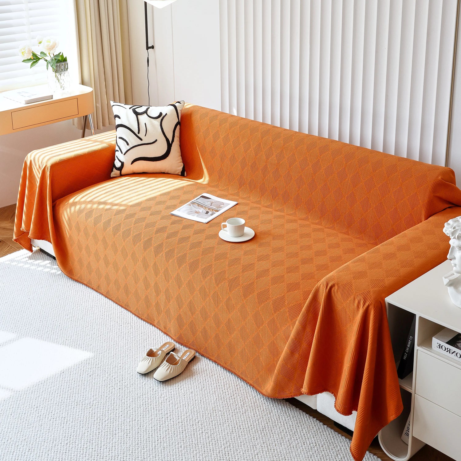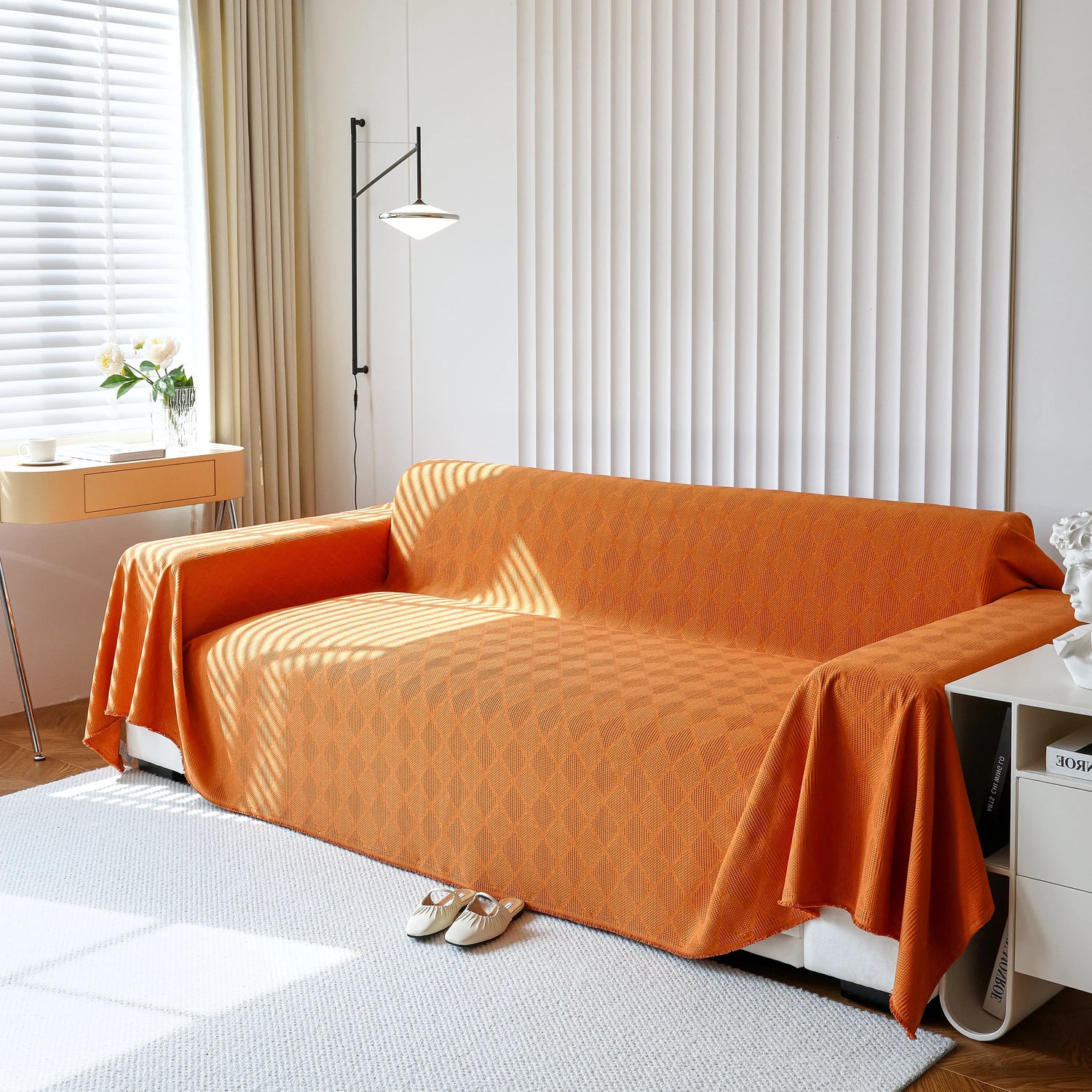 This chenille sofa cover throw features a thick, soft texture with a structured diamond pattern that adds subtle dimension to any living space. Made from durable chenille fabric, it offers a gentle hand feel while maintaining long-lasting performance. The non-stretch, draped design makes it easy to lay over most sofas, including standard two- or three-seaters, sectional couches, and armchairs.