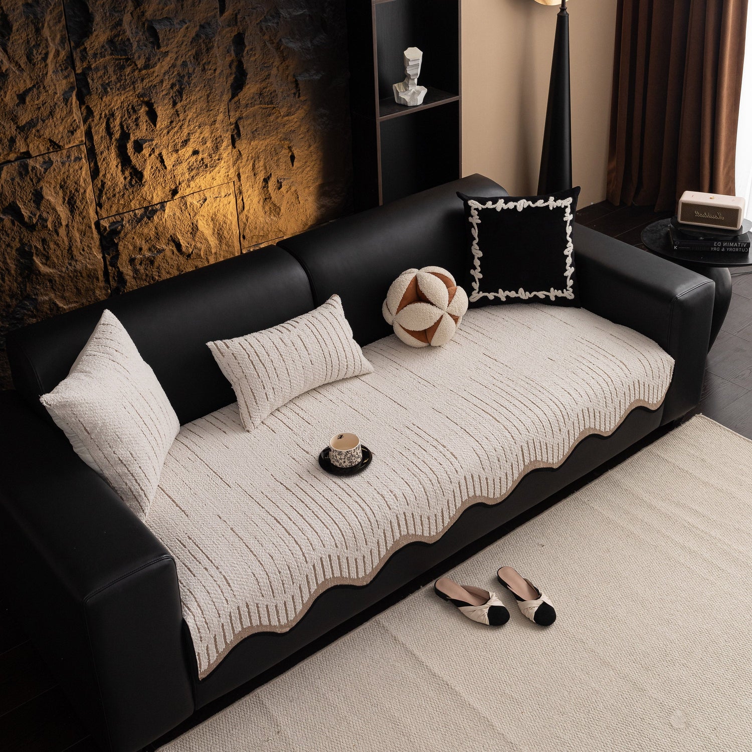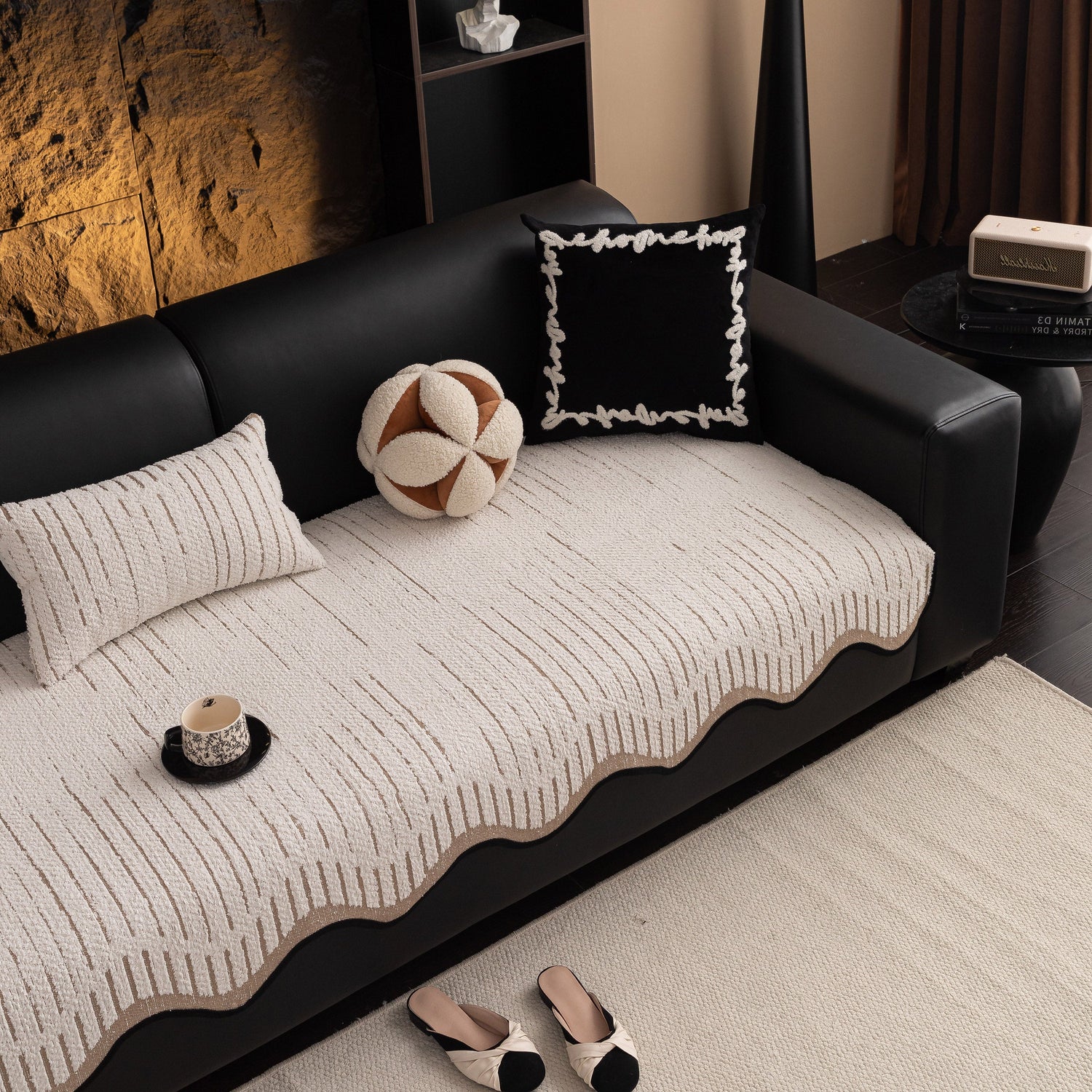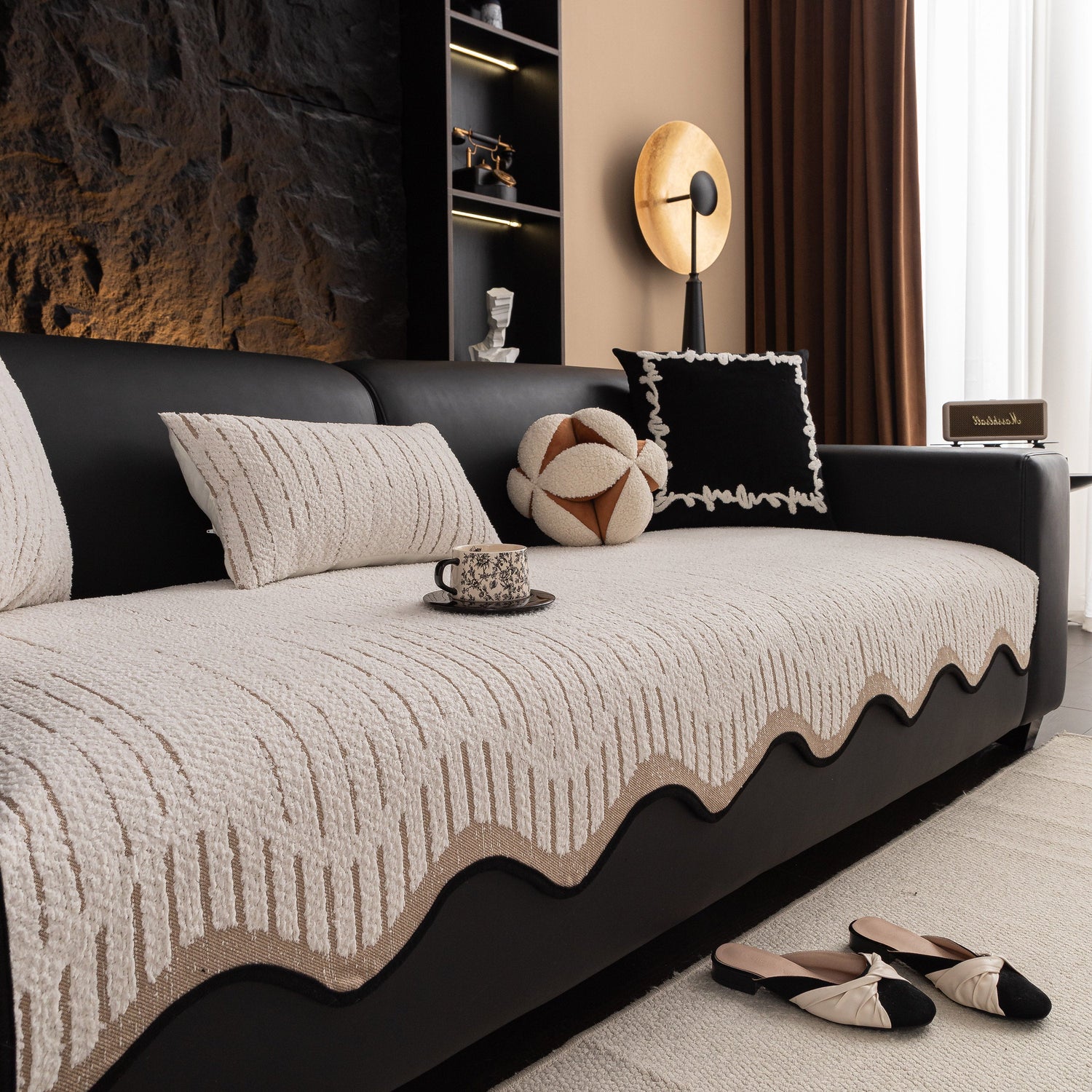 Textured Sofa Seat Cover with Wave Edge – Non-Slip, Washable Couch Throw Protector