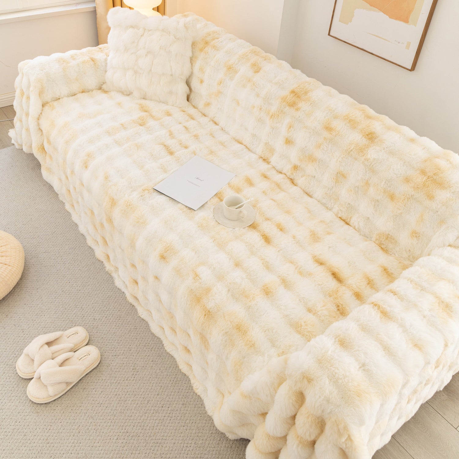 Thick Faux Fur Couch Cover Fluffy Fuzzy Warm Washable Furniture Protector for Kids Pets