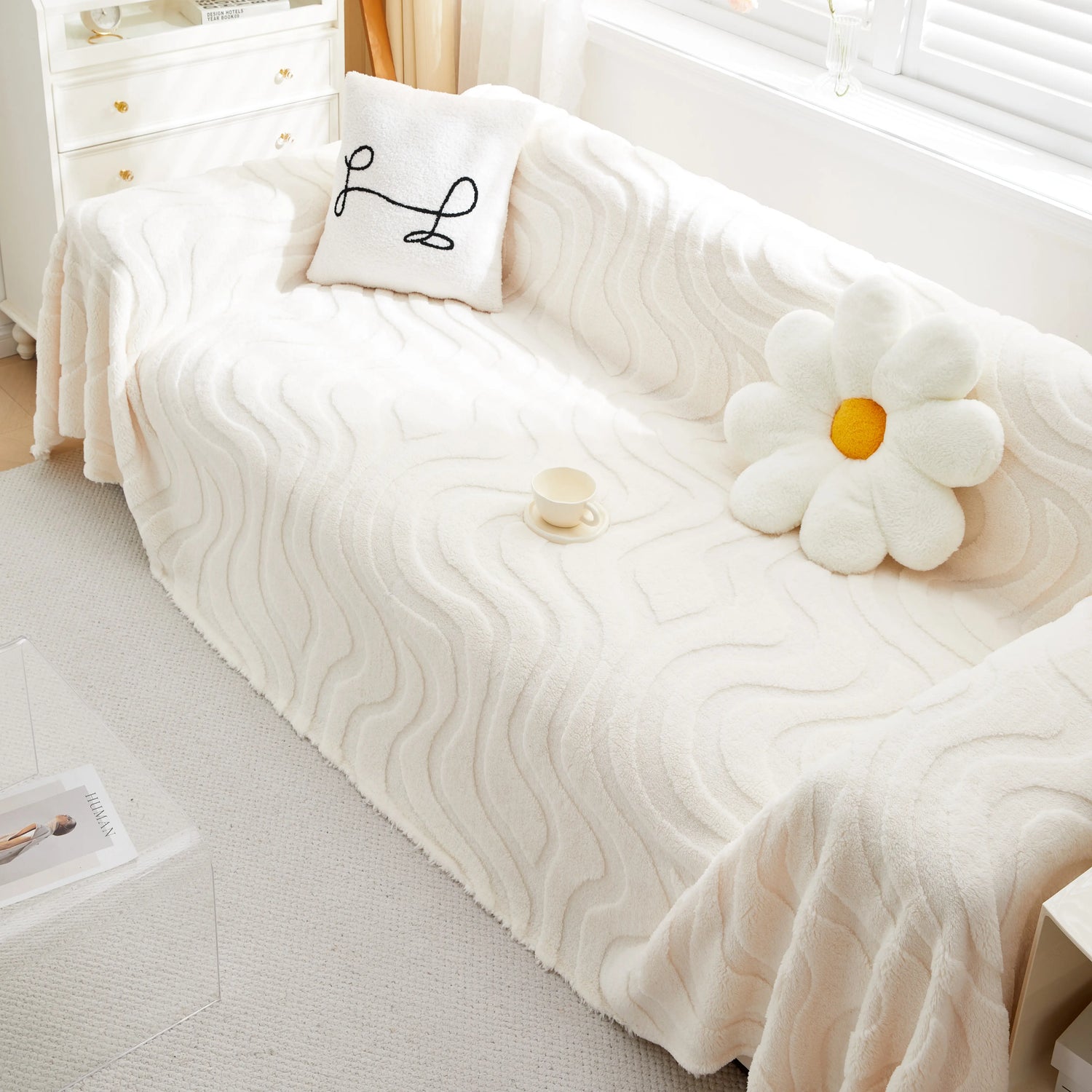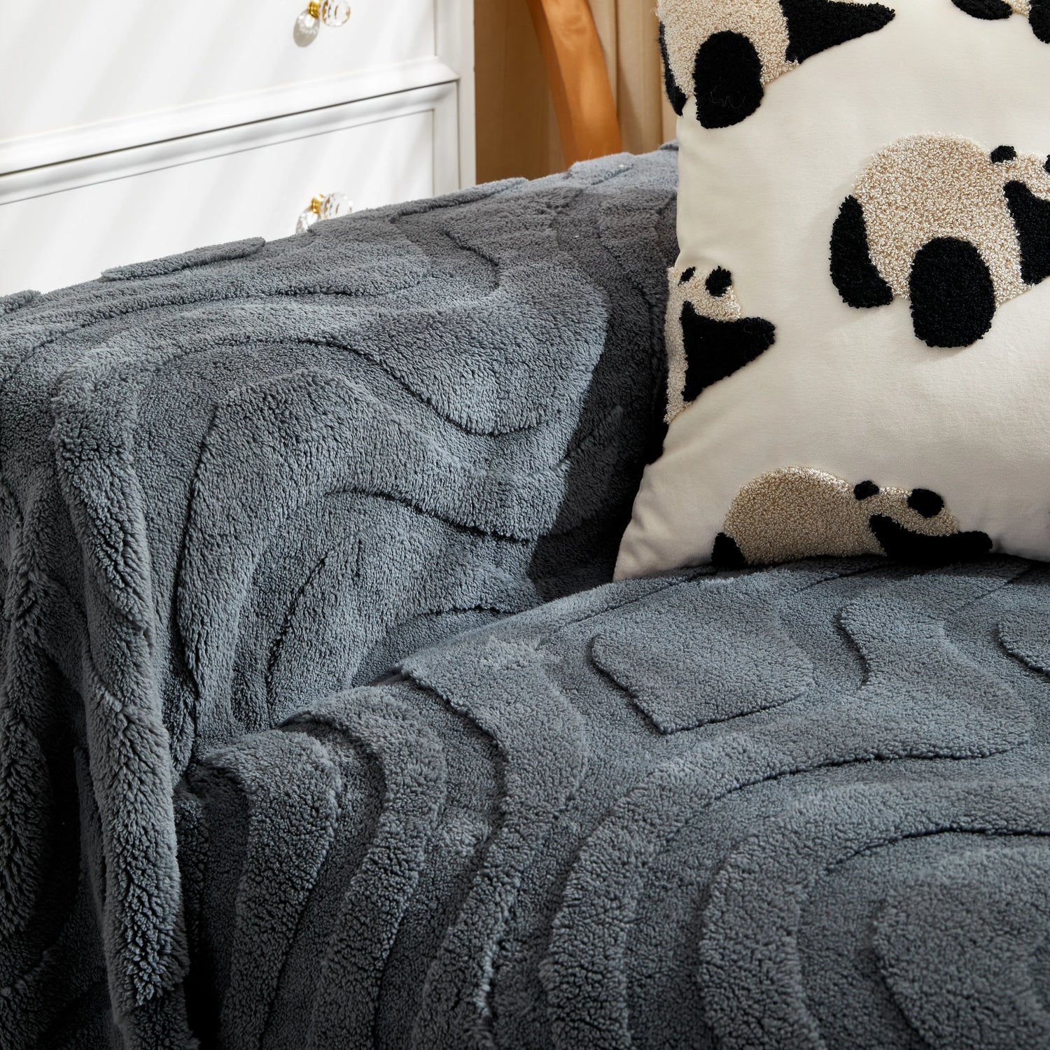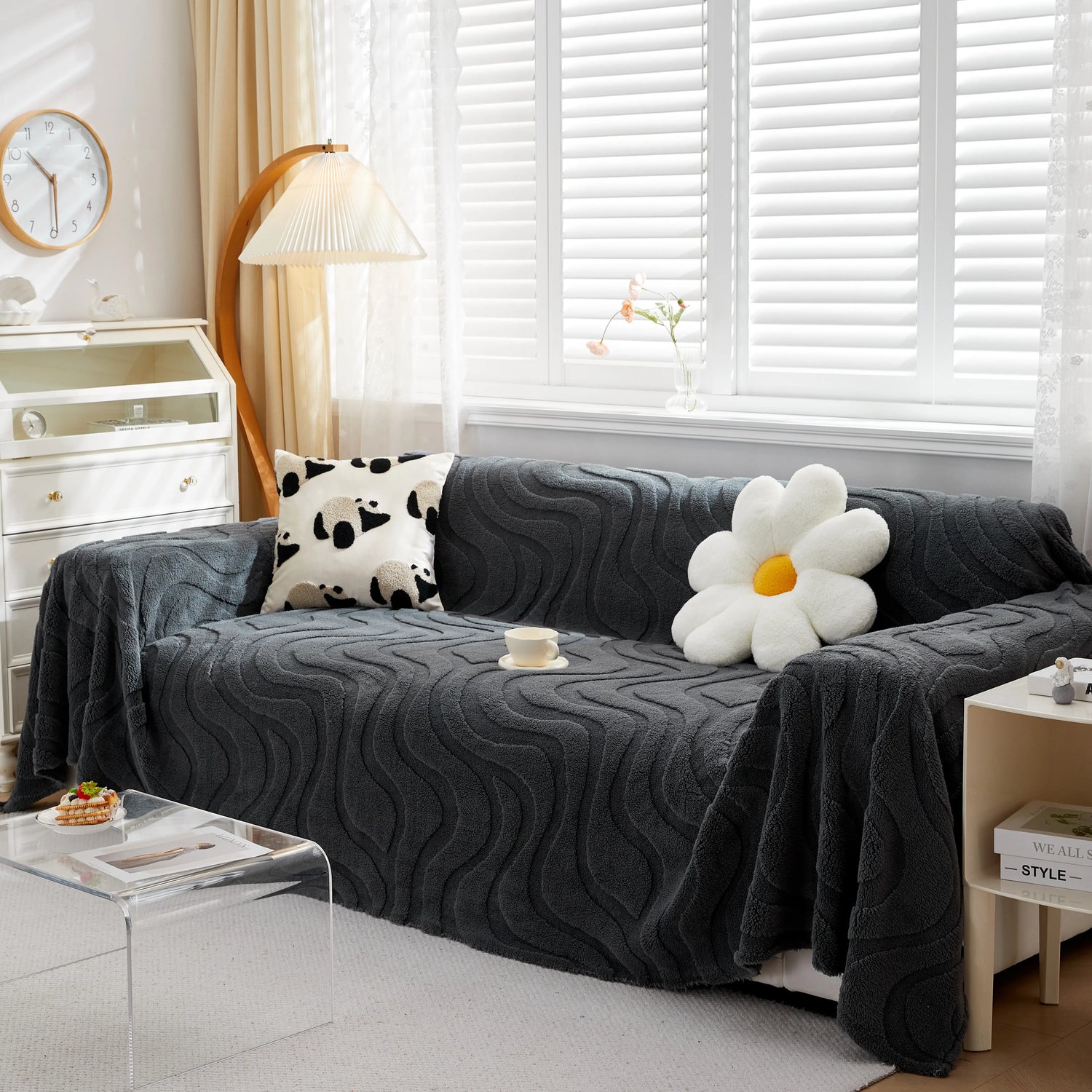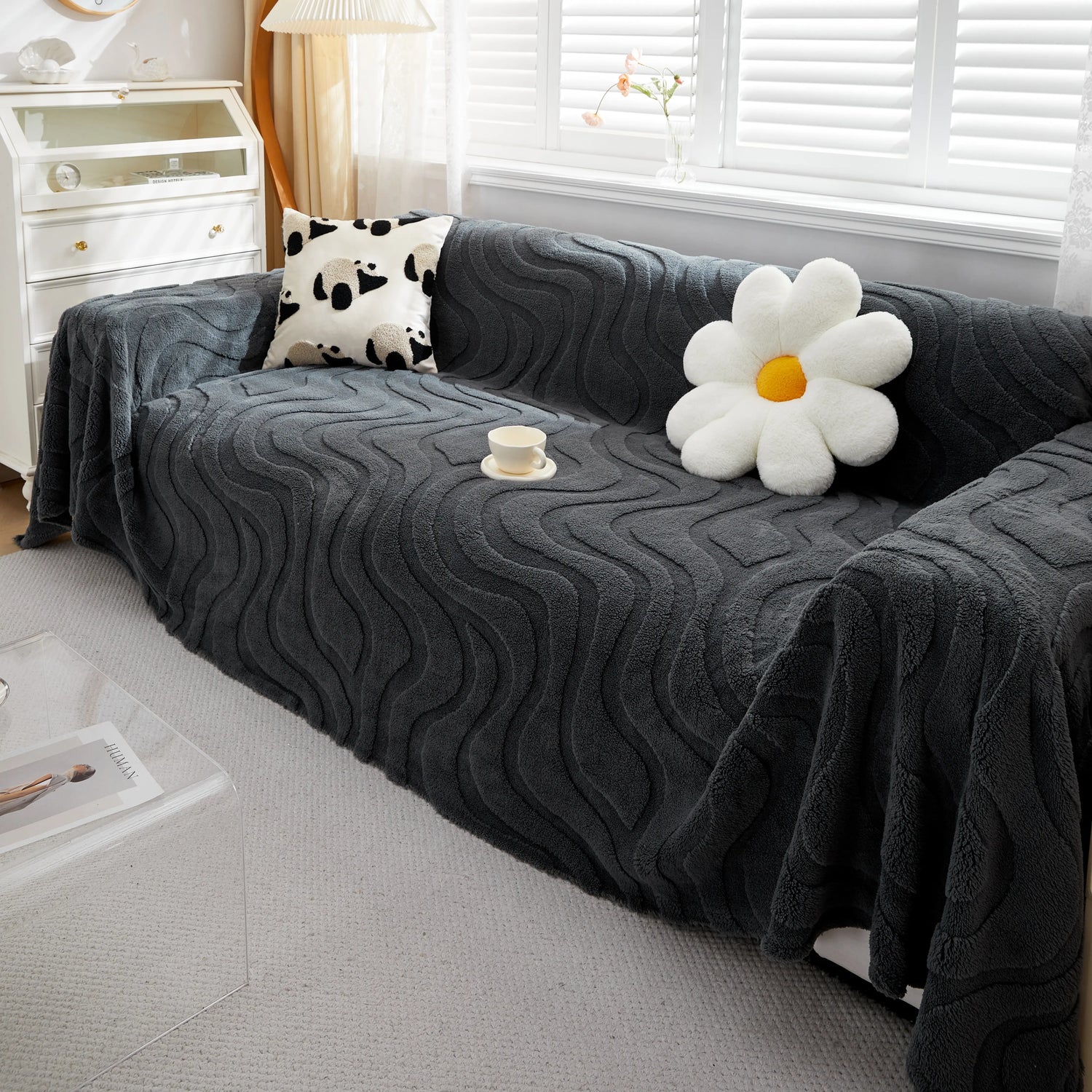 Thick Plush Jacquard Velvet Throw Blanket on Sofa, Sofa Slipcovers and Sectional Sofa Covers