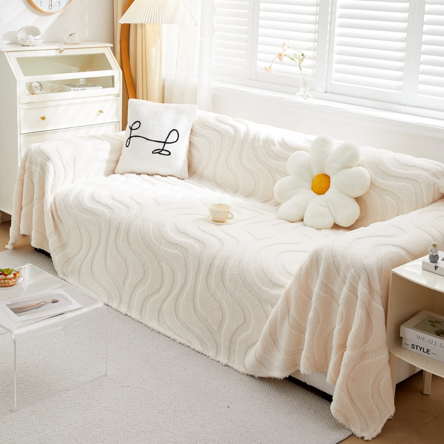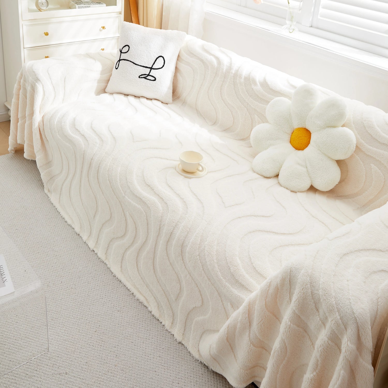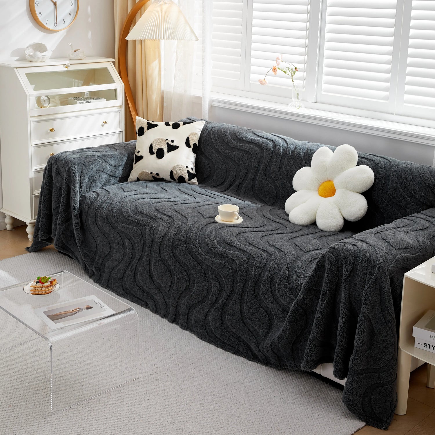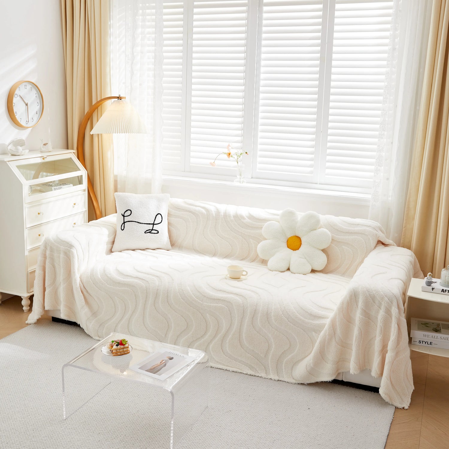 Thick Plush Jacquard Velvet Throw Blanket on Sofa, Sofa Slipcovers and Sectional Sofa Covers