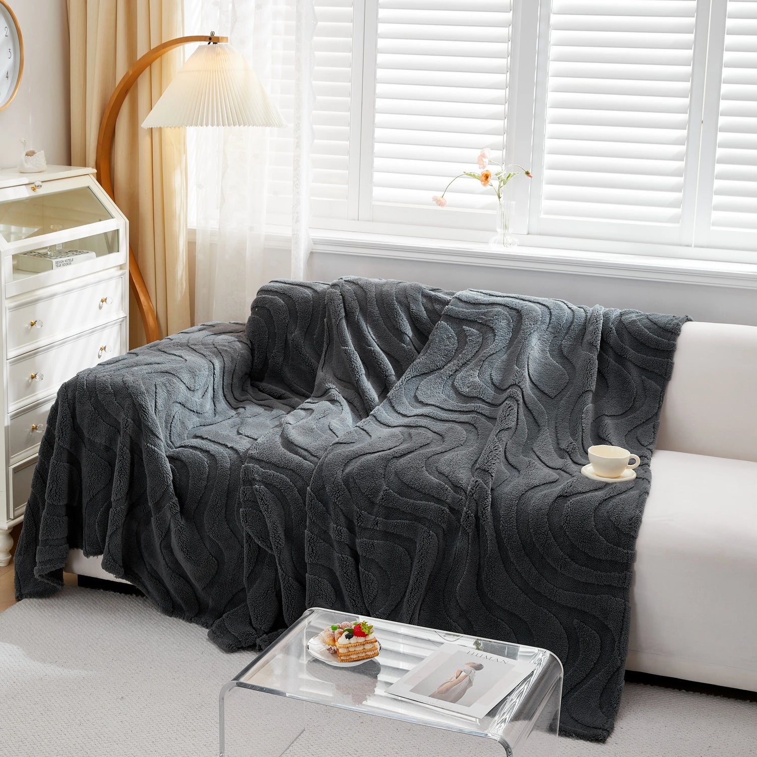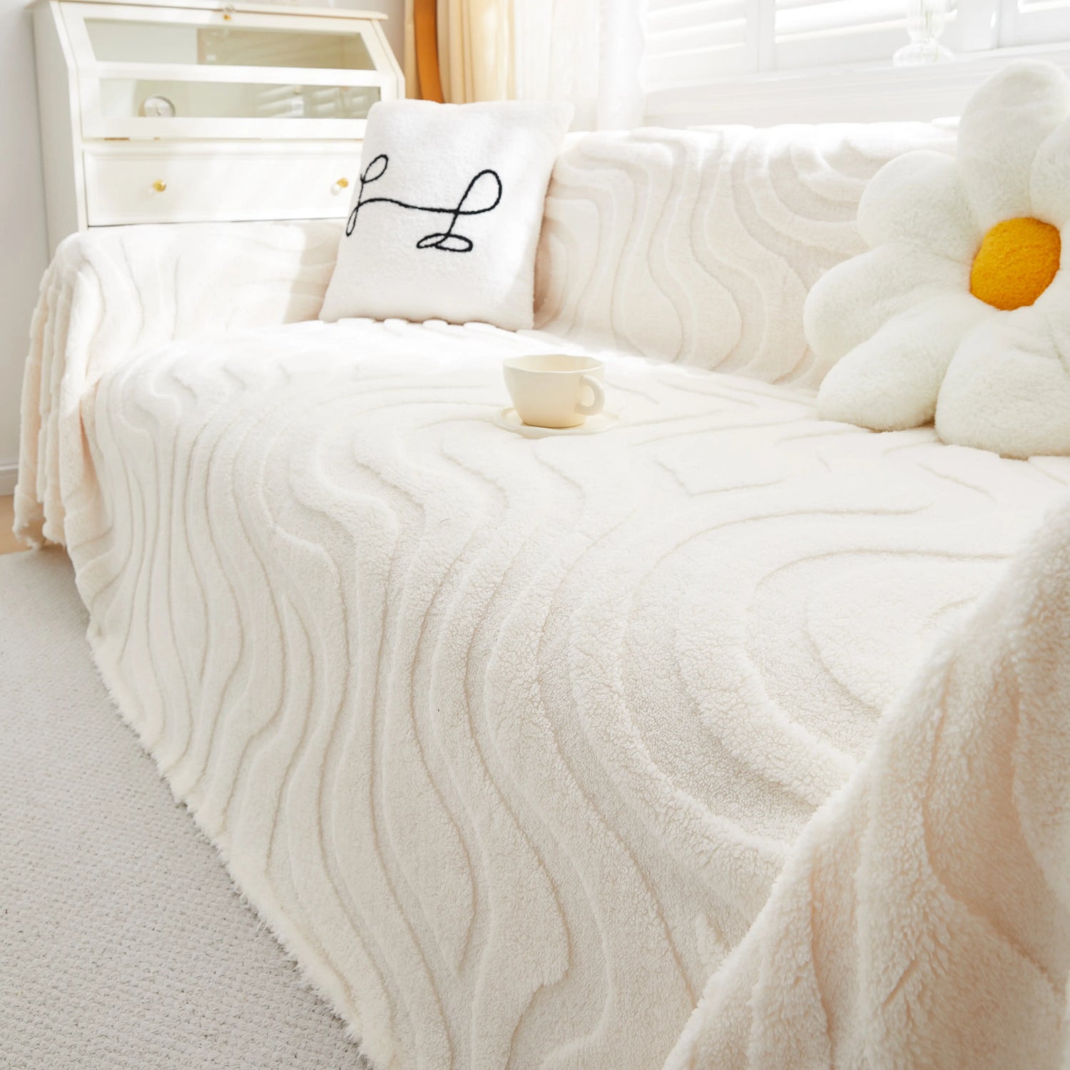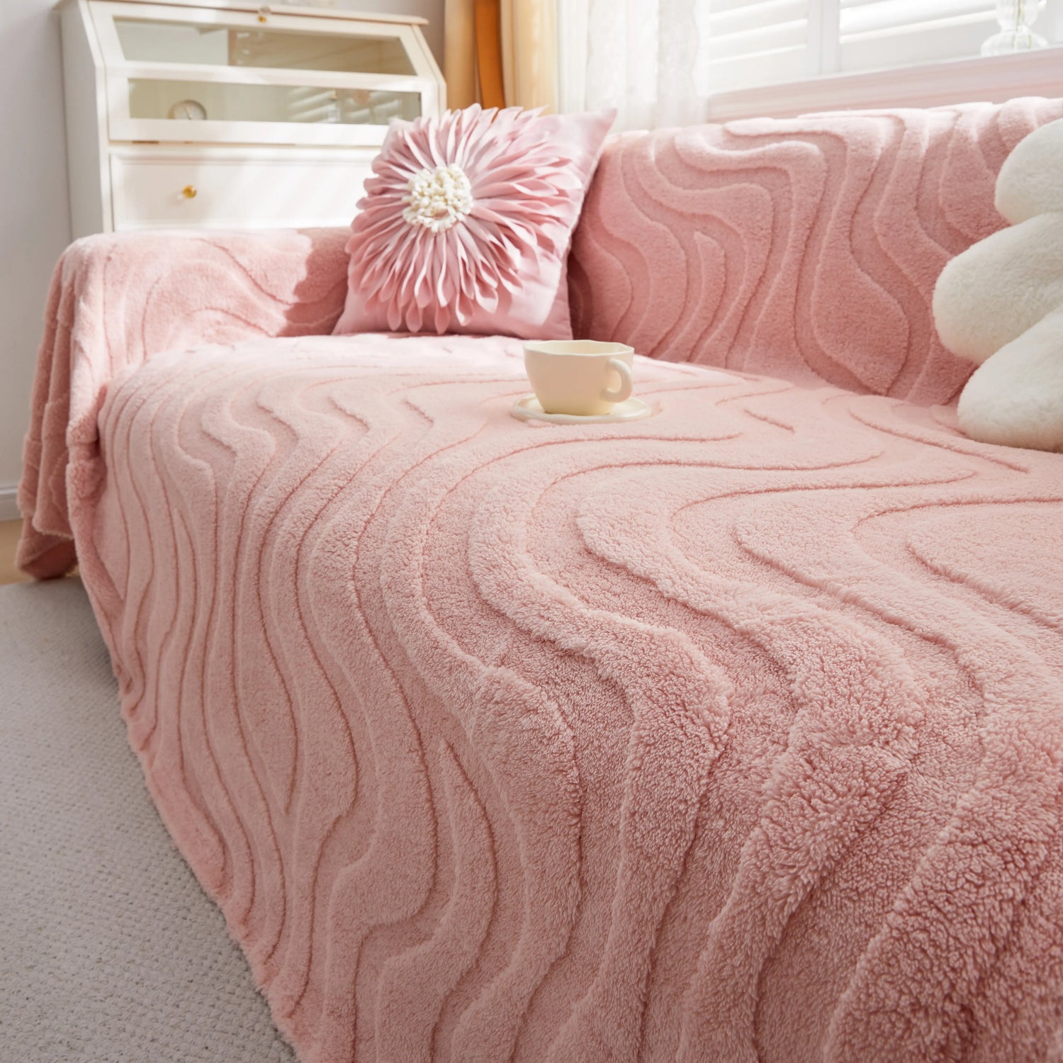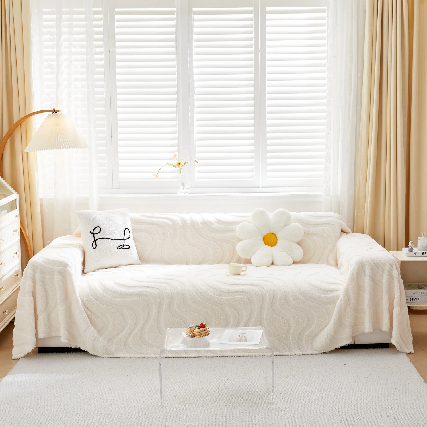 Thick Plush Jacquard Velvet Throw Blanket on Sofa, Sofa Slipcovers and Sectional Sofa Covers
