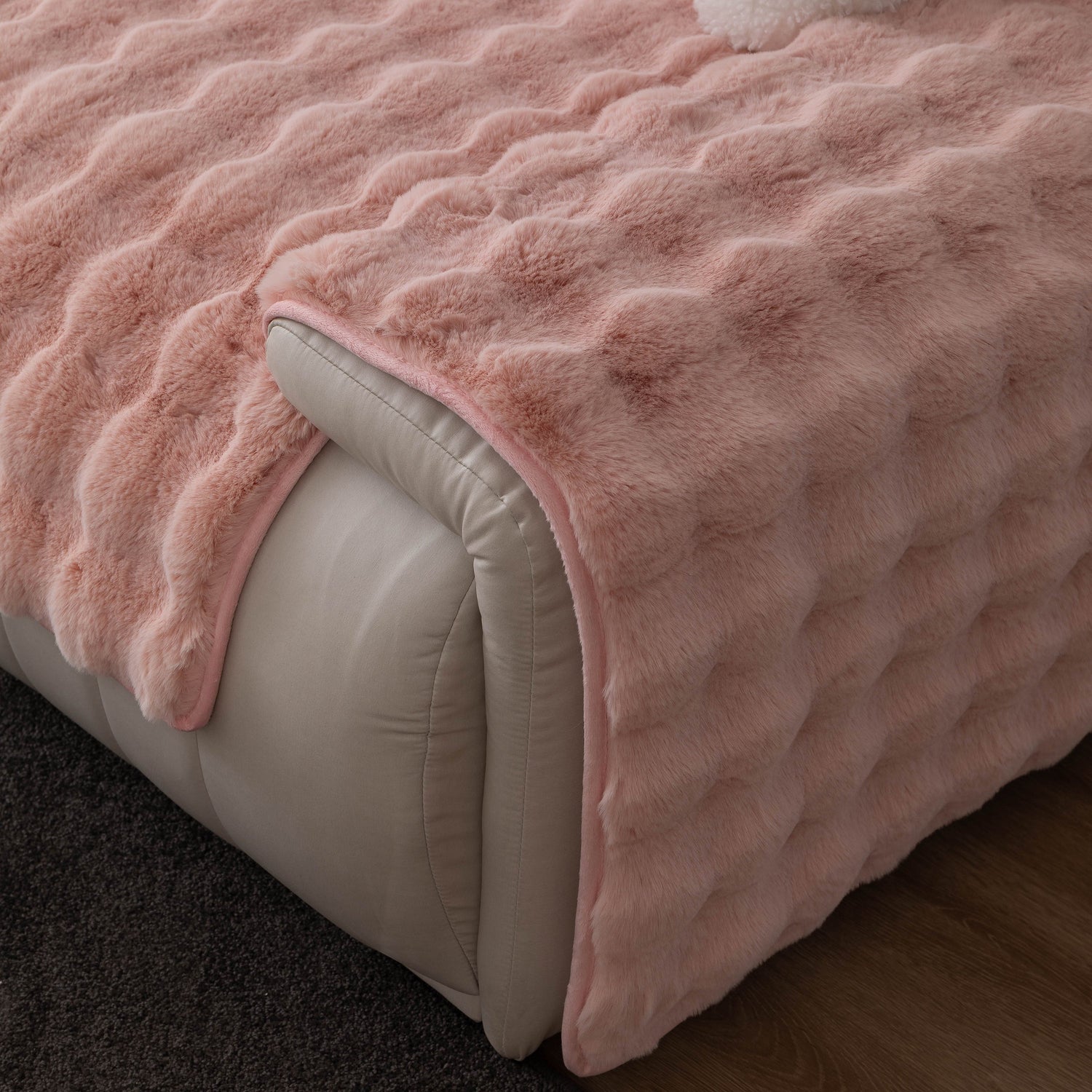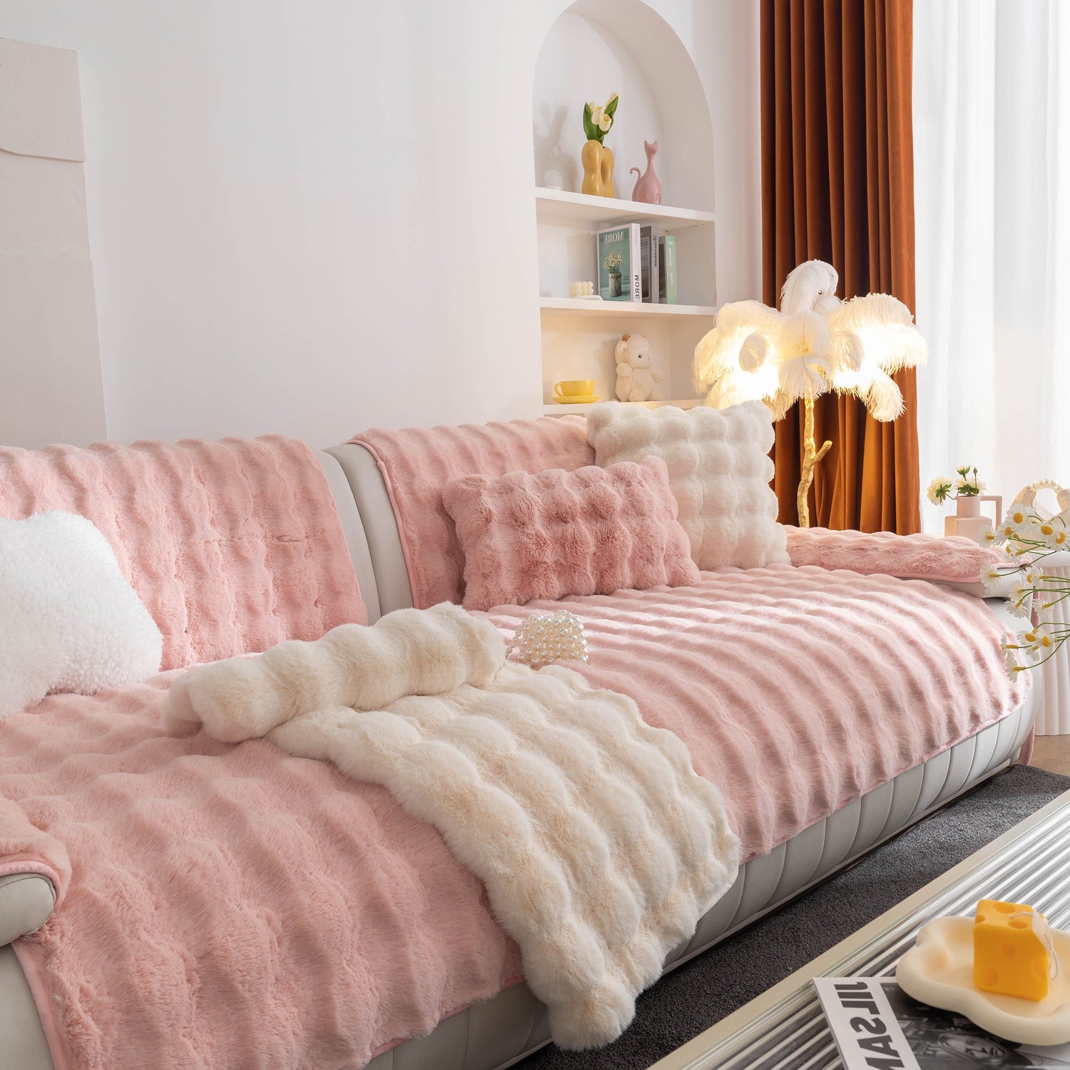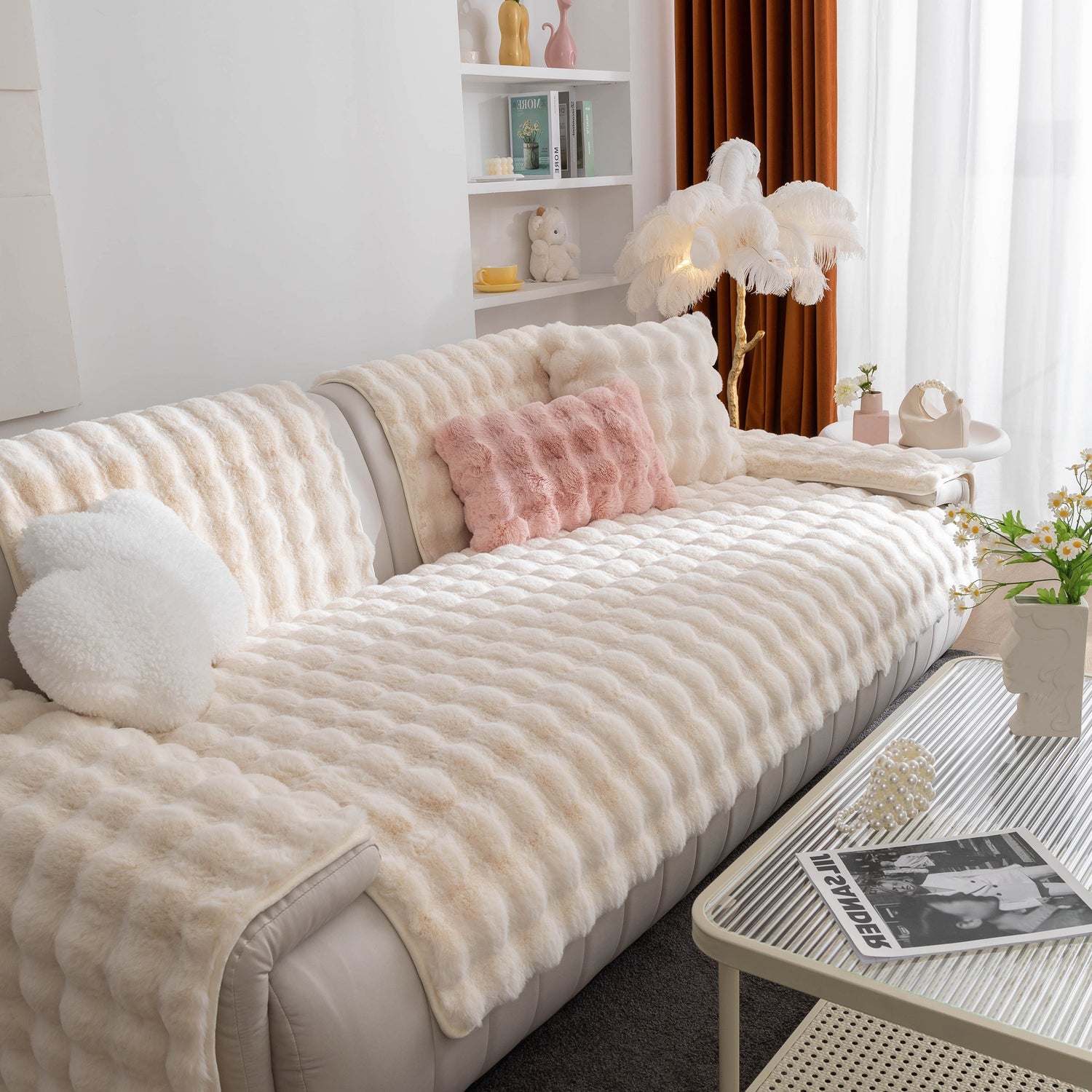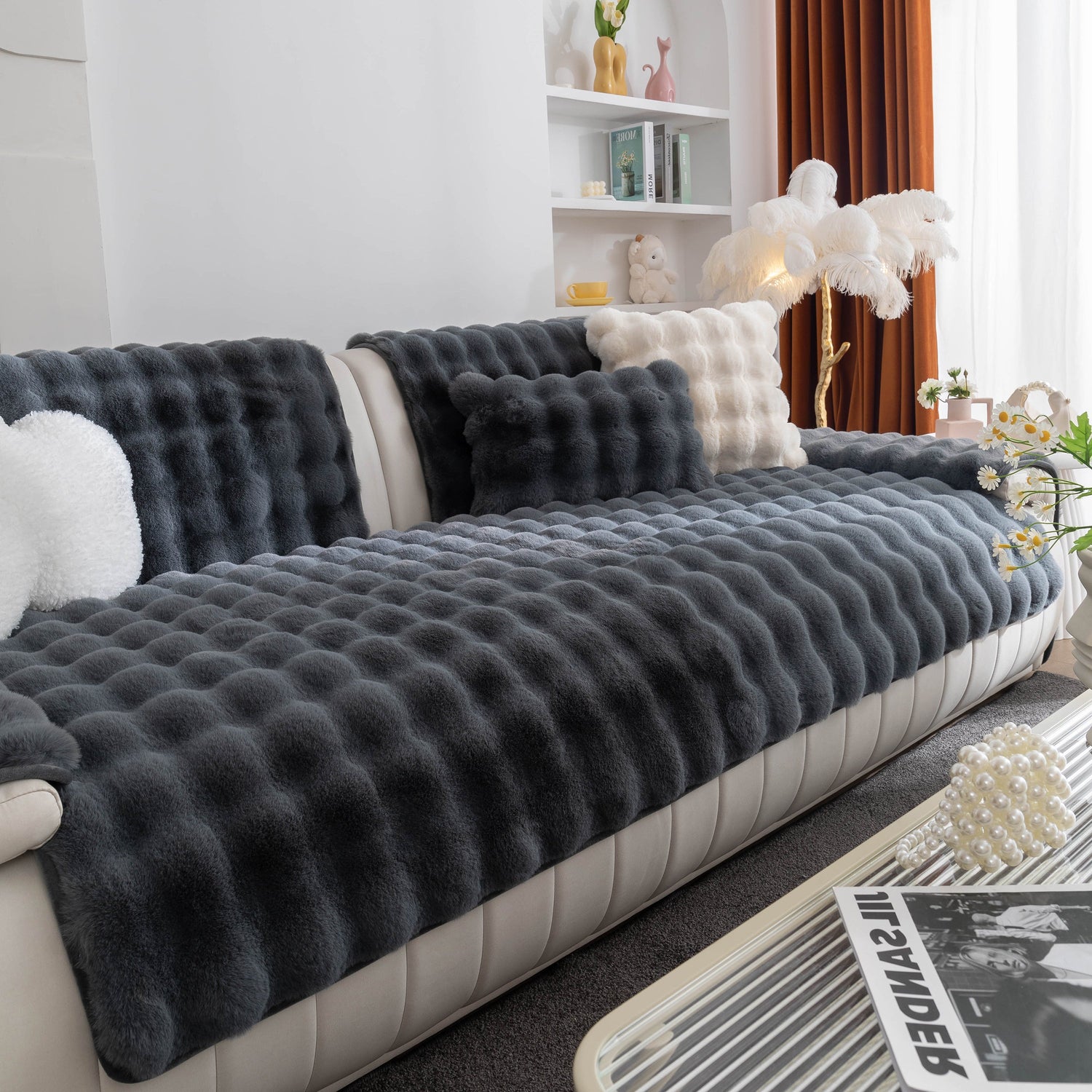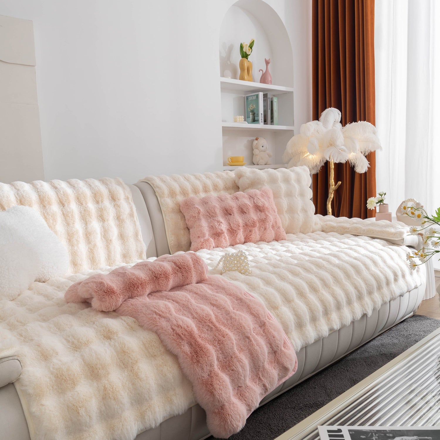 • High-quality materials: This rabbit plush sofa cover Made of high-quality rabbit plush (It's faux rabbit fur, not real rabbit fur), the delicate fluff is firm, not easy to depilate, and anti-static. Soft to the touch, every touch is as comfortable as a cloud.