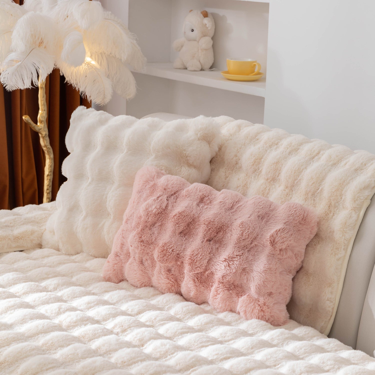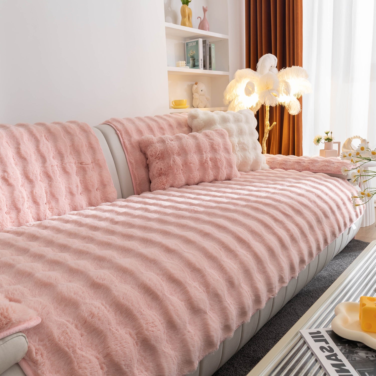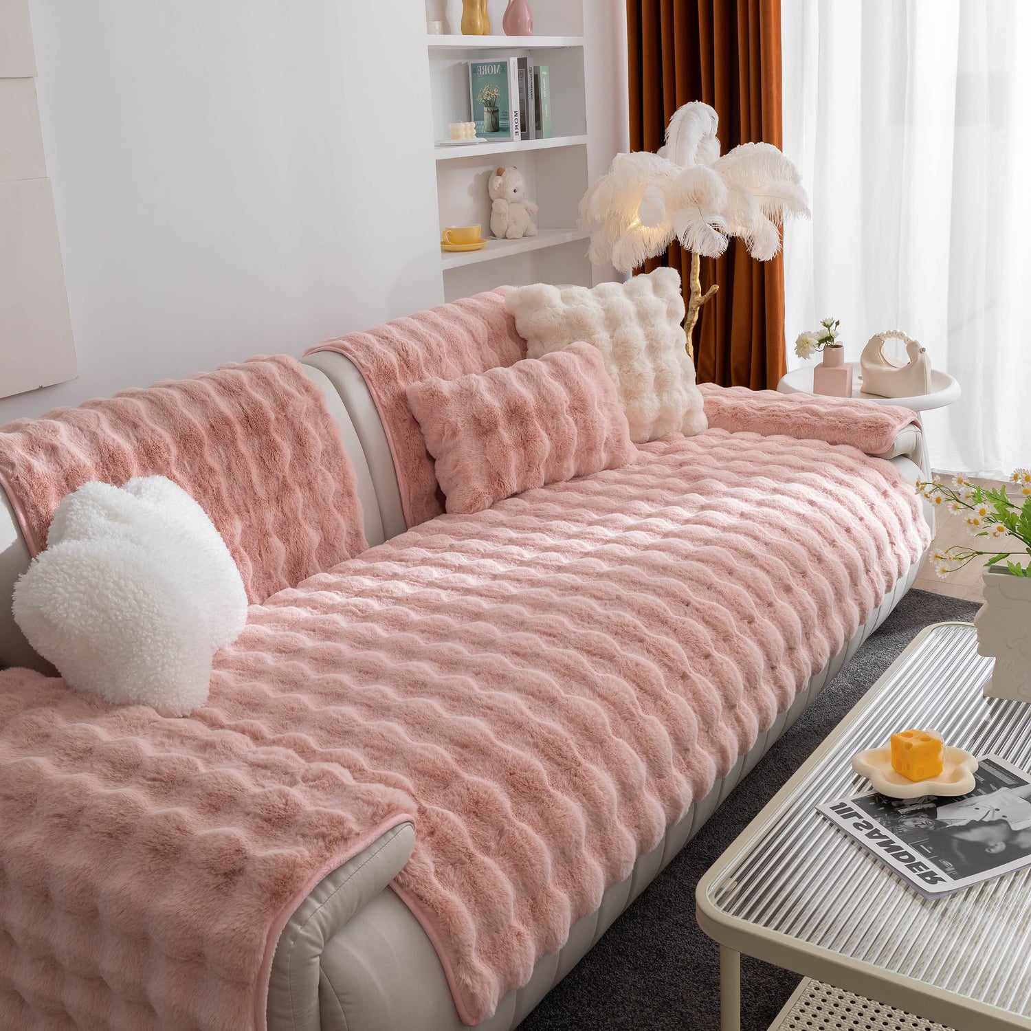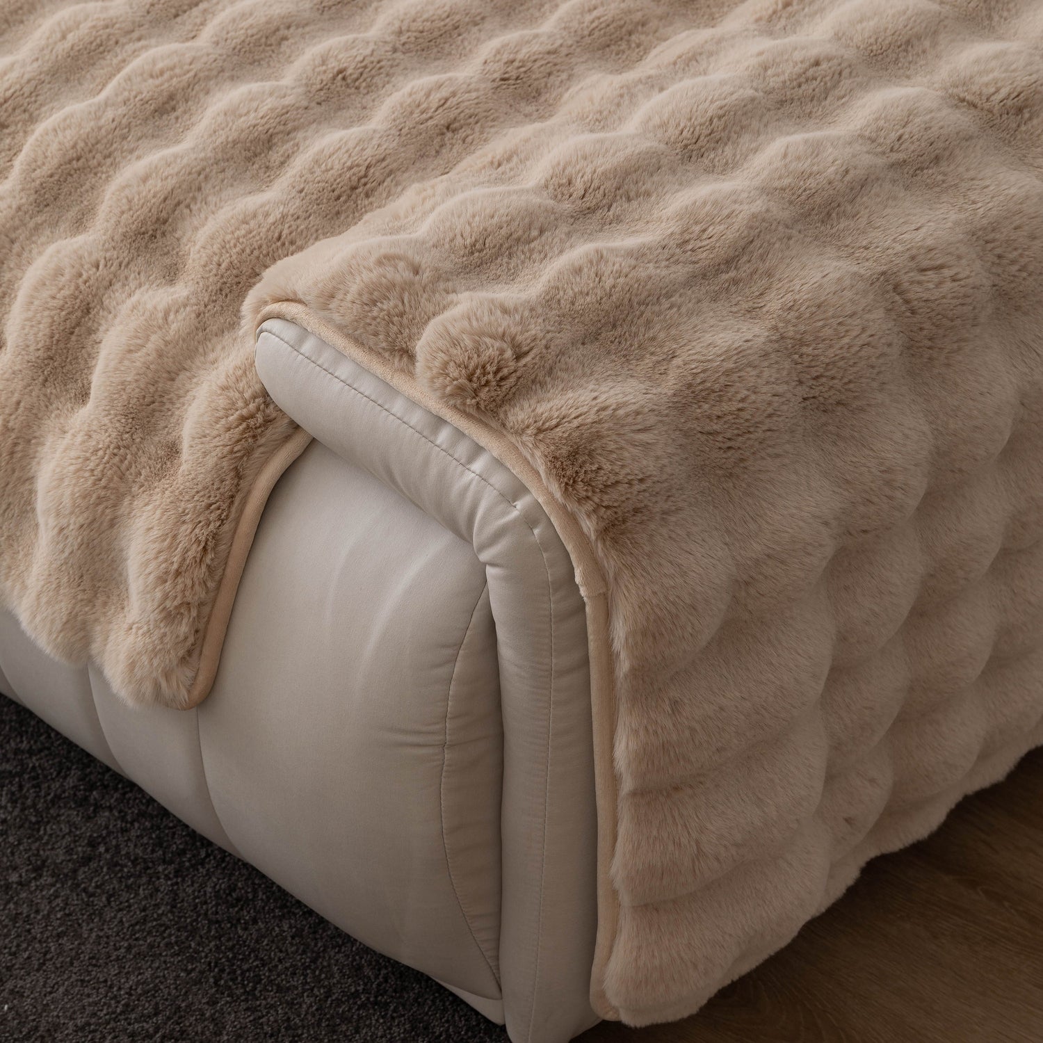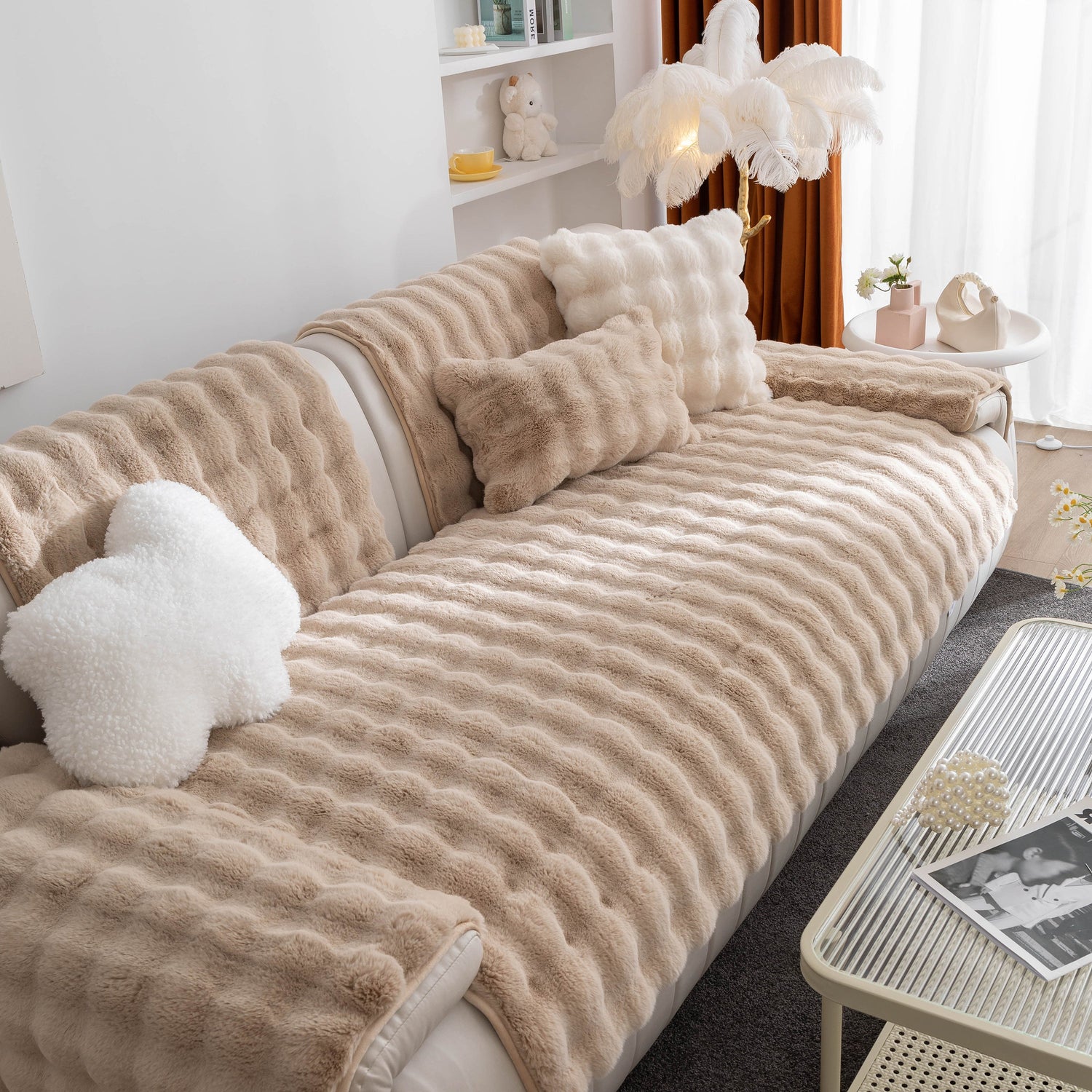 • High-quality materials: This rabbit plush sofa cover Made of high-quality rabbit plush (It's faux rabbit fur, not real rabbit fur), the delicate fluff is firm, not easy to depilate, and anti-static. Soft to the touch, every touch is as comfortable as a cloud.