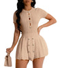 Tinodu 2 Piece Sets for Women Summer Knit Short Sleeve Crop Top Pleated Mini Skirt Sexy 2 Piece Outfit Set XL Apricot