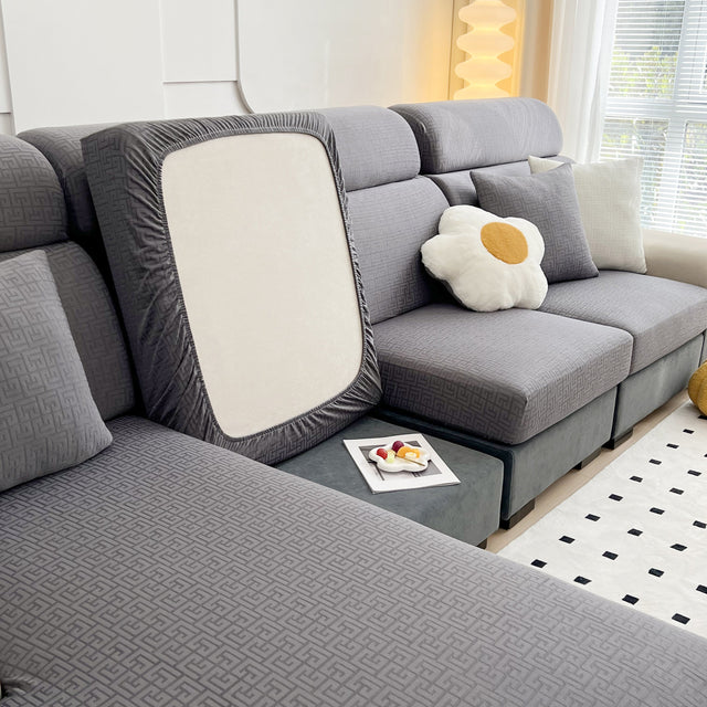 Vedic Chant Jacquard Fleece Fabric Stretch Cushion Cover, Non-Slip Furniture Protector for Kids, Chaise Lounge Cushion Covers