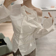 Step into style and elegance with our stunning White Backless Ruffled Lace Shirt. This exquisite piece is designed for the fashion-forward woman who loves to blend chic with a touch of playfulness.