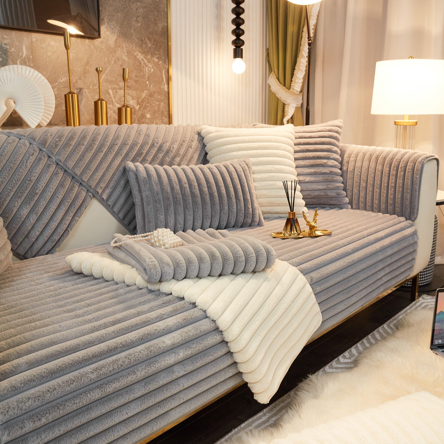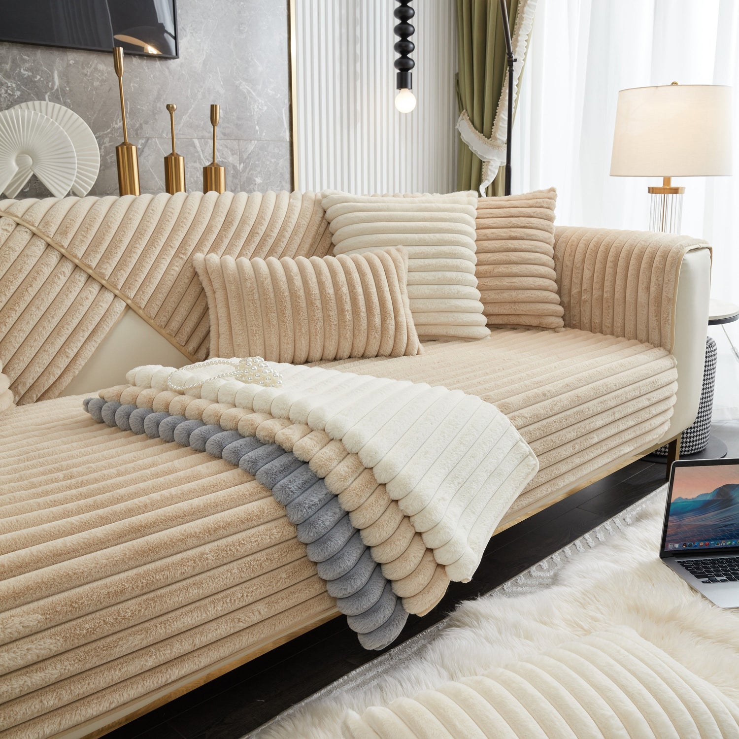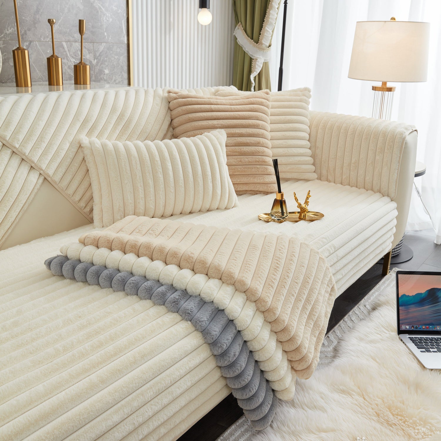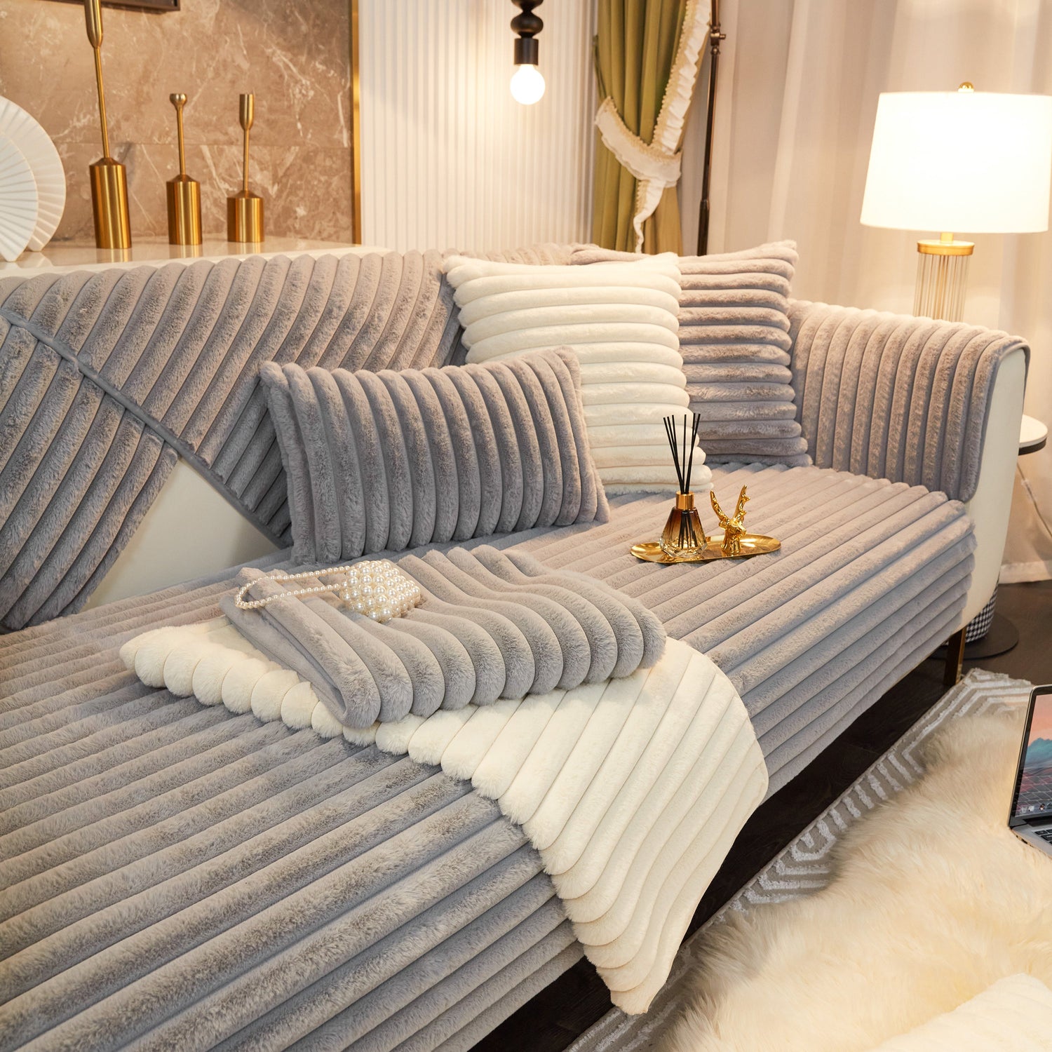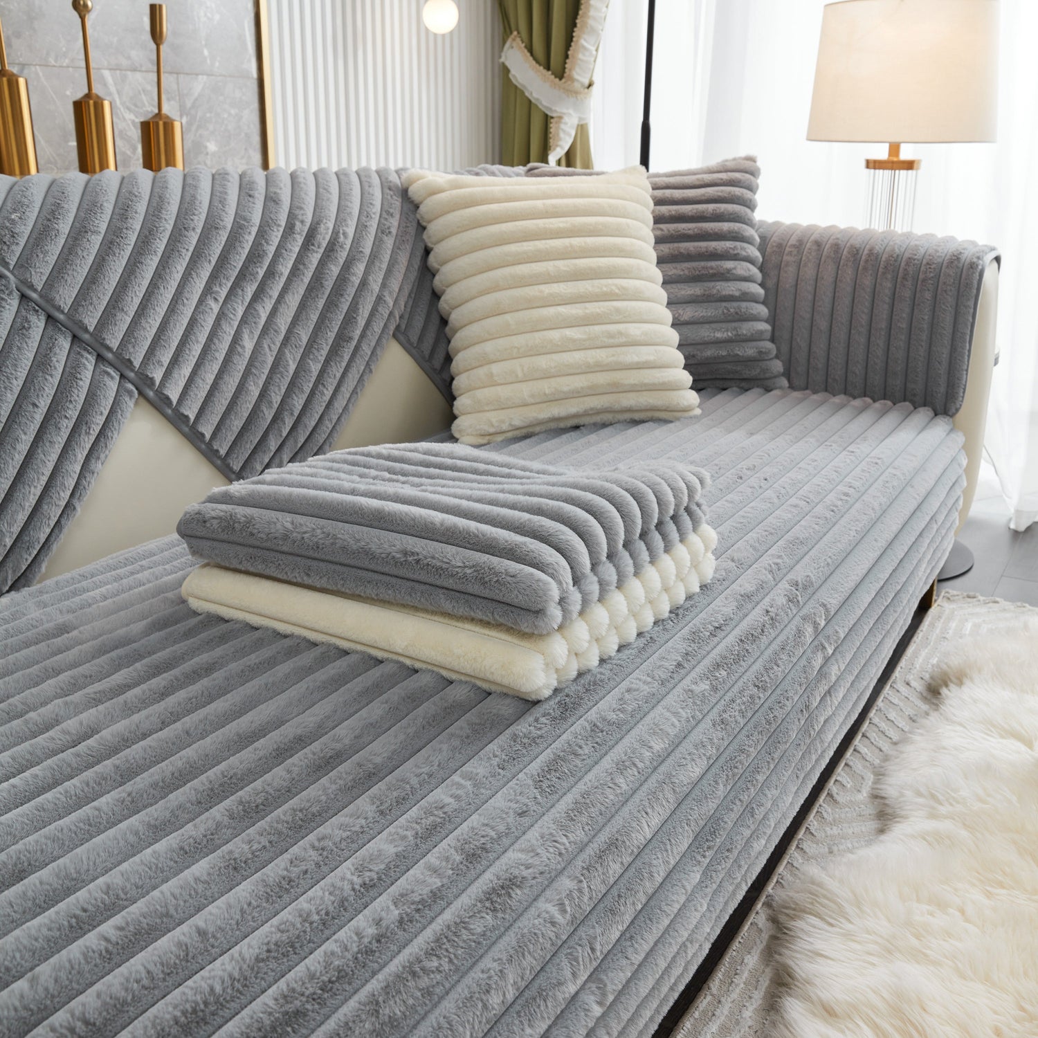 - High-quality materials: This rabbit plush sofa cover Made of high-quality rabbit plush, the delicate fluff is firm, not easy to depilate, and anti-static. Soft to the touch, every touch is as comfortable as a cloud.