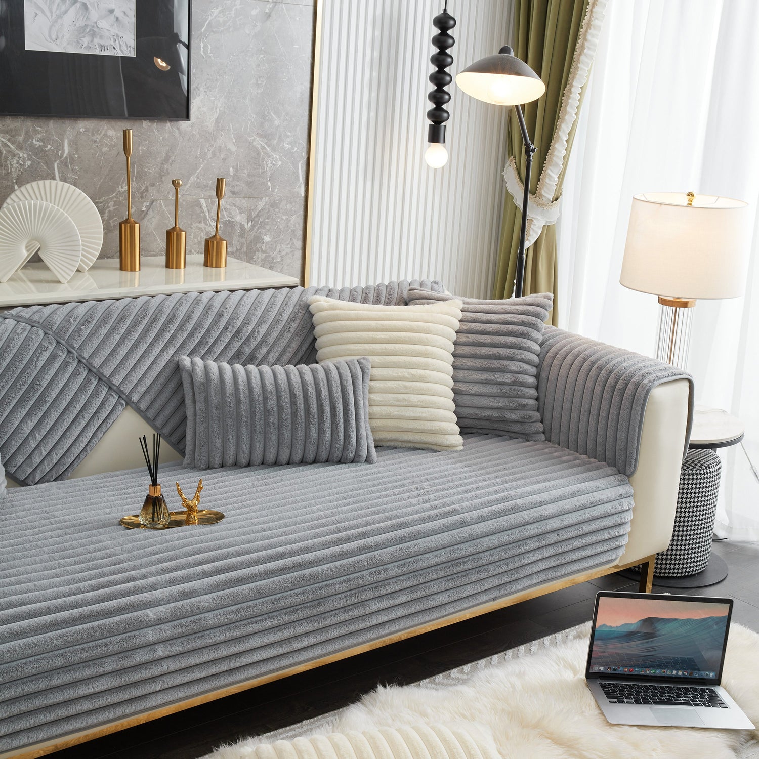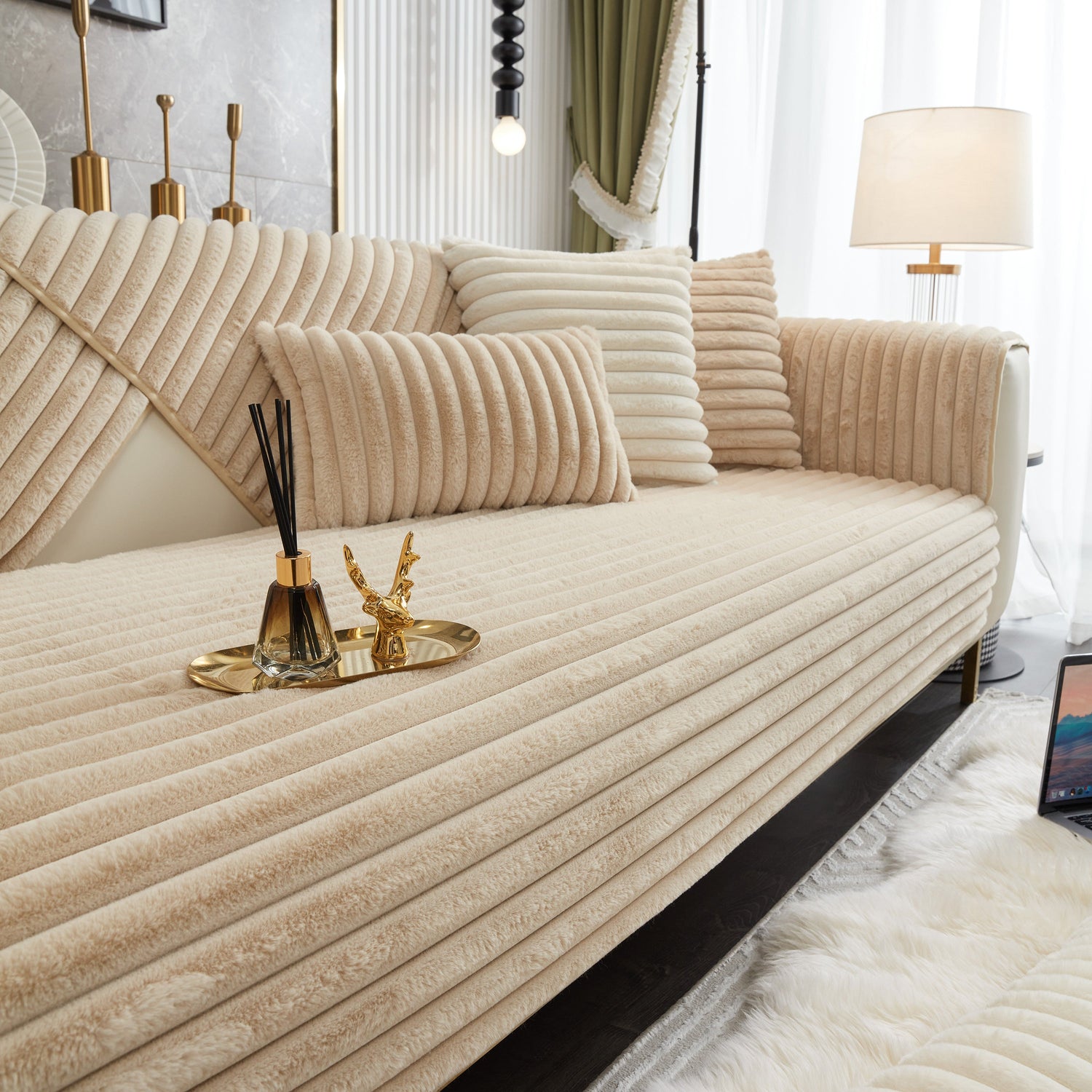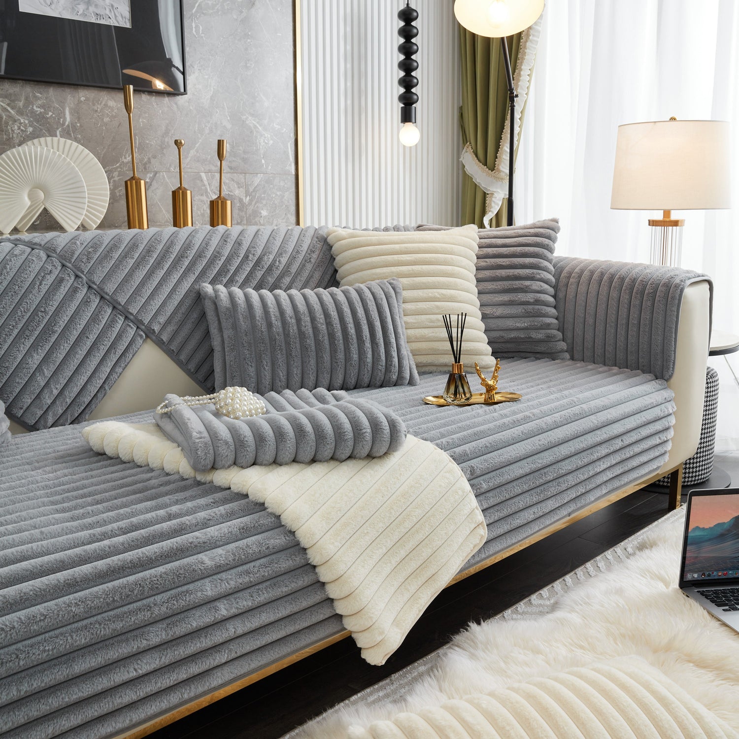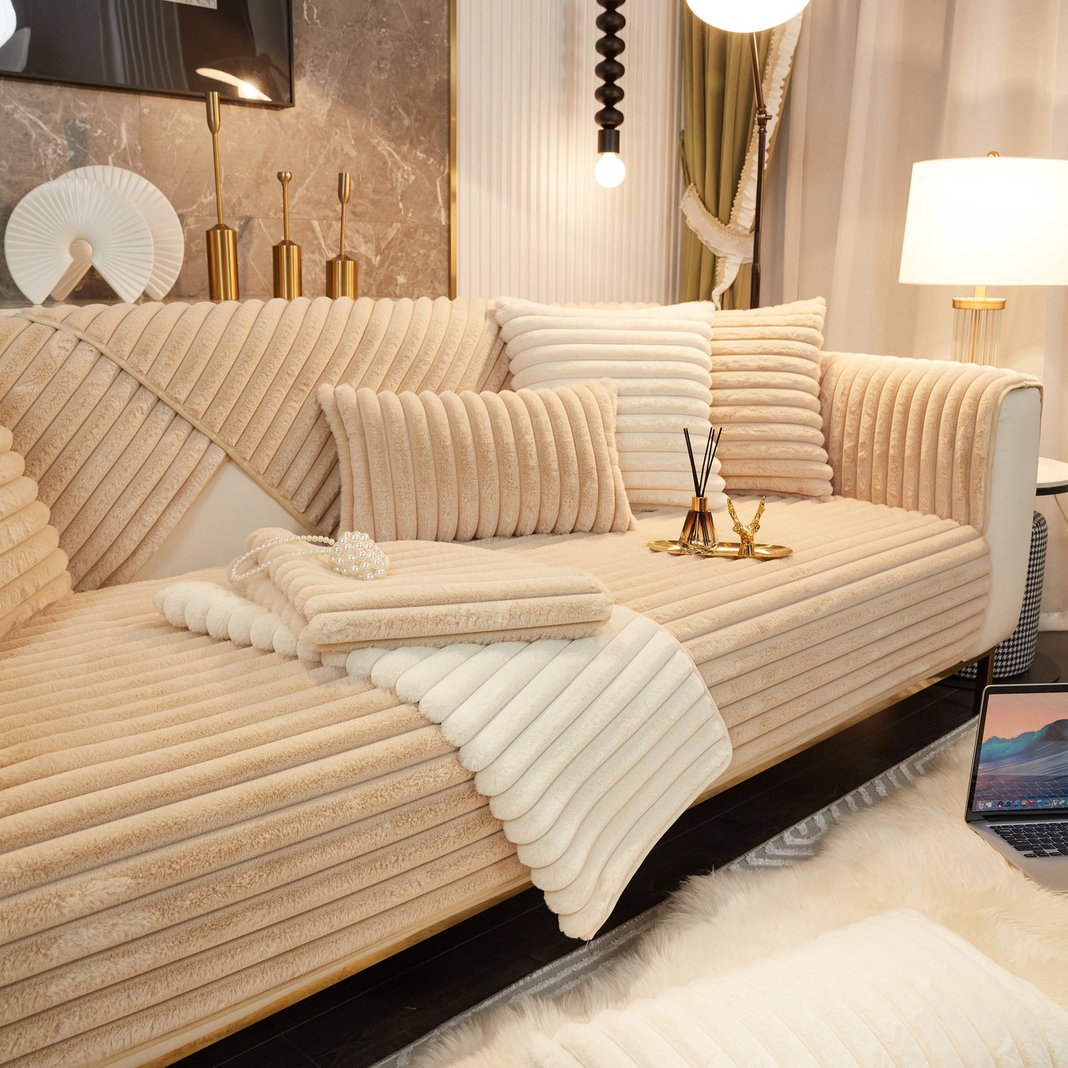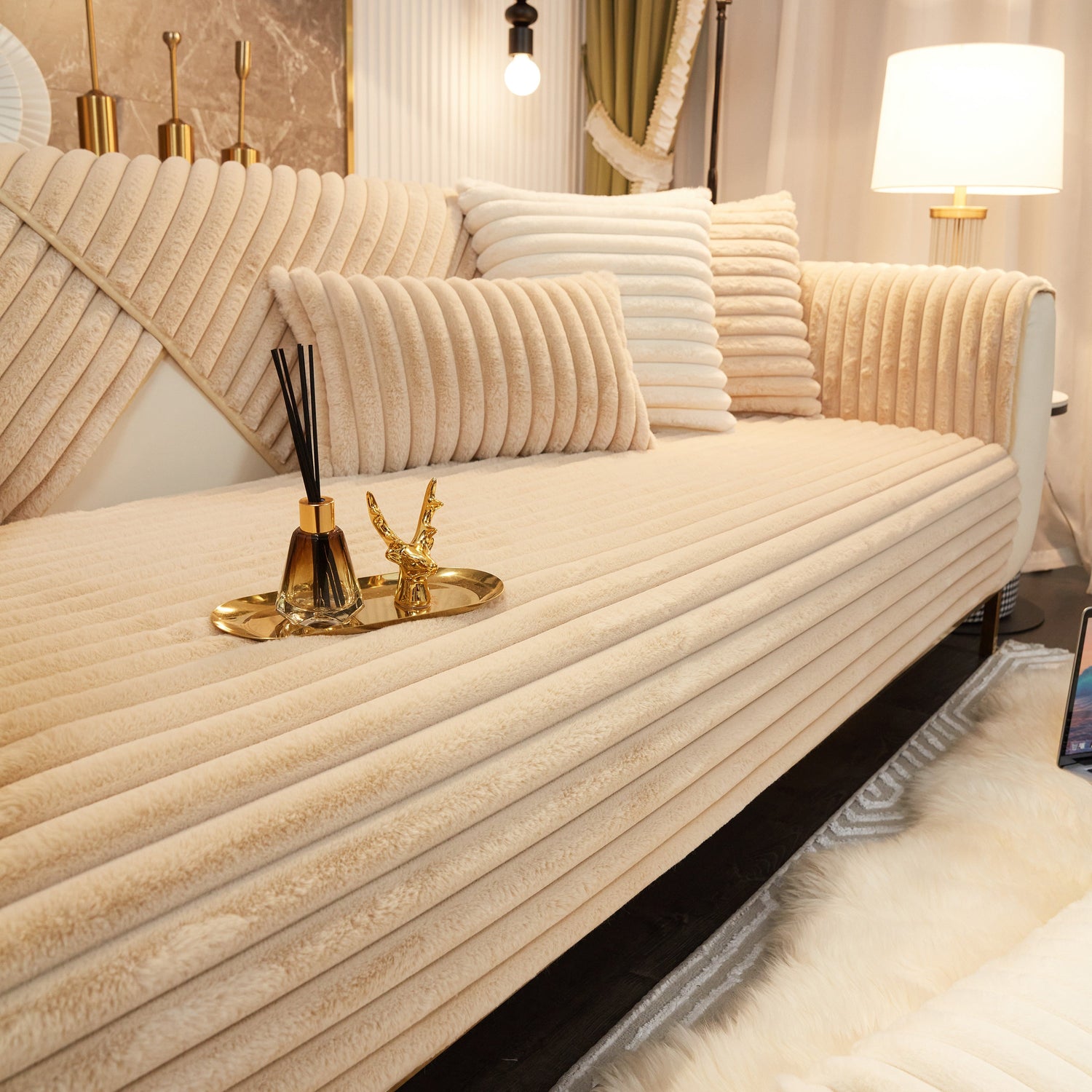 - High-quality materials: This rabbit plush sofa cover Made of high-quality rabbit plush, the delicate fluff is firm, not easy to depilate, and anti-static. Soft to the touch, every touch is as comfortable as a cloud.