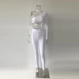Women’s Yoga Set: One-Shoulder Top & Leggings - White / S is backordered and will ship as soon as it is back in stock.