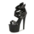 Womens Rivet Platform Chunky High Heel Gothic Sandals Fashion Ankle Strap Buckle Round Open Toe Lug Sole High Block Heel Sexy Punk Y2k Sandals for Party Prom Dress (Black6)