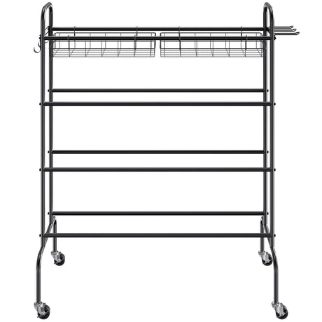 Multi-Purpose 4-Tier Metal Rolling Organizer for Sports Gear with Baskets and Hooks
