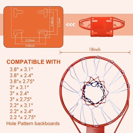 Basketball Rim Replacement 18" Steel Rim with Net, Easy to Install and Reliable Quality
