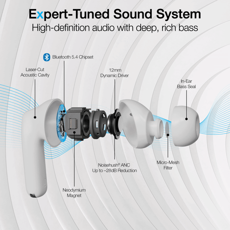Active Noise Cancelling True Wireless Earbuds with Wireless Charging Case