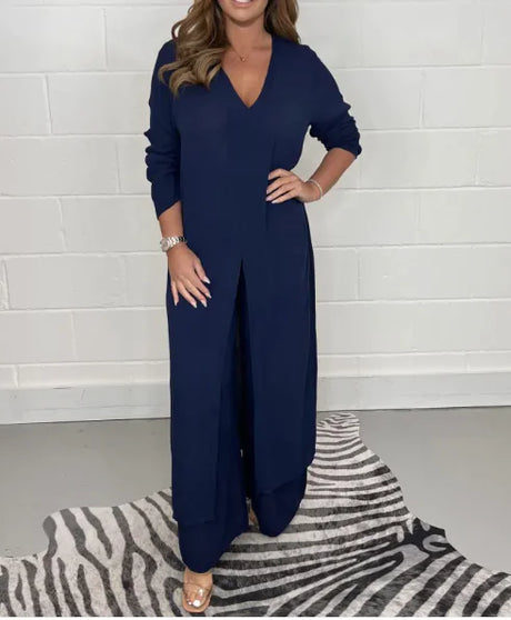 2023 Elegant Casual Loose Shirt and Wide Leg Pants Set
