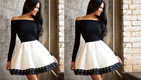 Women's Clothing Set - Black and White Dress