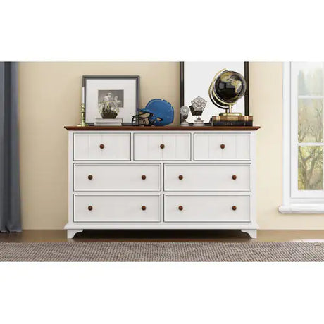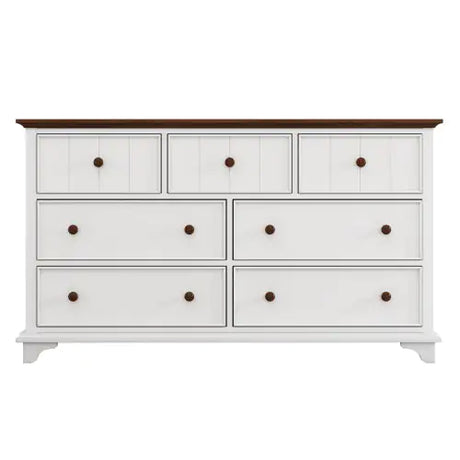 Wooden Captain Seven-Drawer Dresser For Bedroom, Living Room, Kids' Room, White Walnut
