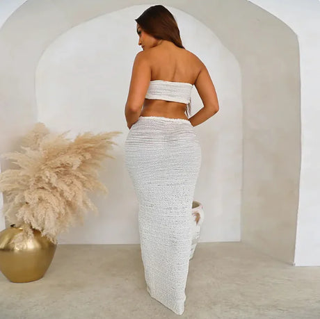 Women's Solid Color Lace Tube Top Vest and Long Skirt Set