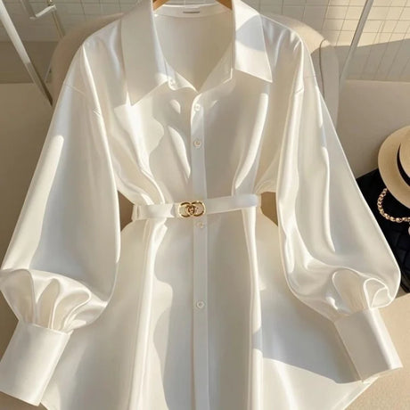 Women's White Loose Fit Irregular Long Sleeve Shirt