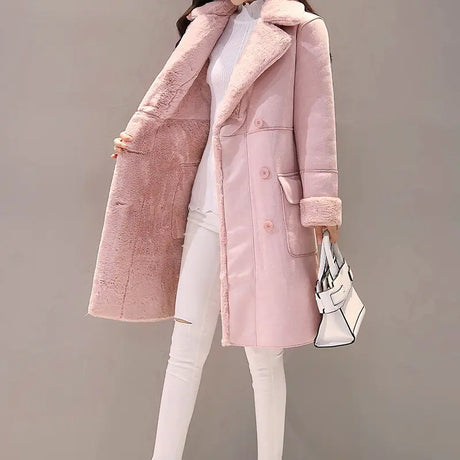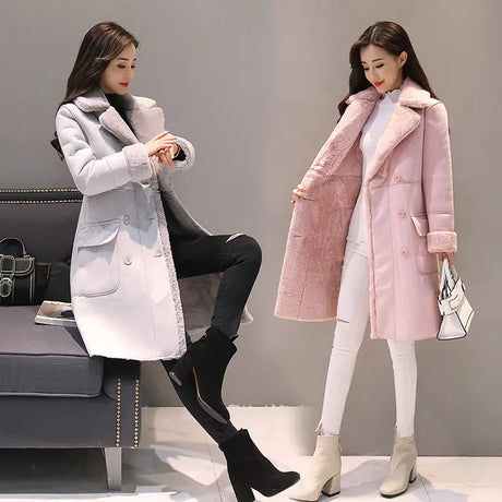 Women's Long Lambswool Coat - Korean Winter Style