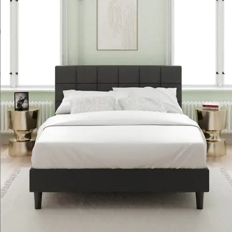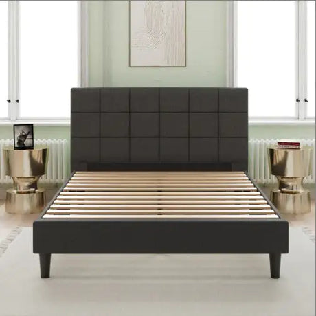 Upholstered Platform Bed Square Stitch - King